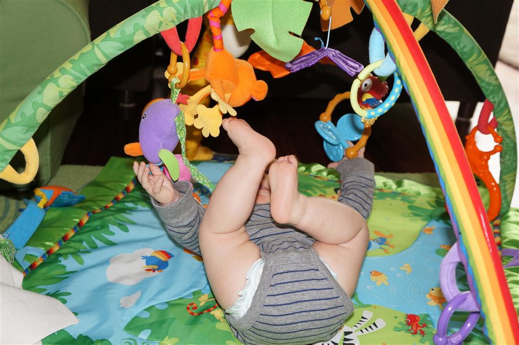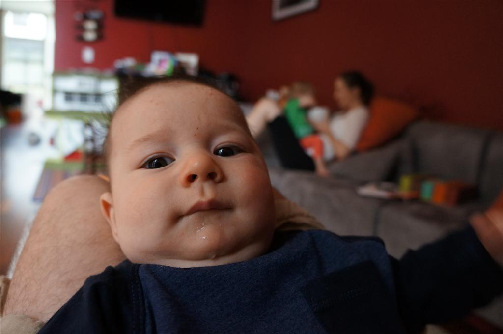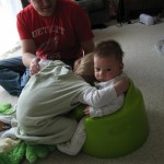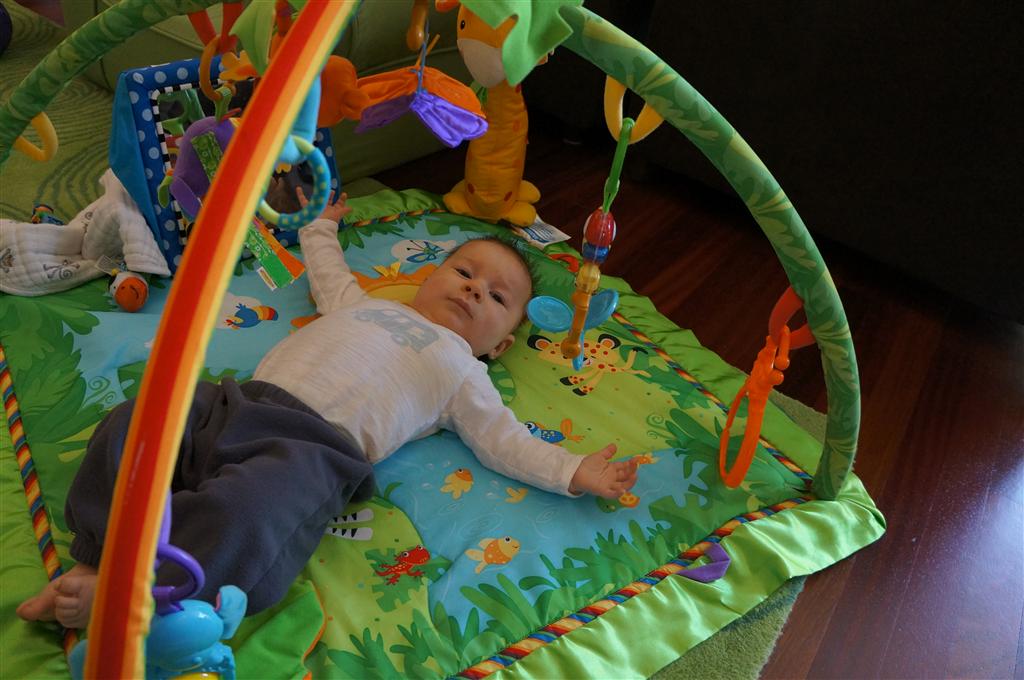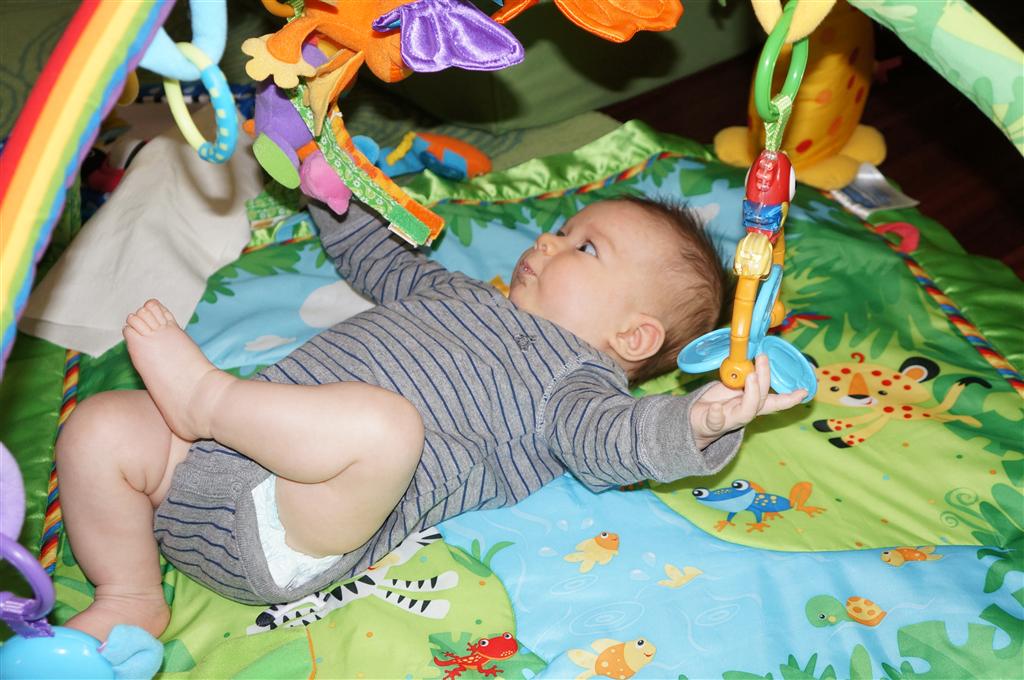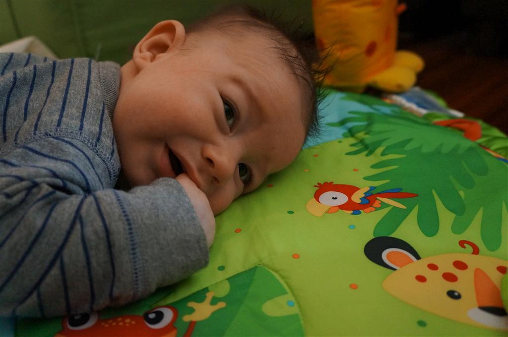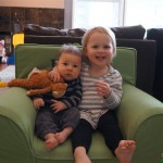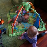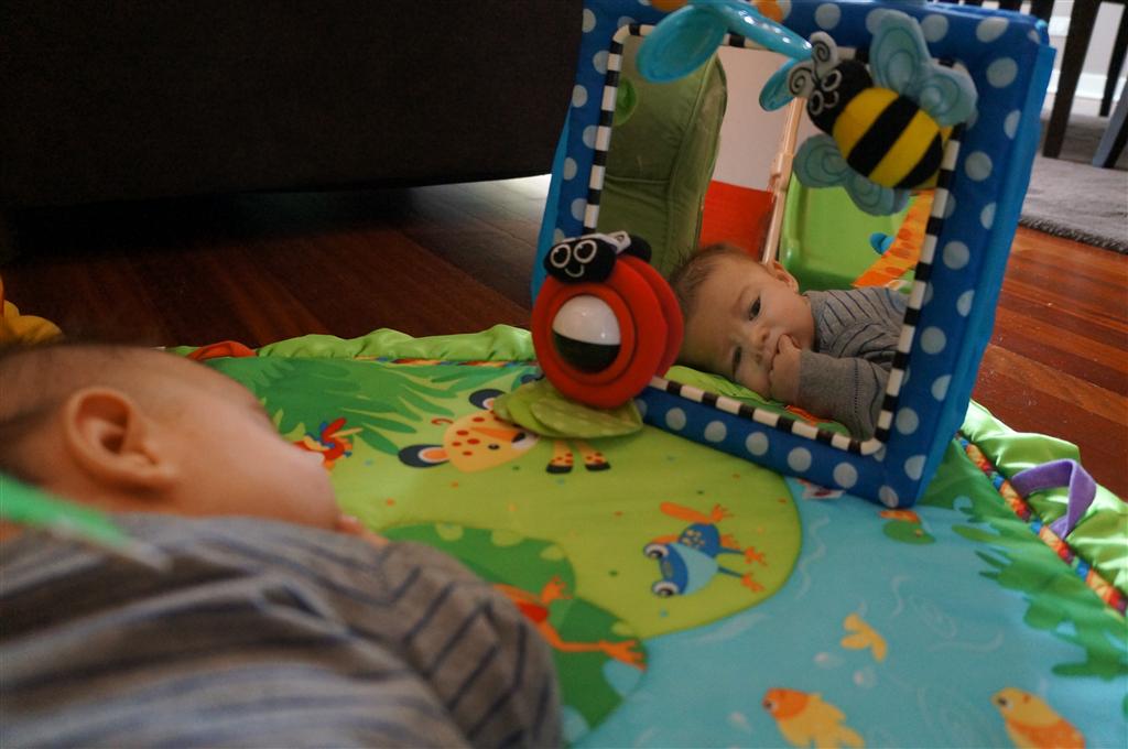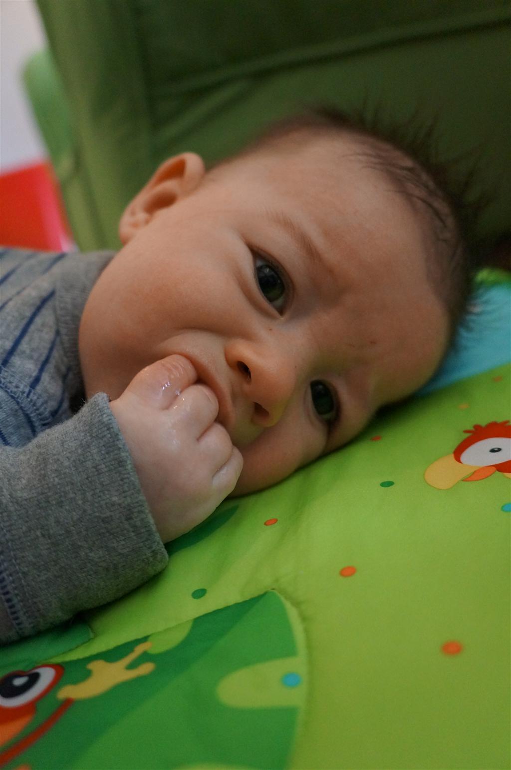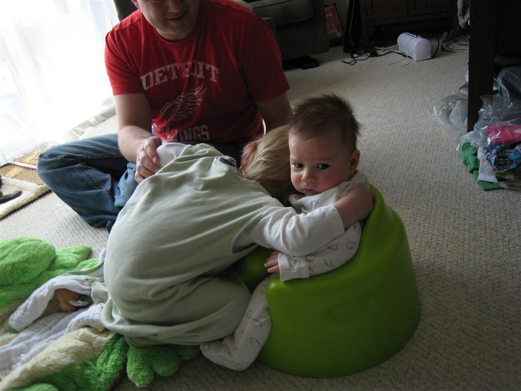 Henry has been getting very active with his hands. He now routinely grabs items both handing above him on the playmat, and also just sitting beside him. He also performed his first hand to hand transfer this week – very impressive. Henry also went to his first music class this week – and Eleanor spent an hour in “sibling care” without anyone that she knew. Mom didn’t hear any screaming and the teacher didn’t report any trouble upon pickup :)