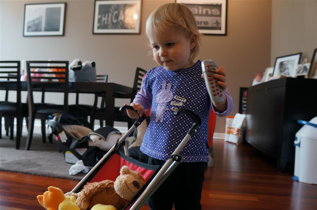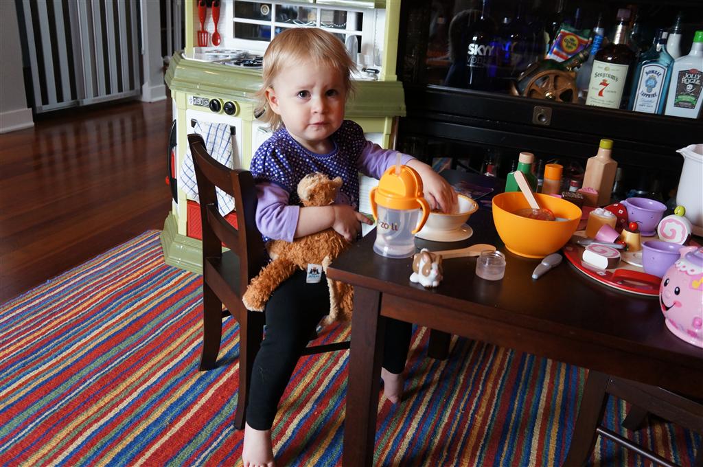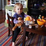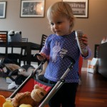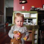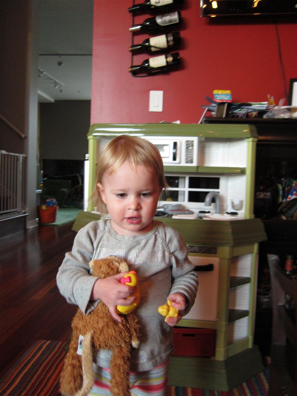 After a few weeks of travel, we took a week off and relaxed at home. Eleanor and Henry got back into their sleep routines (mnostly…). Eleanor has been saying a lot more phrases lately, my favorite new one this week was when she said “Bye Bye Dada” to me – very sweet. She has also been doing some singing – she sang along to an entire rendition of “Old MacDonald” on YouTube – we will have to catch her on video doing it. She knows almost all the words. Speaking of singing, Eleanor recreated her entire bedtime routing this week while putting Monkey down for a nap. She changed the diaper, turned on the white noise, turned on the heater, said goodnight to all the animal stickers on the wall, rocked Monkey in her arms while singing our bedtime song, and then put Monkey down in Henry’s crip with Henry’s sleepsack on. She just loves to do everything that Mom and Dad do!