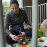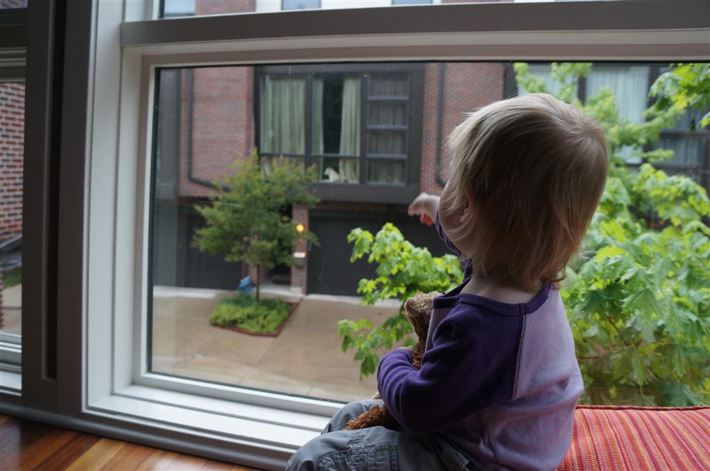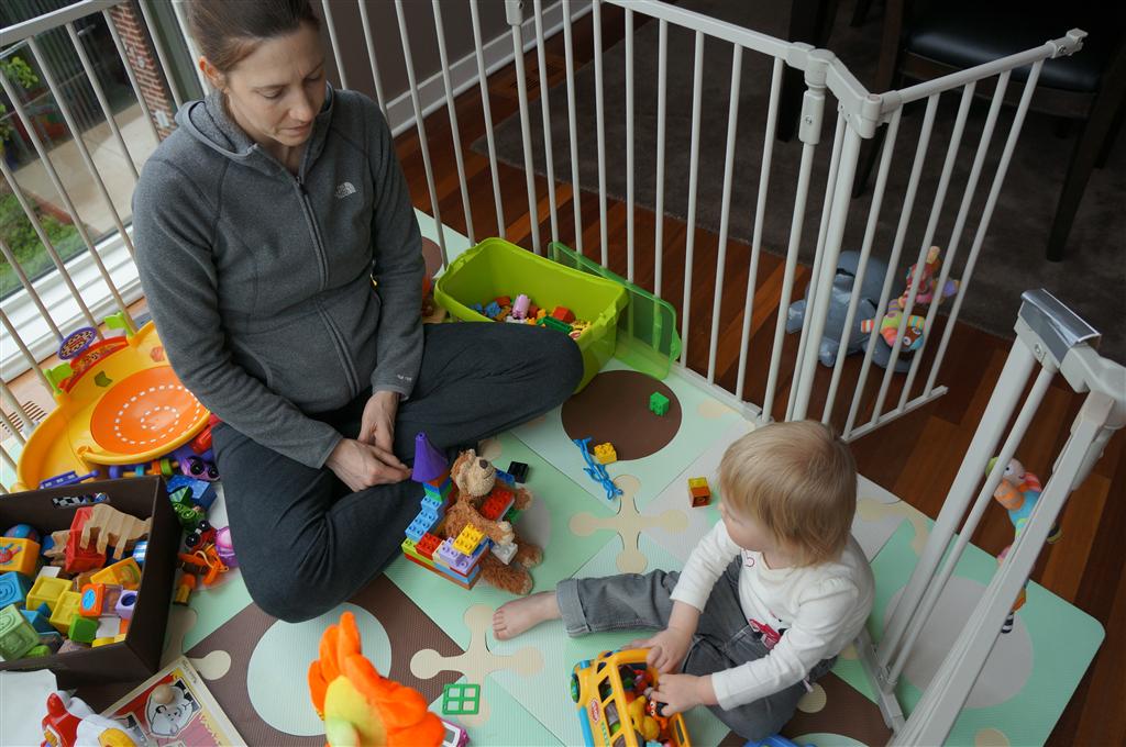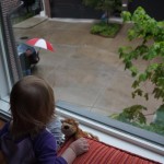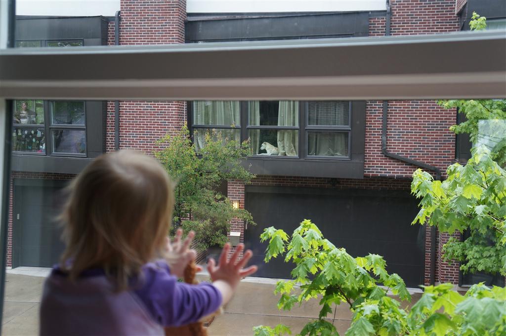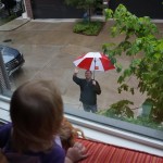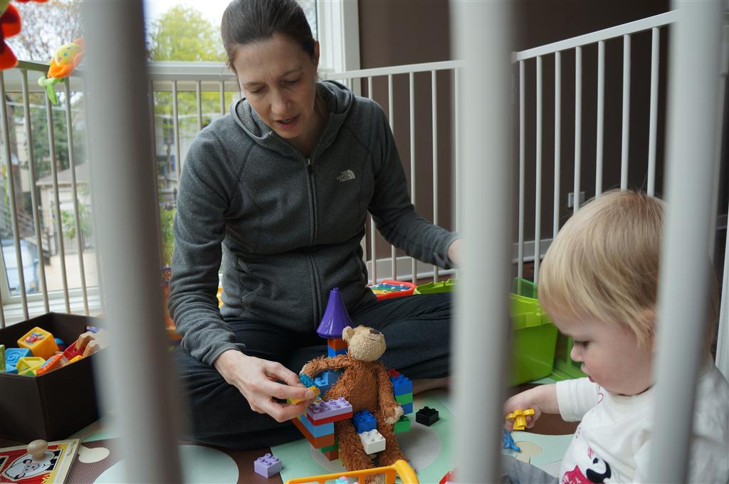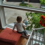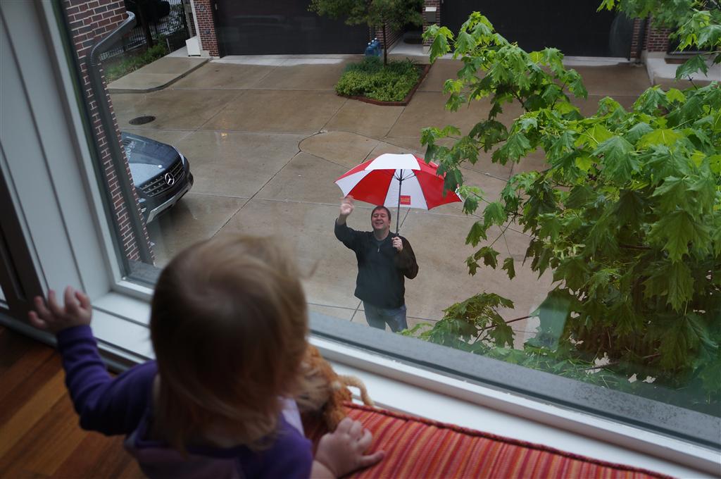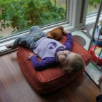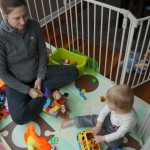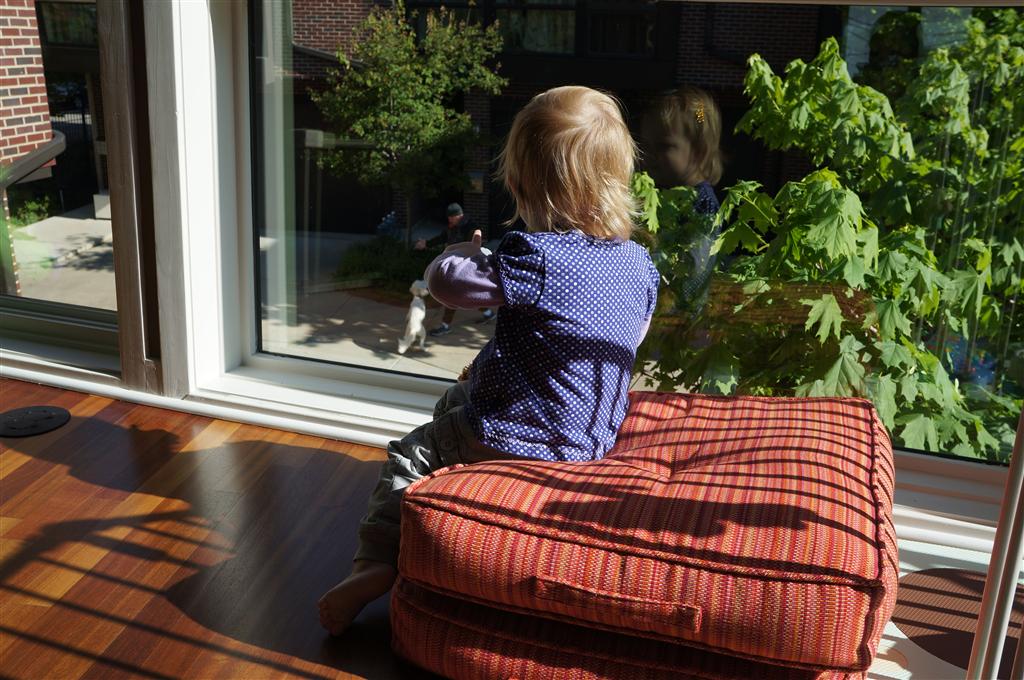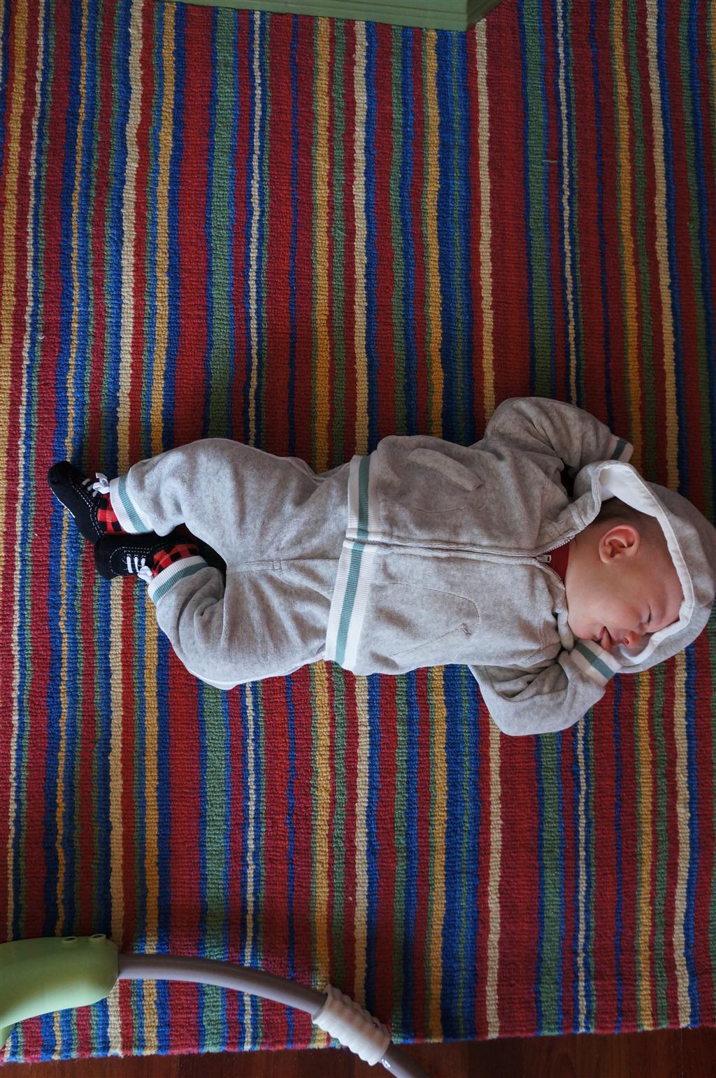 Eleanor has been very excited about wearing barrettes in her hair this week – she usually request a two, one blue and one orange. We actually don’t have an orange one, so we use a gold one and she doesn’t seem to mind. I think colors have a bit of a floating definition for her still. She also had her first pony tail this week! It’s been a long time coming, but her hair is finally long enough for a little tail. On Saturday, both of the kids and Mom happened to be wearing shirts with hoodies on them – so I donned a hoodie of my own and we took a silly little family hoodie picture. Later that day, I caught Eleanor carrying the tripod over to the play rug. She had set Monkey up in the Eleanor chair and was getting ready to take his picture :) She is quite the observer – anything that Mom or Dad do with either her or Henry she ends up recreating with Monkey. She is also a riot to listen to babble – at first it sounds like gibberish, but if you really focus, you realize that she is actually using real words. I’ve caught her singing songs as well as narrating the current situation. She also knows a number of her books – I test her by stopping mid page and more often than not (especially with Cat in the Hat) she fills in the correct word.
