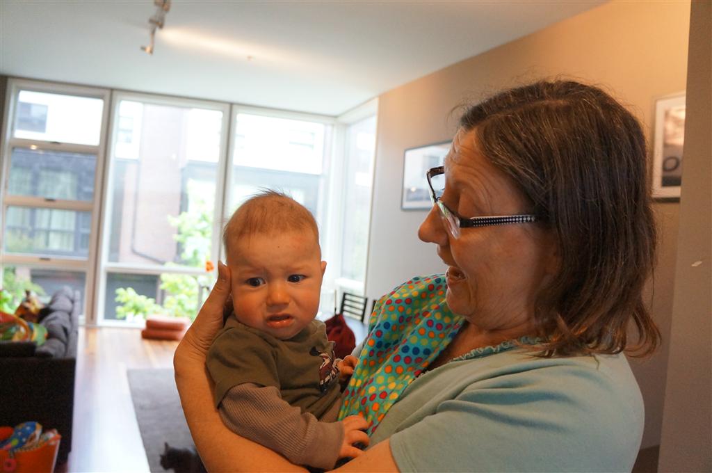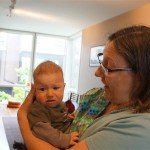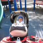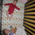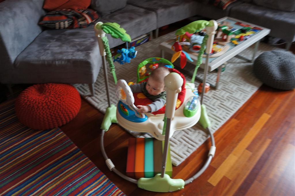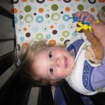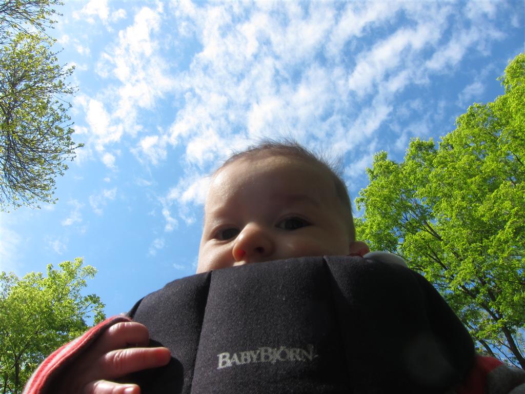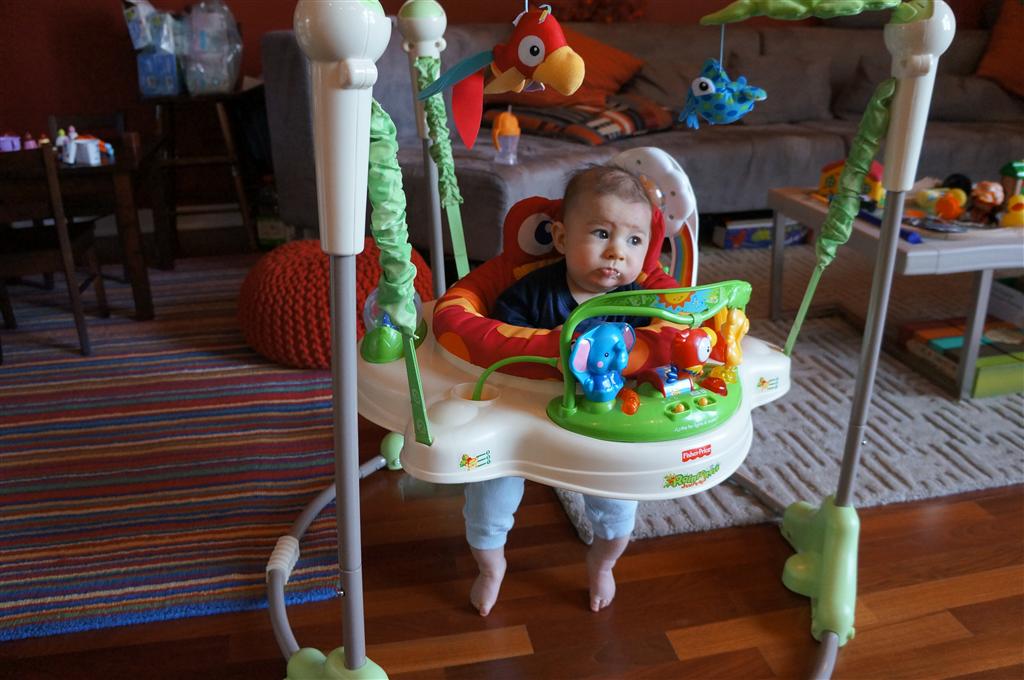 This week Henry gained his first tooth! It is just barely popping through on the backside of his gums, so we don’t have a photo yet, but hopefully next week! Unfortunately, I think the tooth has put him in a bad mood – he was a bit fussy all week. He has also been working on his rolling over – he still can’t quite do it without being propped up, but he is getting closer.