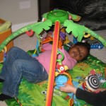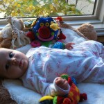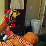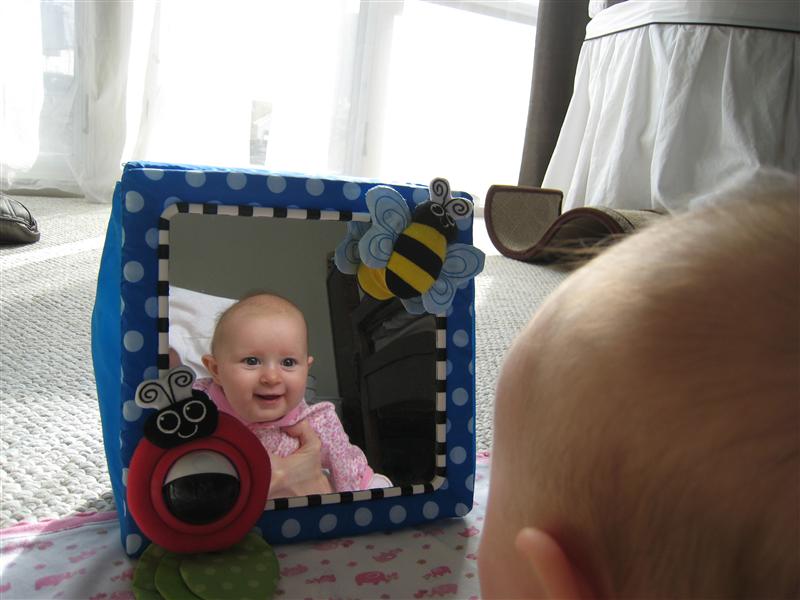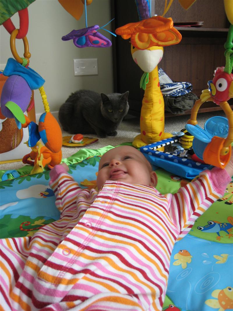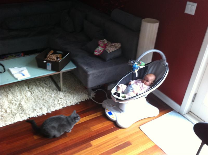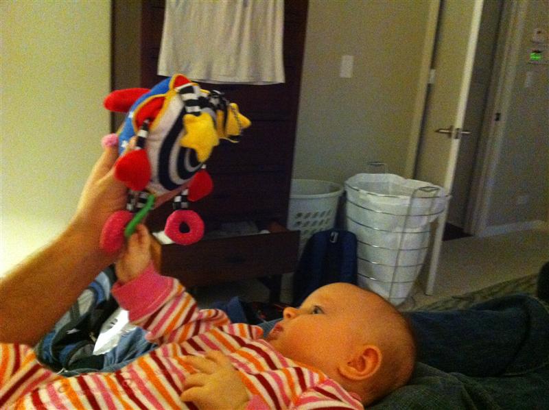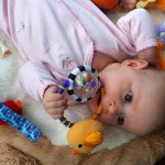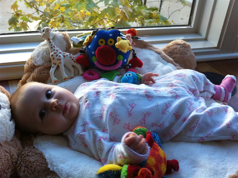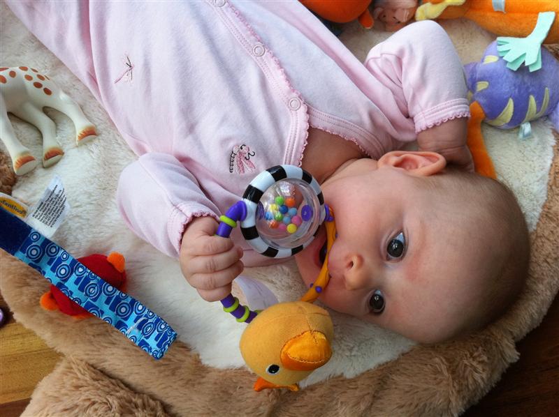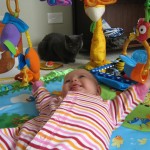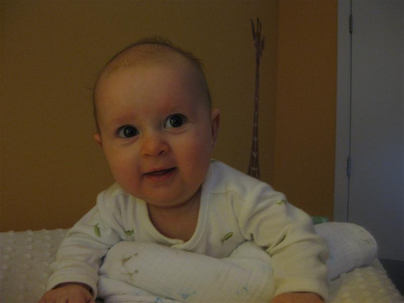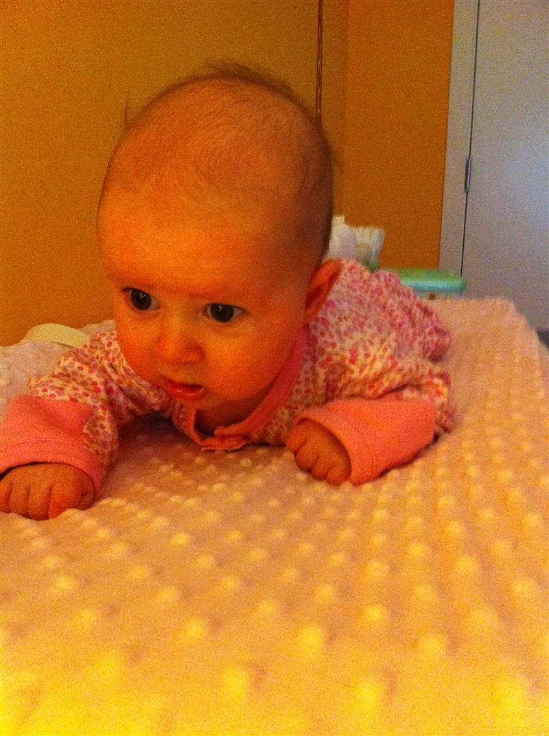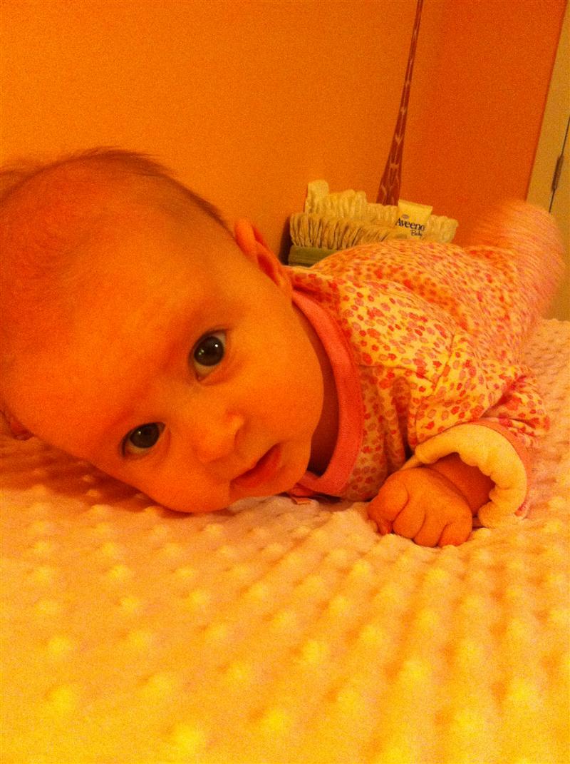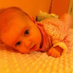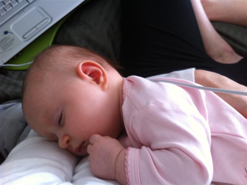 We’ve also been working on our “Tummy Time”, after our nurse suggested that we get in one hour every day. Its amazing how hard it is to find an extra hour in every day! However, Eleanor has really been getting the hang of it, pushing up with her hands and taking in the world. It makes for some great pictures for the first minute – followed by lots of fussing and a few tears. Its a lot of work lifting your head off the ground!