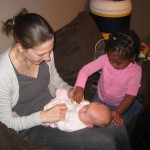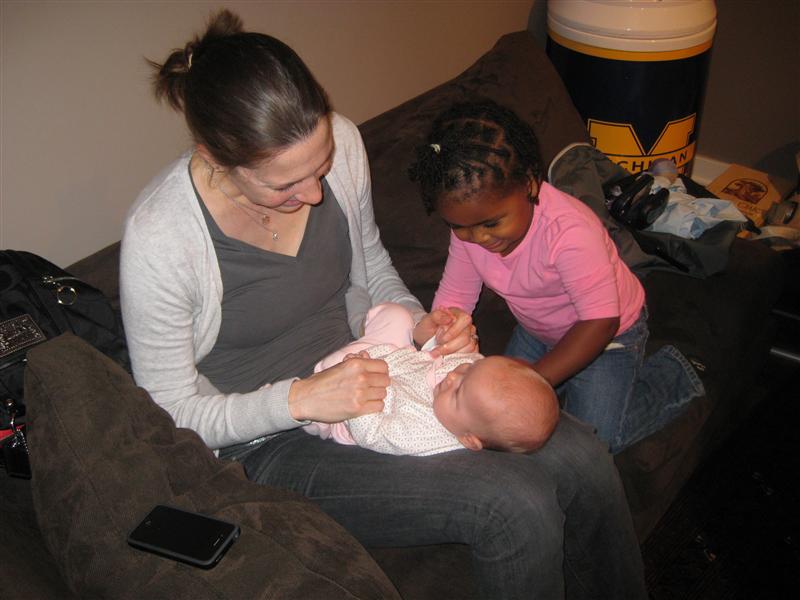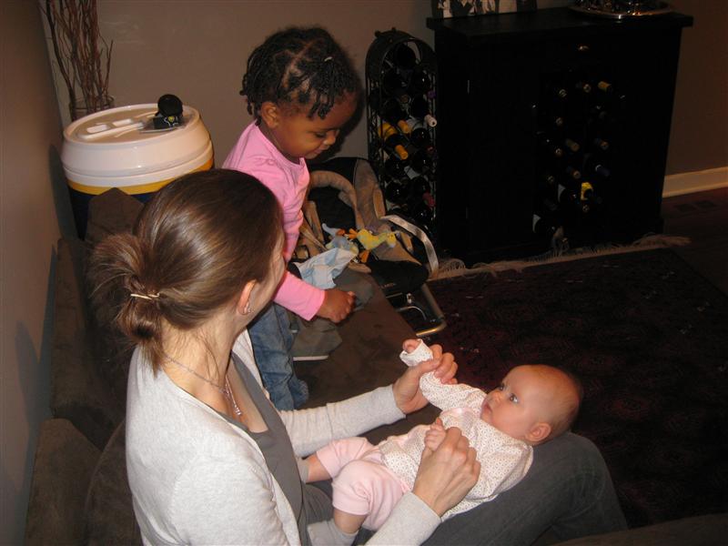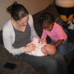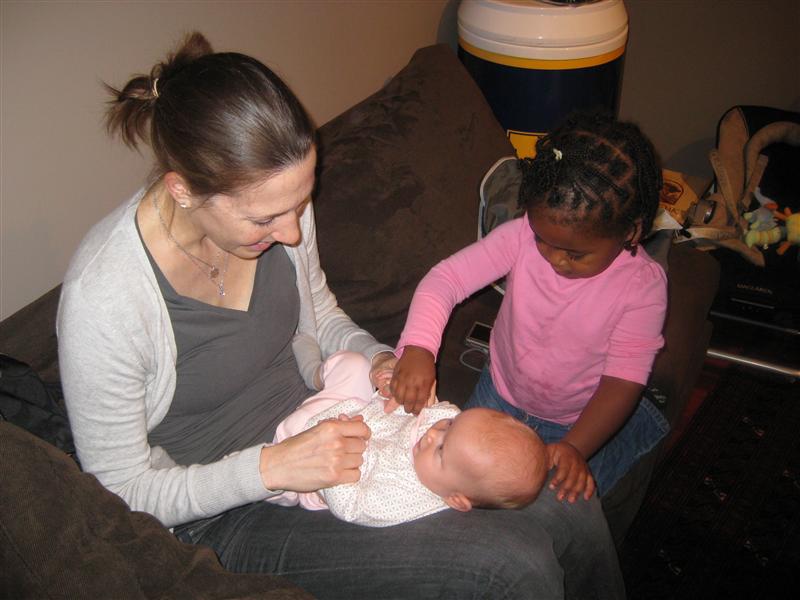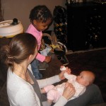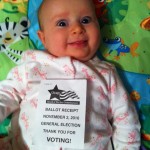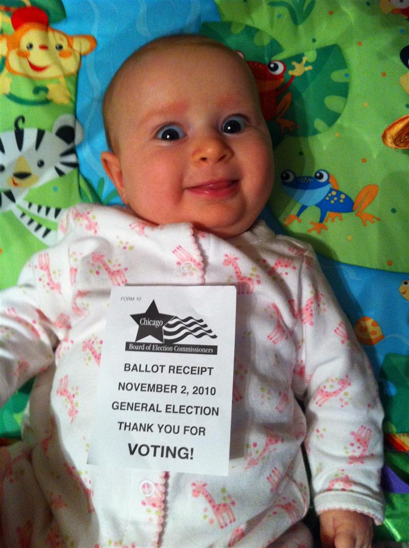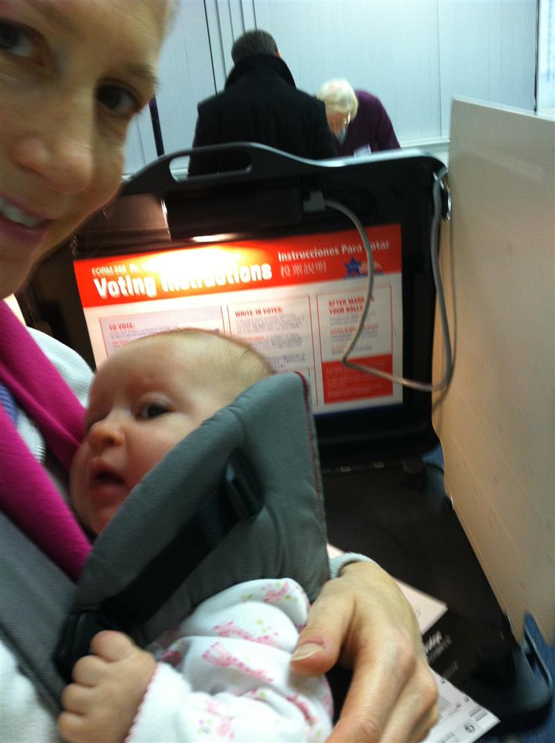 Eleanor had her first voting experience this week – when she joined Amy to the polls. (Amy voted Republican, and Ellie voted Democrat, so they cancelled each other out :) ). We also had a fun visit from cousin Kim and Genet, along with friends from Minneapolis Amy and Katrina. Everyone had a blast during the visit except Zapa, who hid under Ellie’s crib.