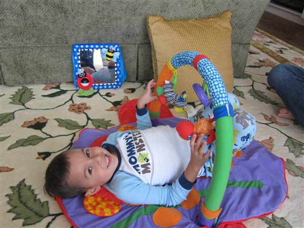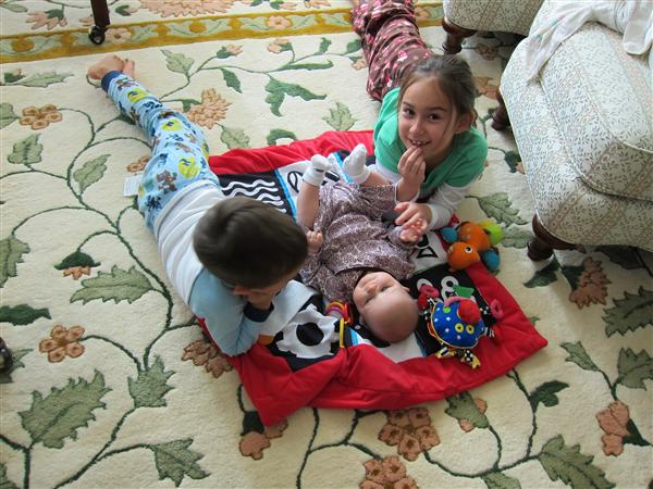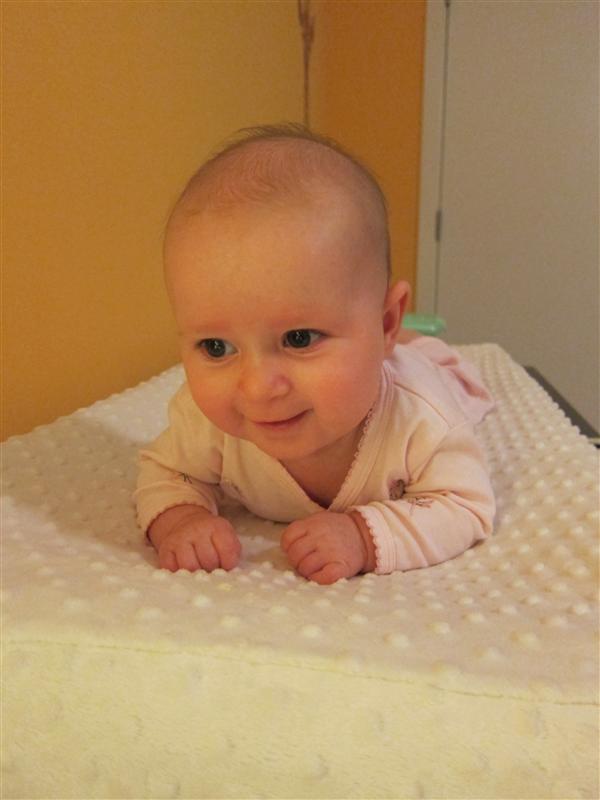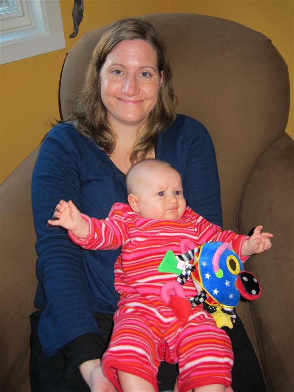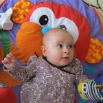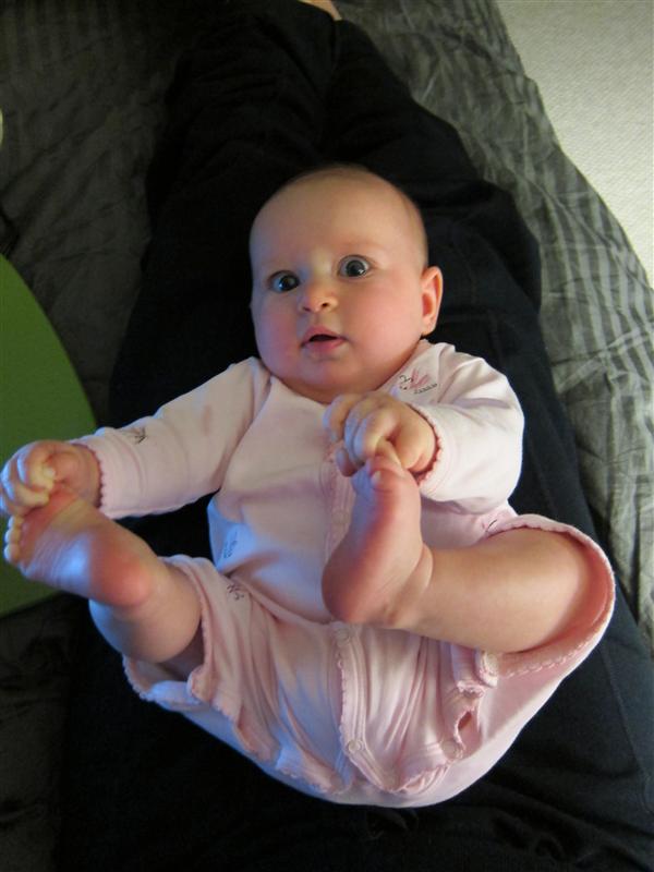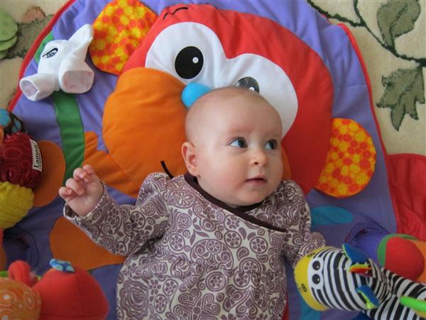 Besides all of the special events, Ellie is having fun discovering her toes and tongue. She is also practicing making a new squawking sound that Amy has declared her pterodactyl impression.