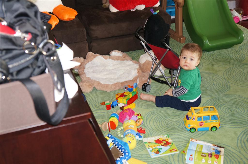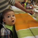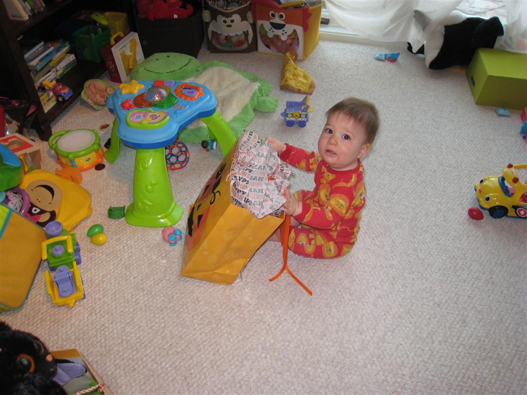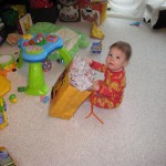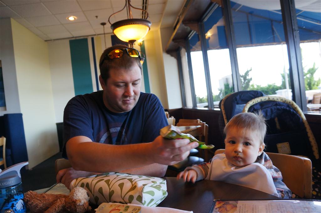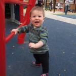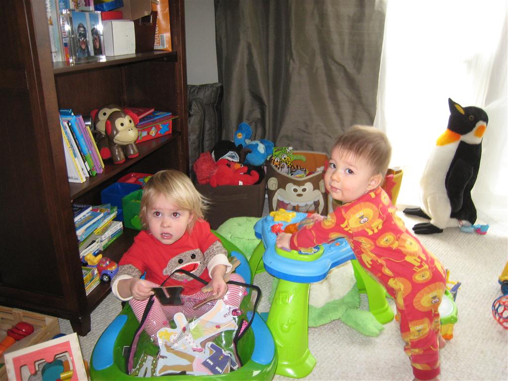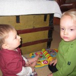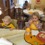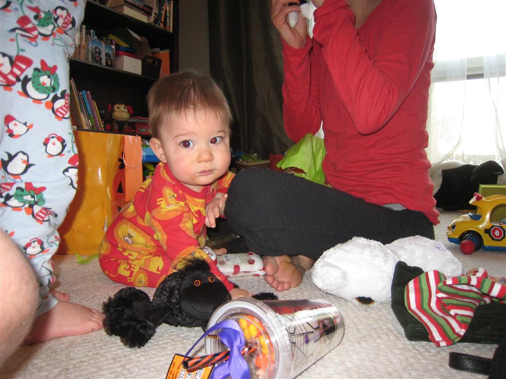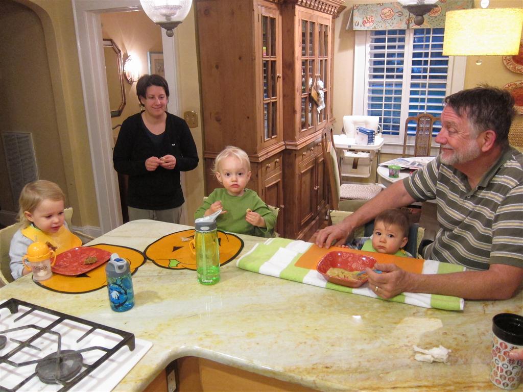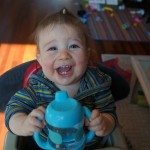 This week, Henry decided it was time to get up and go. On Monday he was scooting just a little bit, and experimenting with the idea, and by Tuesday he was up to full speed. Mom and Dad were thrilled with his new trick – although we did find it a bit ironic that he started moving along just days before we head out for a vacation in a non baby-proofed house. It also perfectly coincided with his 10 month birthday. He has also been working on eating table foods, and is making lots of progress. He now eats waffles, strawberries and oatmeal with Eleanor at breakfast, and mac and cheese with her at lunch.