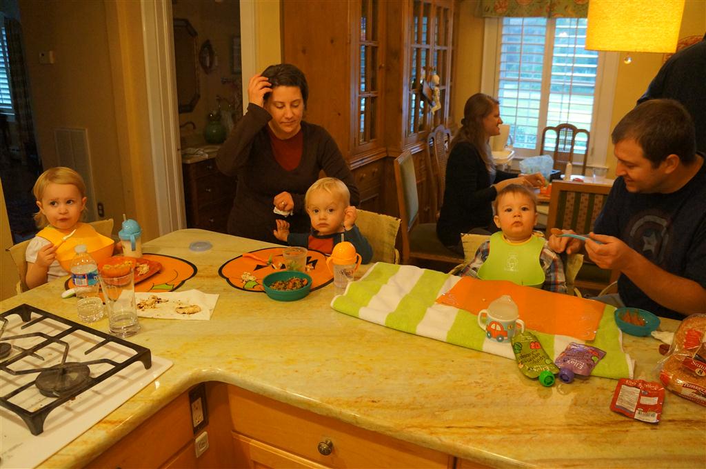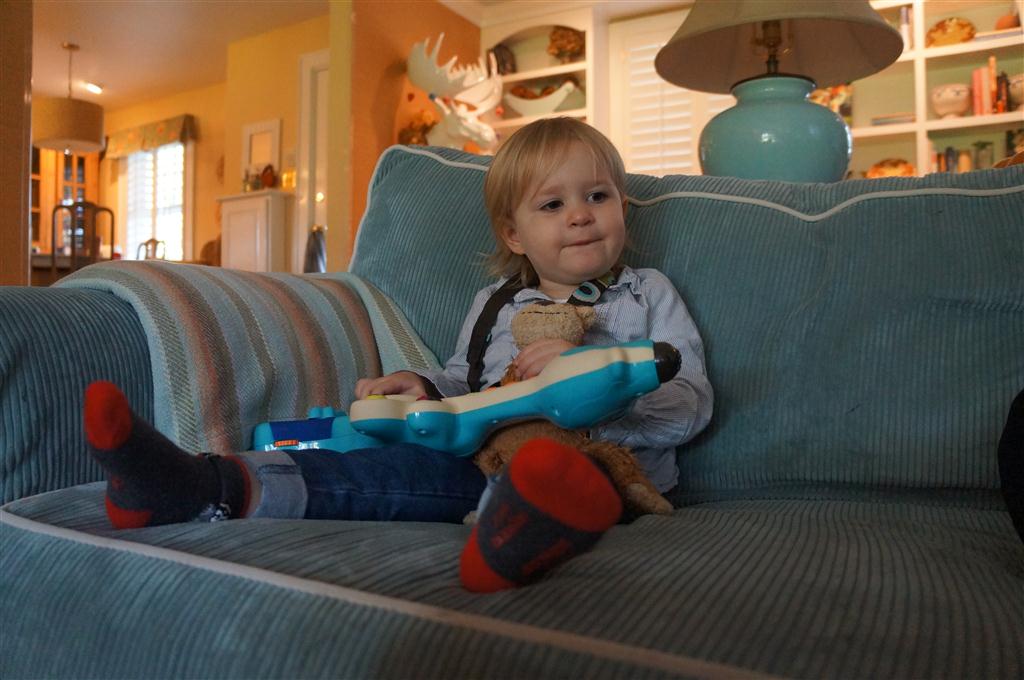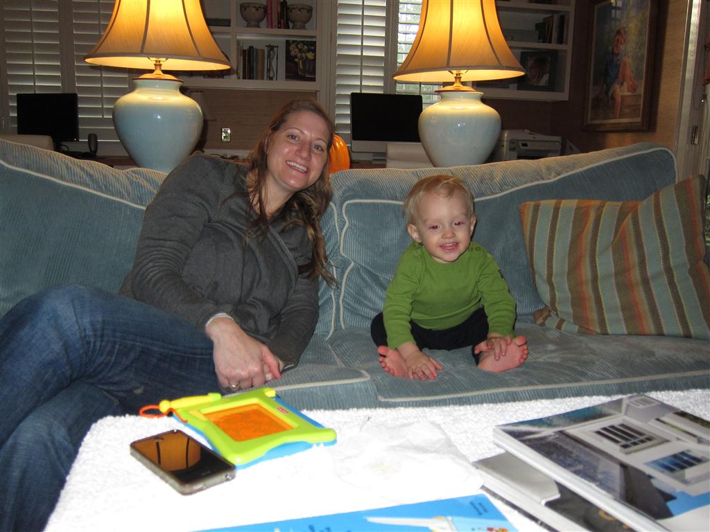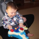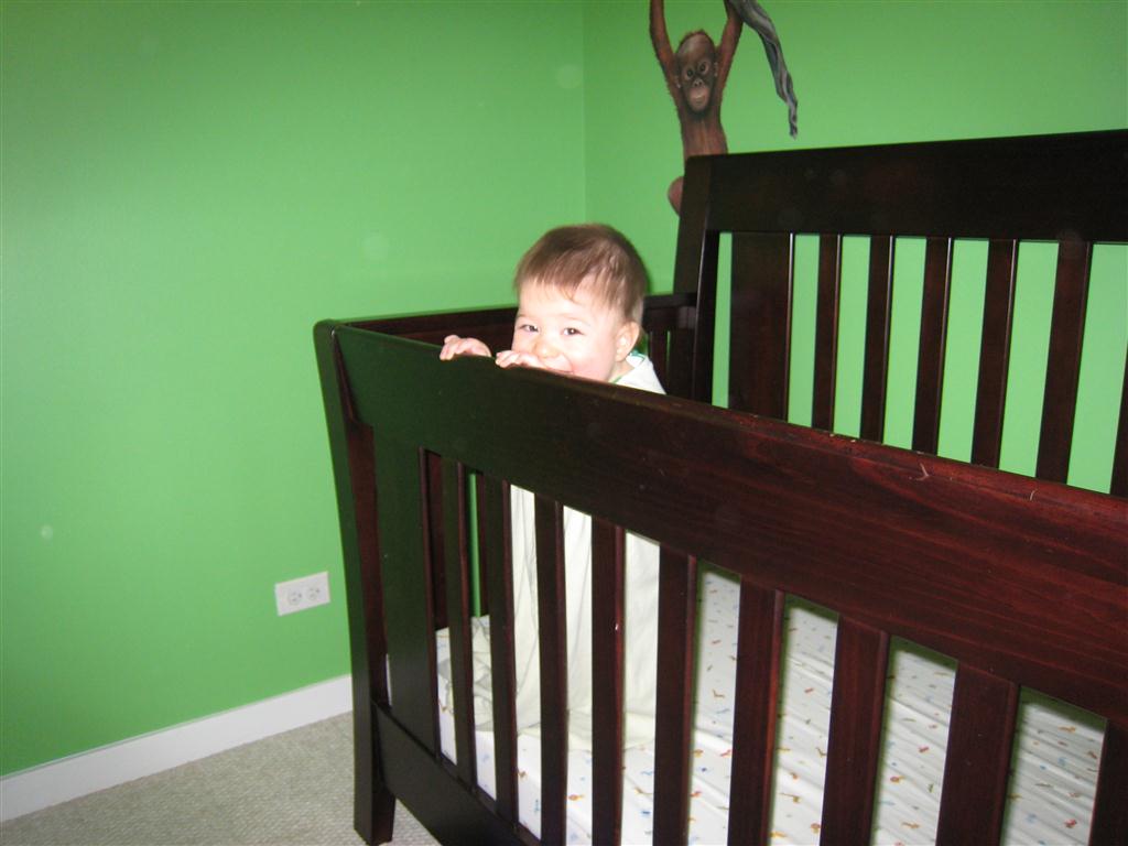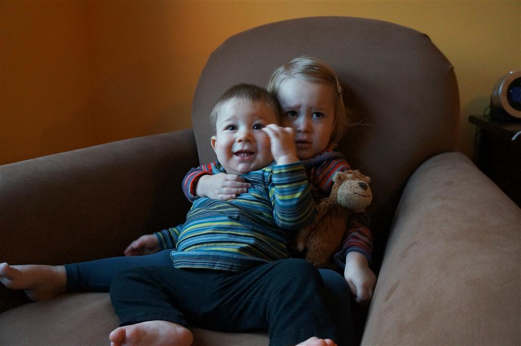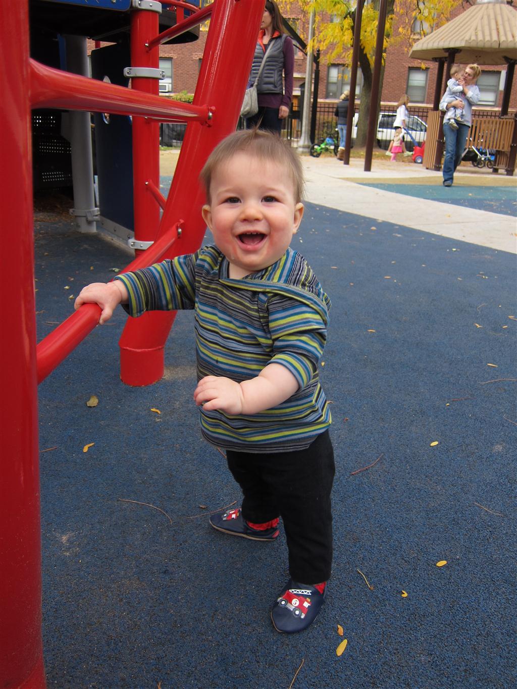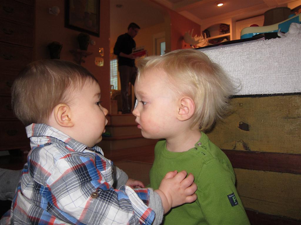 This week, Henry decided it was time to get up and go. On Monday he was scooting just a little bit, and experimenting with the idea, and by Tuesday he was up to full speed. Mom and Dad were thrilled with his new trick – although we did find it a bit ironic that he started moving along just days before we head out for a vacation in a non baby-proofed house. It also perfectly coincided with his 10 month birthday. He has also been working on eating table foods, and is making lots of progress. He now eats waffles, strawberries and oatmeal with Eleanor at breakfast, and mac and cheese with her at lunch.