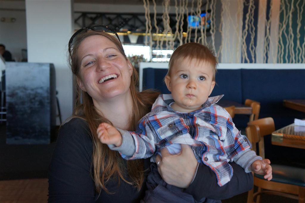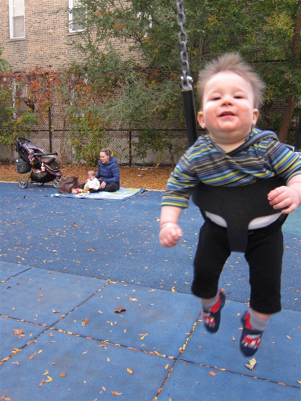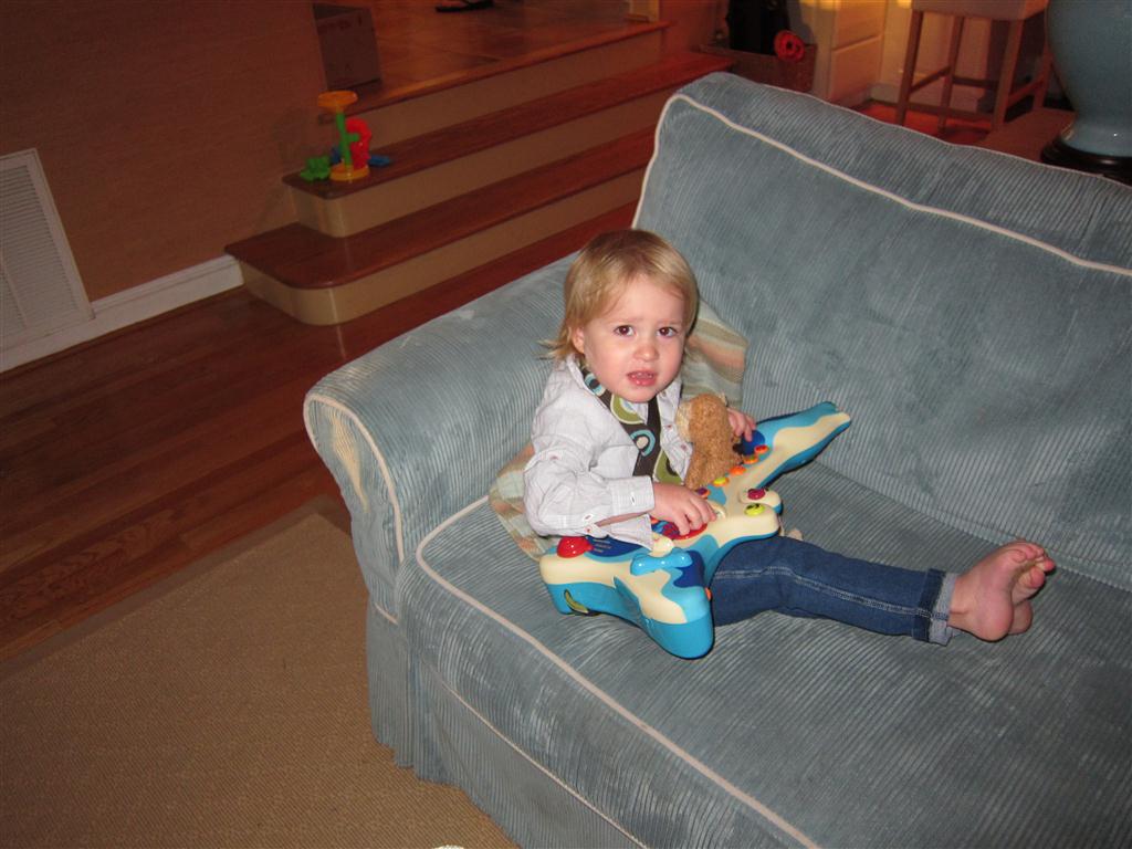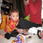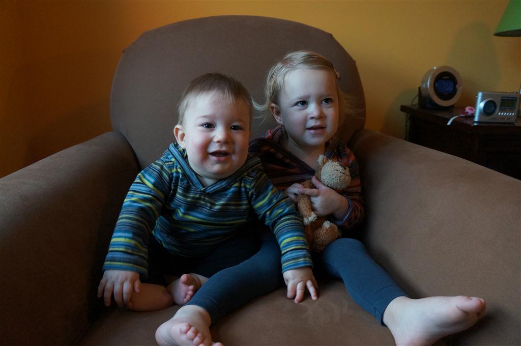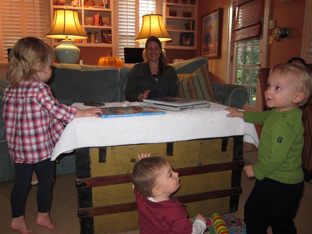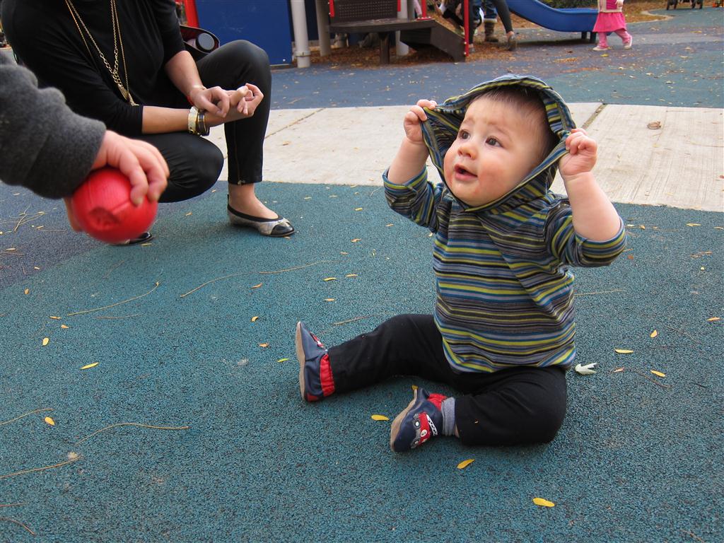 This week, Henry decided it was time to get up and go. On Monday he was scooting just a little bit, and experimenting with the idea, and by Tuesday he was up to full speed. Mom and Dad were thrilled with his new trick – although we did find it a bit ironic that he started moving along just days before we head out for a vacation in a non baby-proofed house. It also perfectly coincided with his 10 month birthday. He has also been working on eating table foods, and is making lots of progress. He now eats waffles, strawberries and oatmeal with Eleanor at breakfast, and mac and cheese with her at lunch.