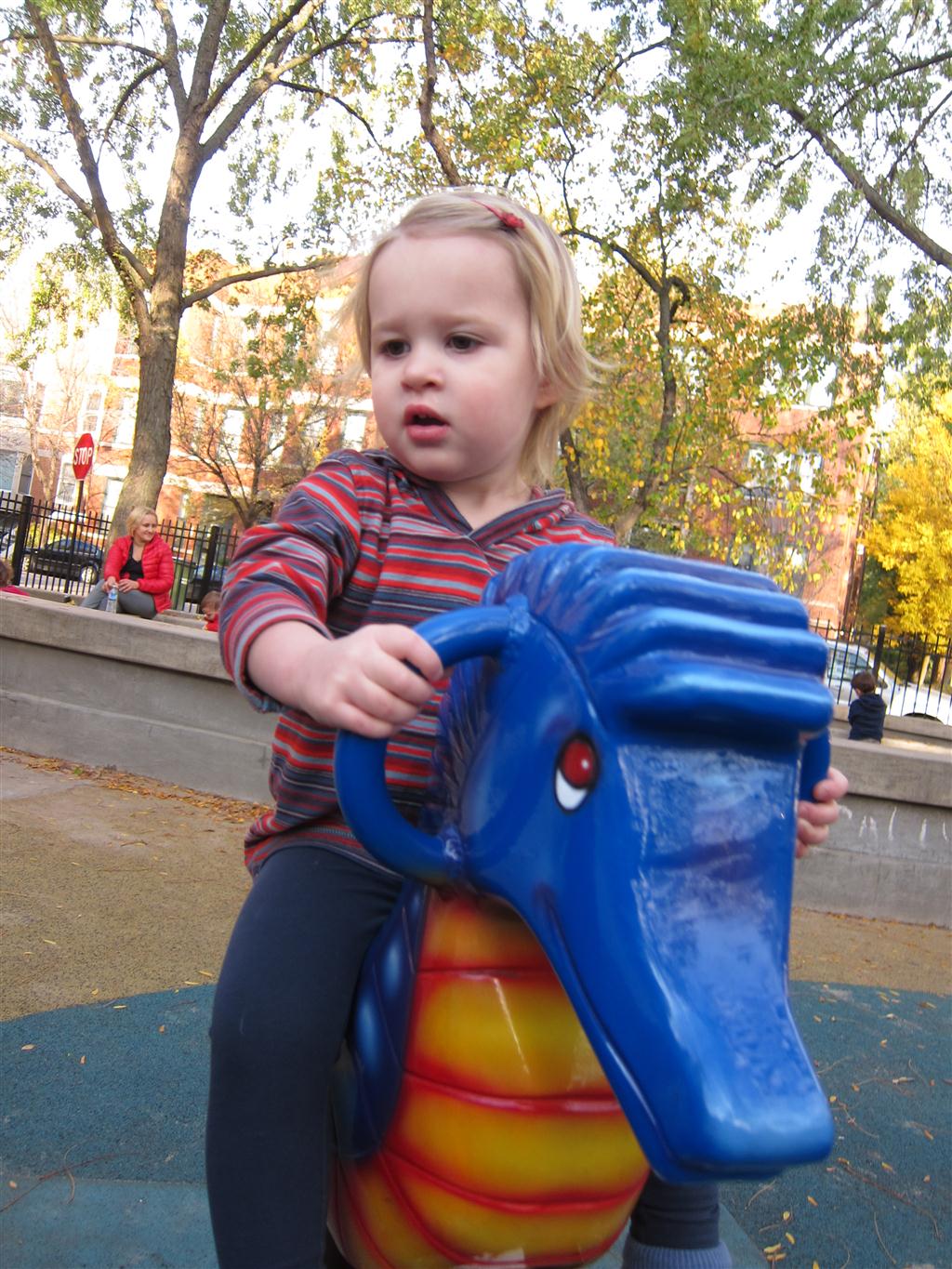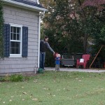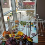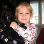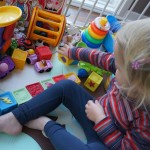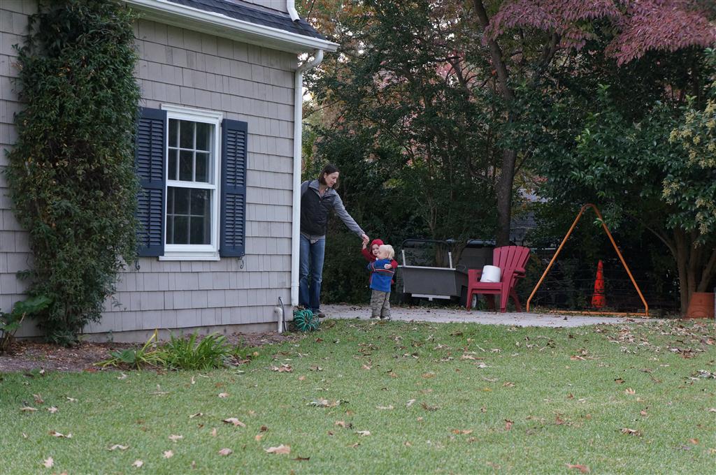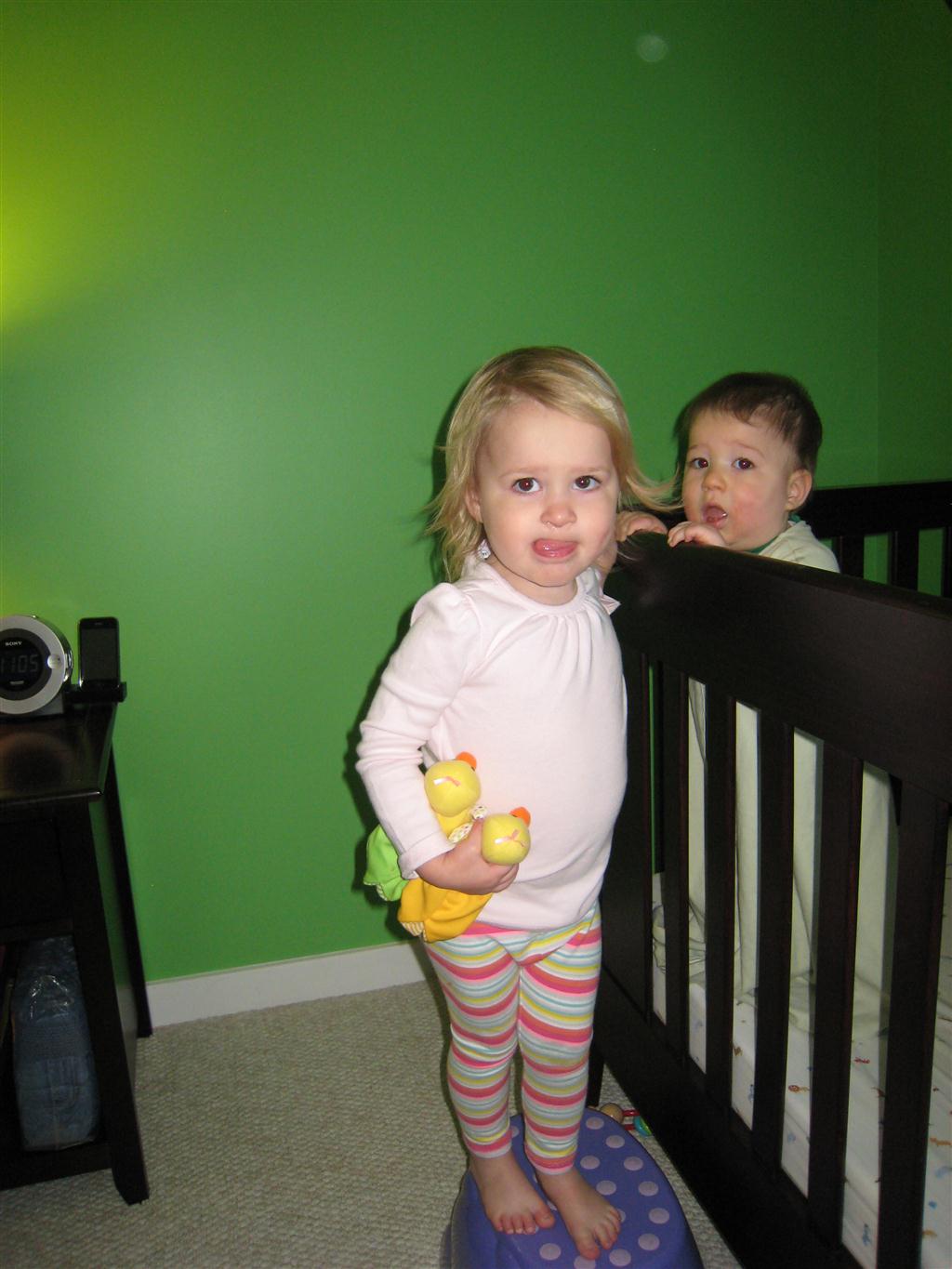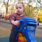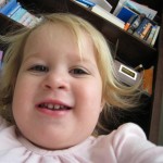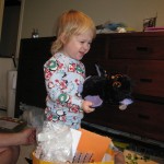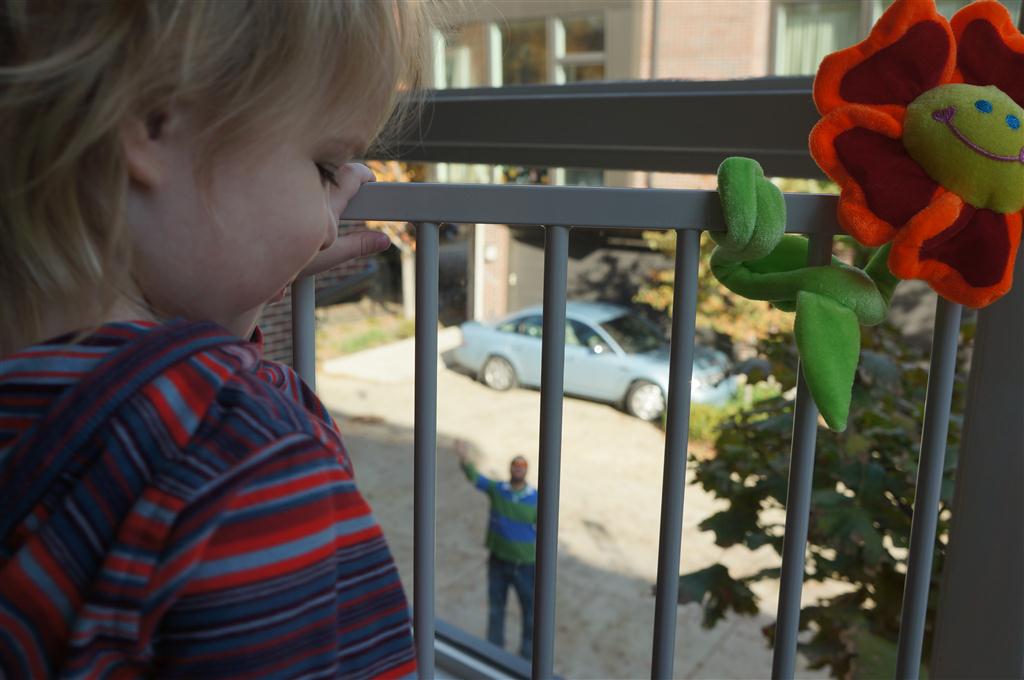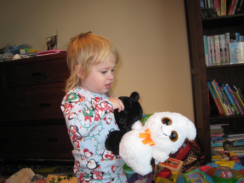 Eleanor had fun this week watching them demolish a house across the alley. They took down the carriage house using a front loader and dump truck which she could see from our front window, and inspired her to get out her front loader and dump truck and do some coordinated play. Mom snapped some great photos that are just screaming for the Eleanor inspired caption “Match”.