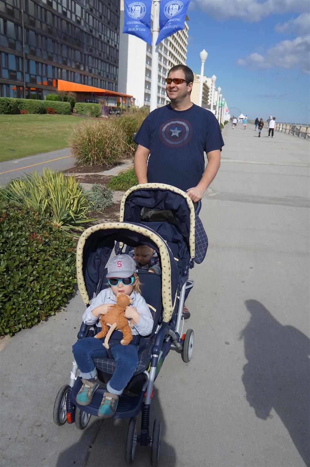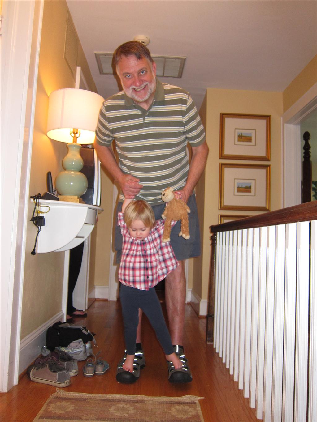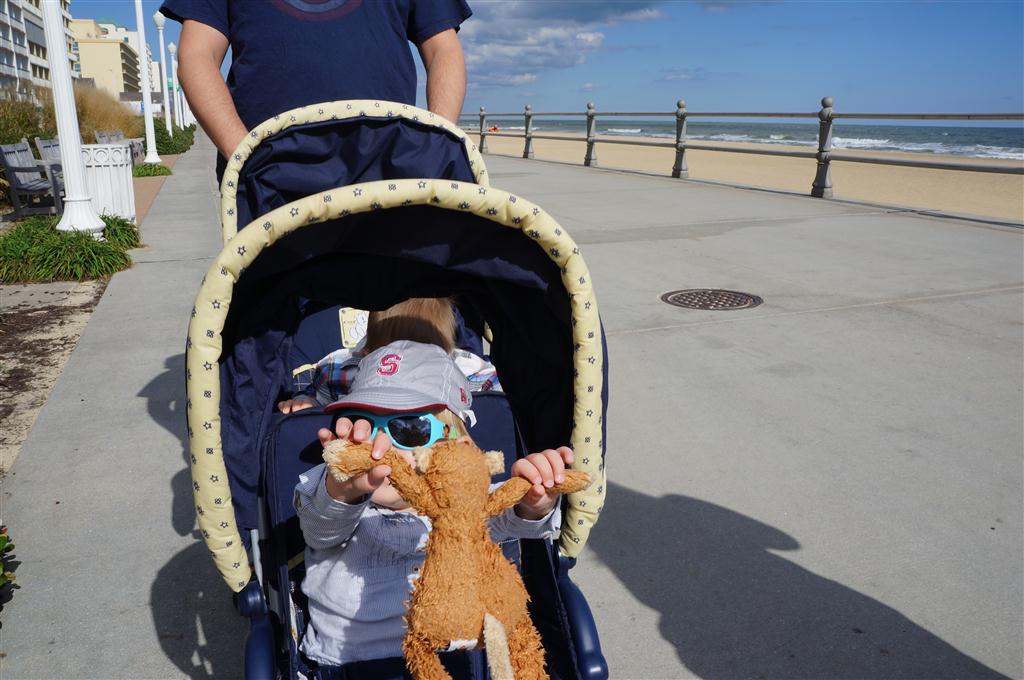 On Friday, Eleanor and Henry left with Mom and Lala on a vacation to the beach – with Dad a day behind. Mimi, Papa, Uncle J, Aunt Shawnee and Cousin Saul met them there for a fun family get together. Henry loved the walk on the boardwalk and sitting on the grass in the beautiful back yard, and Eleanor got a kick out of eating spaghetti with a fork and running free in the grass. They both loved hanging out with Saul – and can’t wait to hit the beach next week when it is supposed to get warmer!