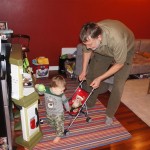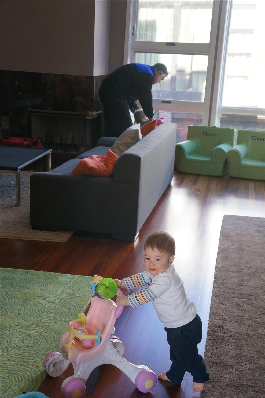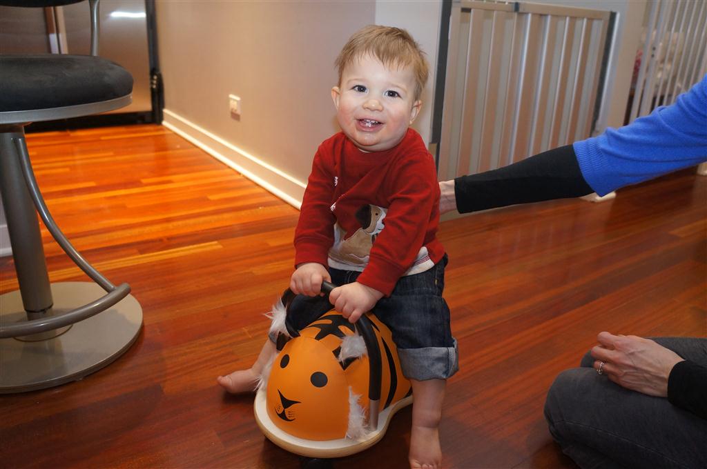 Henry continues to work on his walking, although I don’t think that he is convinced yet that it should become his main mode of transportation. He is also becoming more expressive, both with sounds and gestures. He has a distinctive noise that he makes for Zapa, and also one that seems to mean either “I’m Hungry” or “I’m Thirsty”.