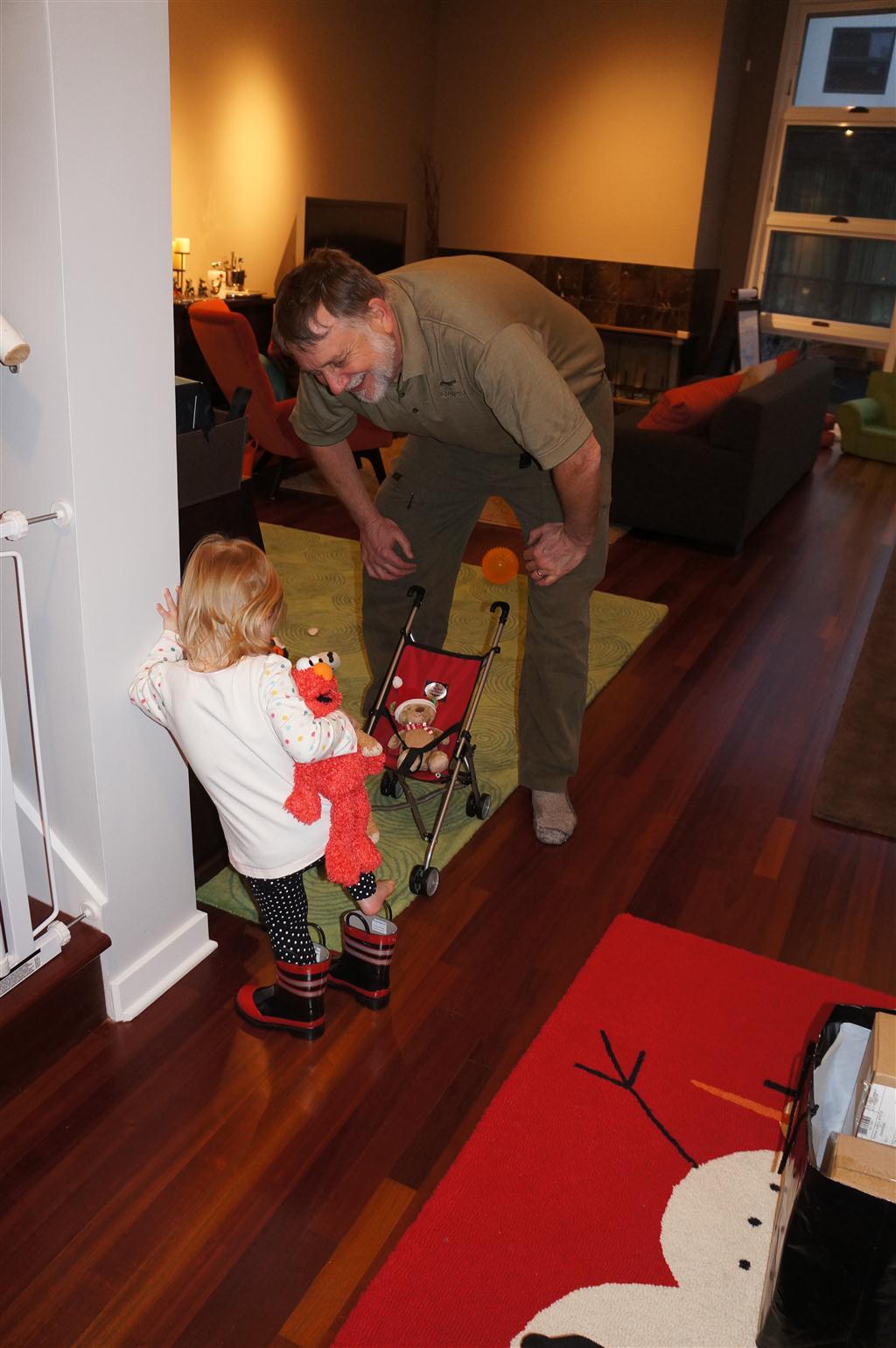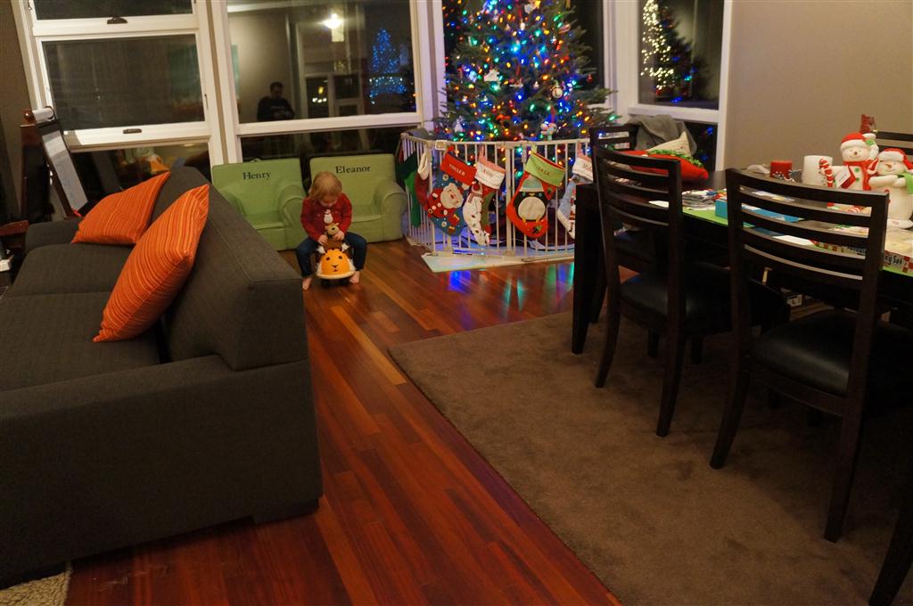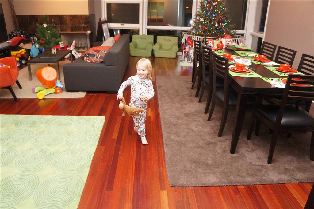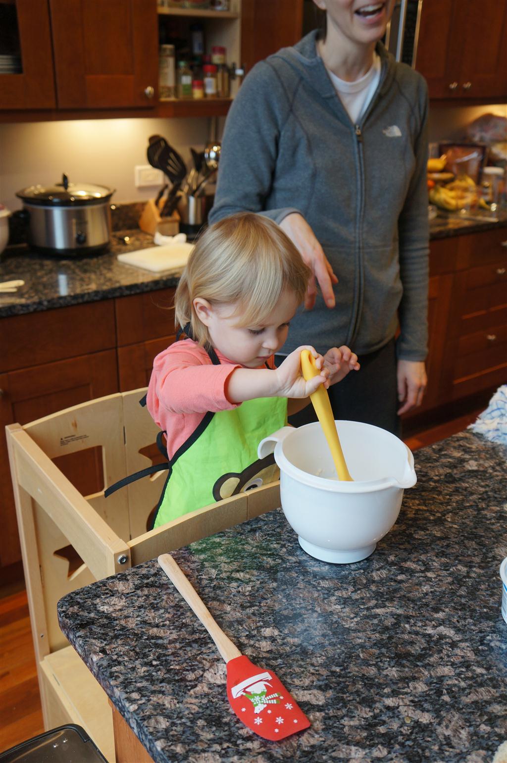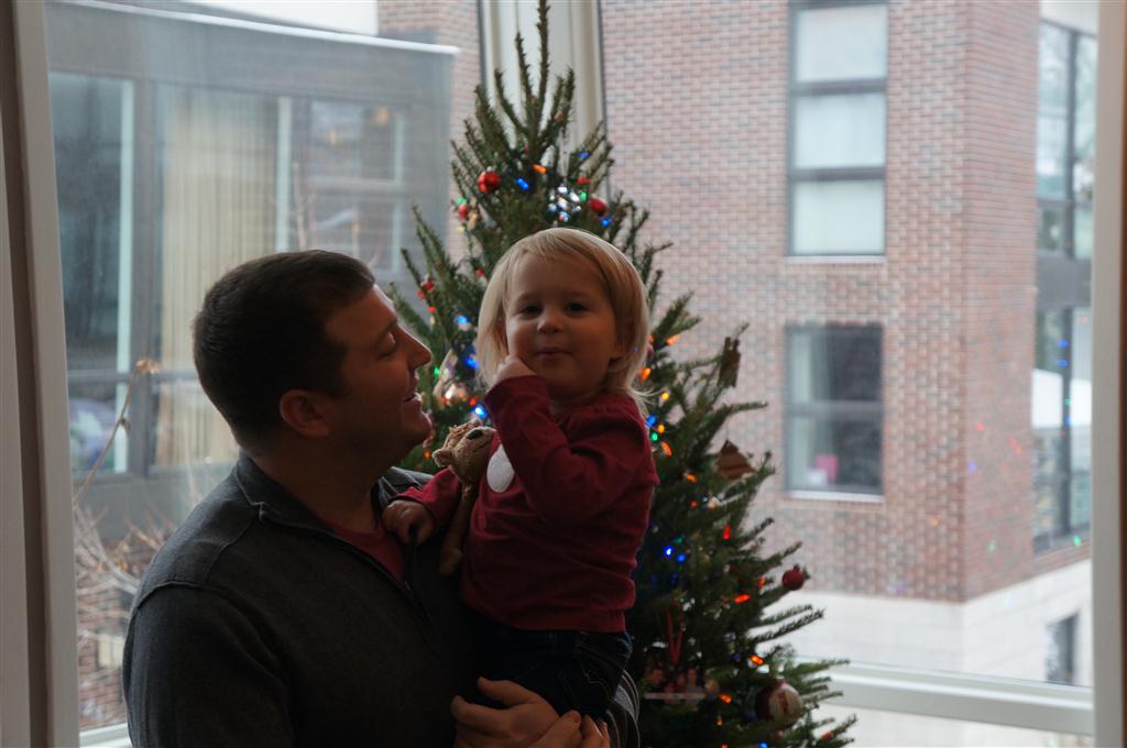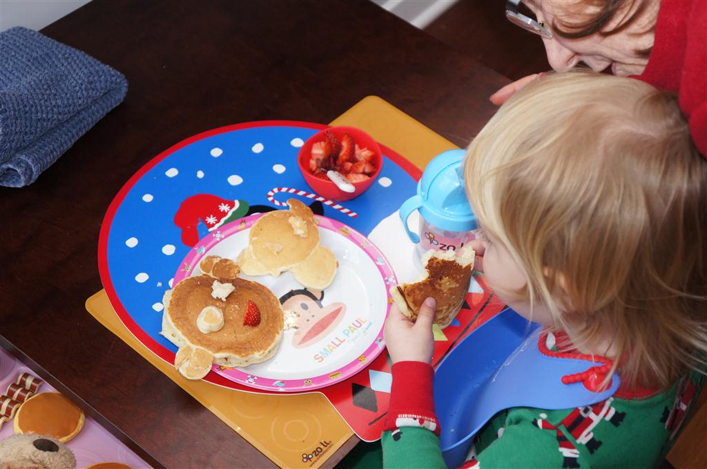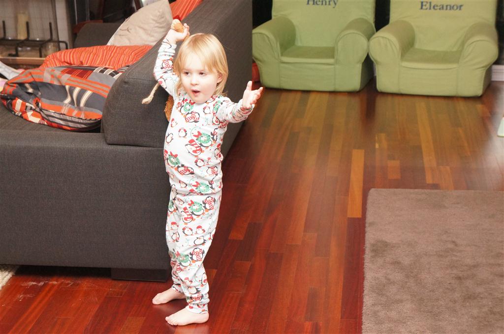 Eleanor did a lot of cooking this week, helping Mom to make a crockpot lasagna and Mimi and Papa to make pancakes for Christmas breakfast. We also got a bit of snow on Christmas morning, and Eleanor loved going outside and playing in it. She loved watching snowballs hit the ground, and also shoveling snow into the storm drains. We got her set up with a hockey stick and she was off doing her own shoveling. Poor Henry was napping at the time so he missed the snow fun.