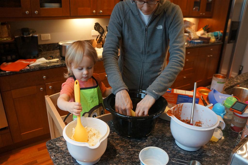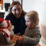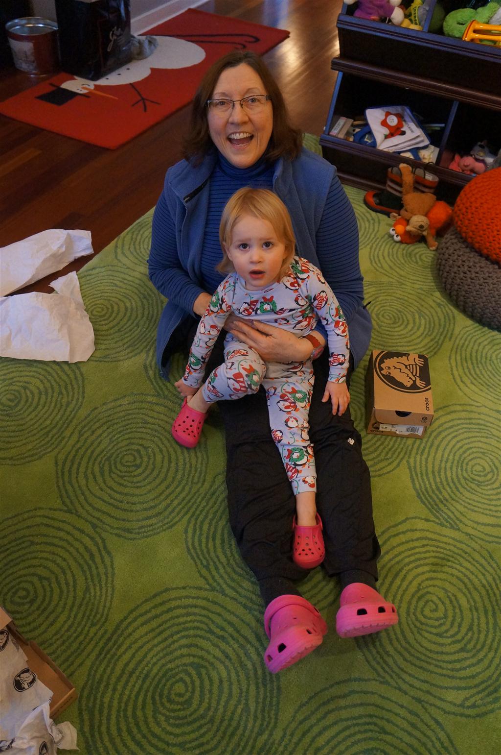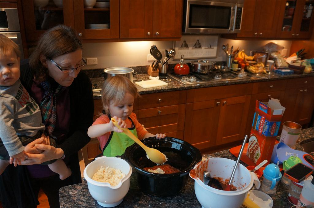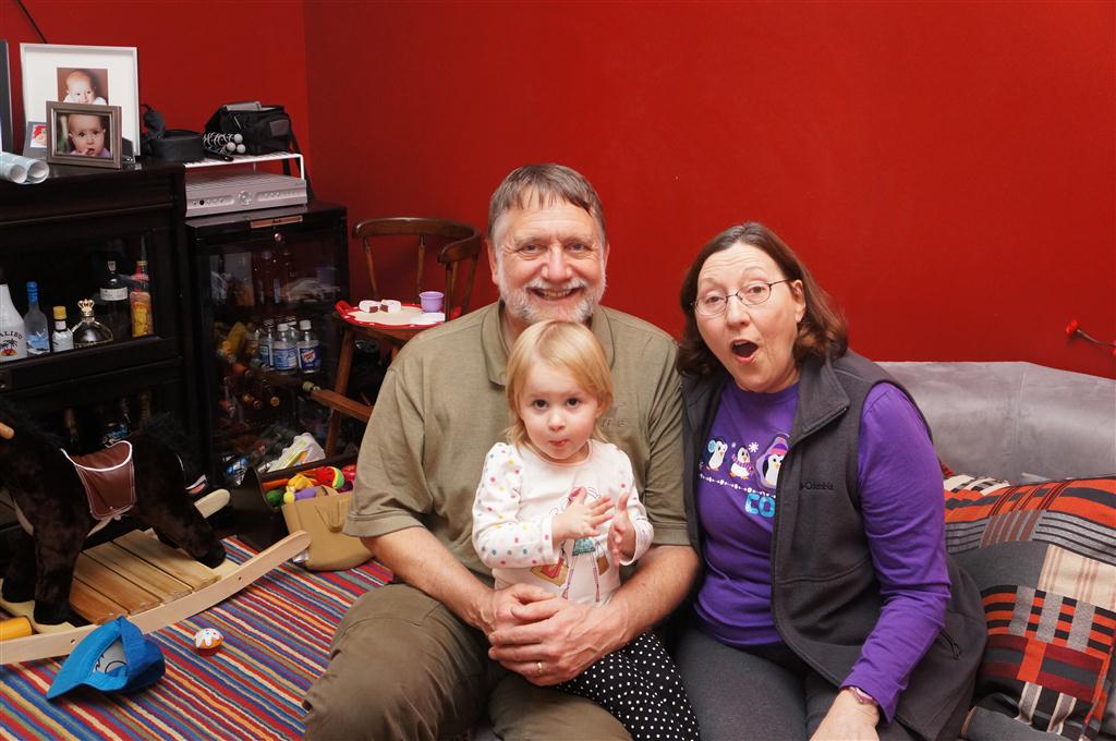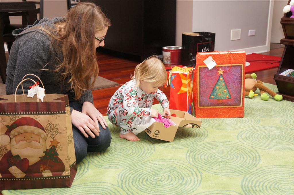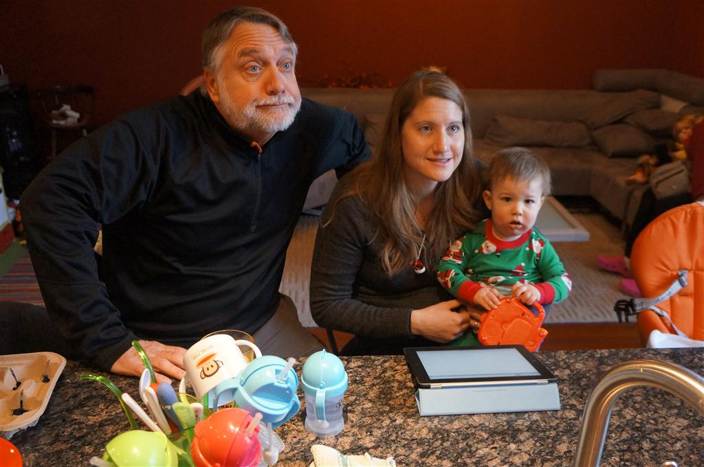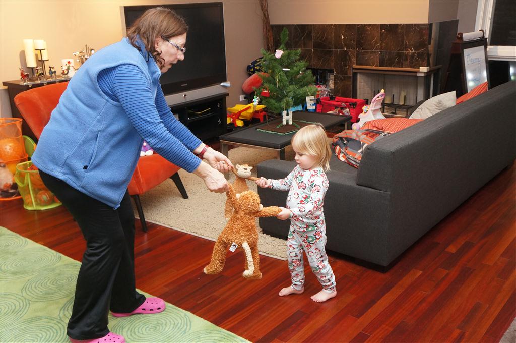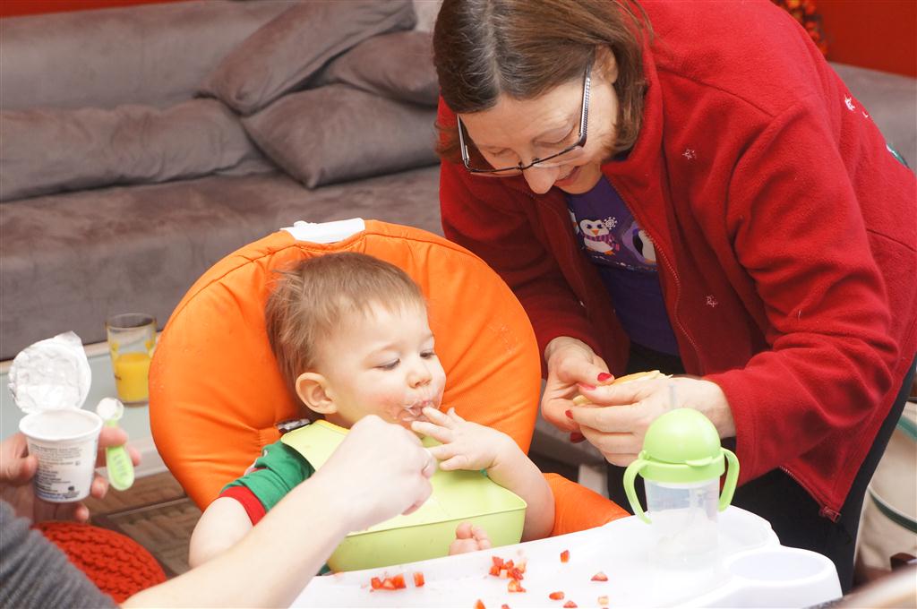 Eleanor did a lot of cooking this week, helping Mom to make a crockpot lasagna and Mimi and Papa to make pancakes for Christmas breakfast. We also got a bit of snow on Christmas morning, and Eleanor loved going outside and playing in it. She loved watching snowballs hit the ground, and also shoveling snow into the storm drains. We got her set up with a hockey stick and she was off doing her own shoveling. Poor Henry was napping at the time so he missed the snow fun.