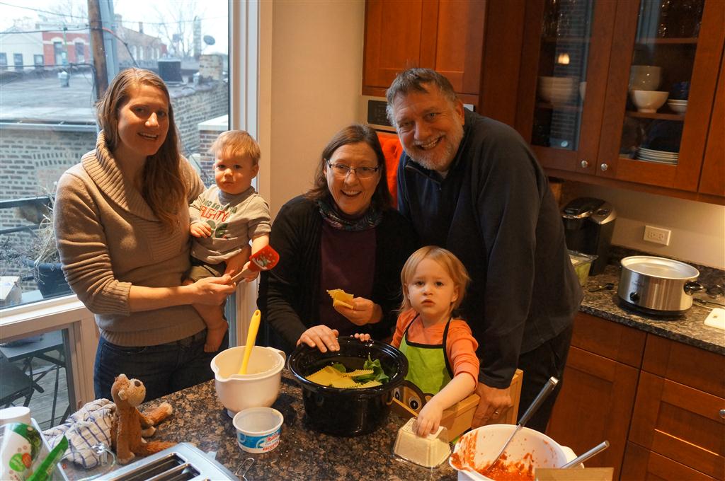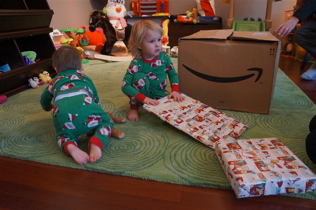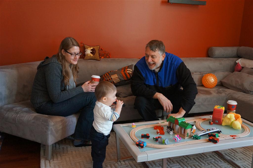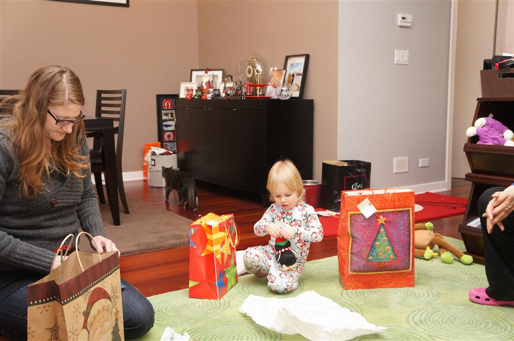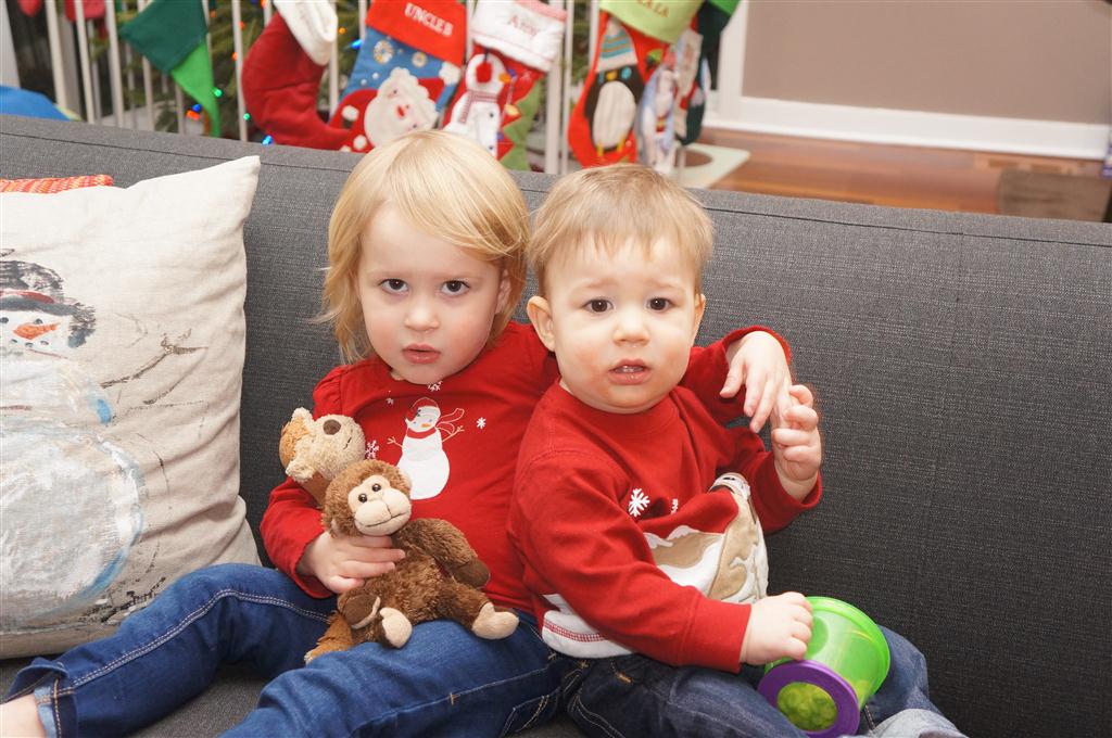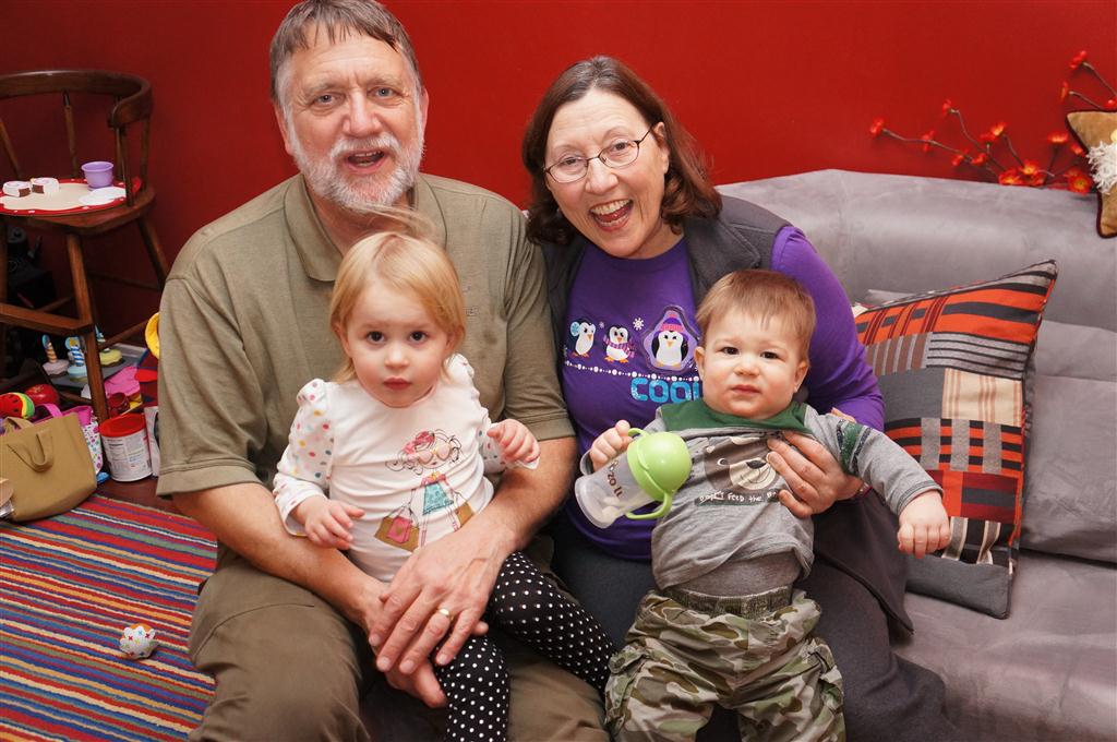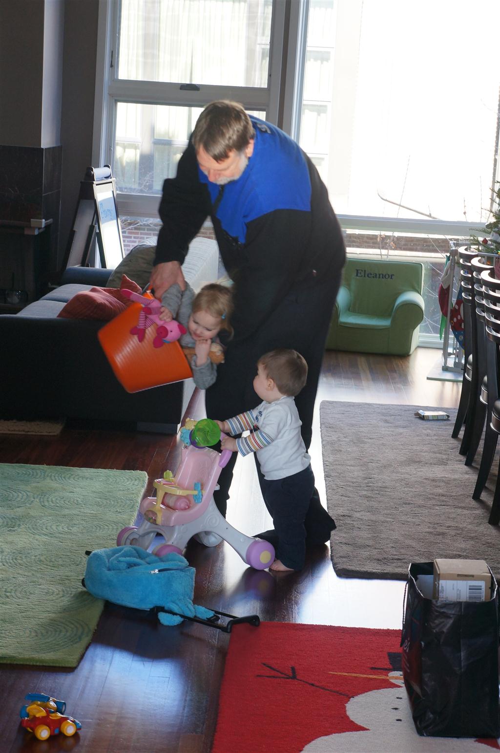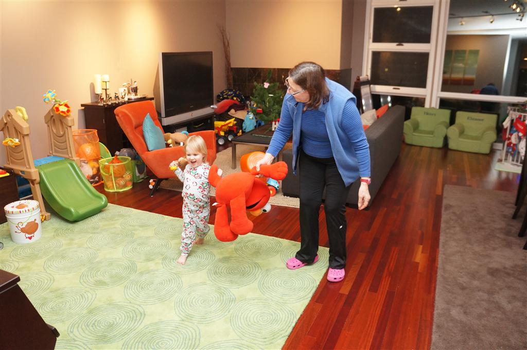 Henry and Eleanor had a blast celebrating Christmas with Mimi, Papa, Lala, Uncle B and Breanne. We started off the week with a trip to the train exhibit at the botanical gardens, and a trip to the doctor for Henry’s one year checkup (all is well :) ). Then Mimi and Papa arrived for lots of days of play. We also had a fun visit from our friends Anna and Jackie – who both really liked the caterpillar tunnel.