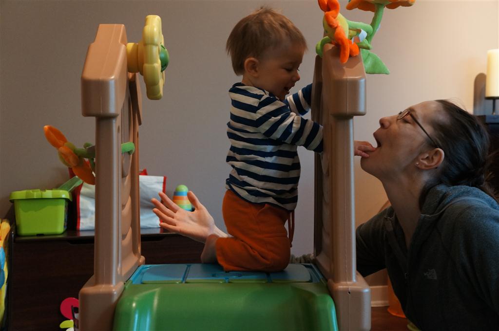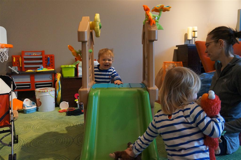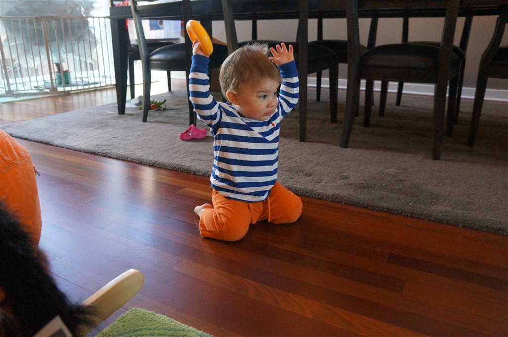 Both Henry and Eleanor were glad to be home after their long travel day – and both gave Zapa very excited greetings. Henry has been working on some new tricks this week – making the appropriate “pfffft” noise for elephants, and an “m” noise for melts. He has been working on his walking, and can also now climb the slide all by himself (although Mom or Dad are always nearby because sometimes the dismount isn’t as graceful :) ). He also successfully put all of the shapes into the shape sorter – although Dad had to show him each time which hole to try. He is quite proud of himself with the shape sorter, and loves to clap after each piece goes in – and also when they don’t go all the way in.