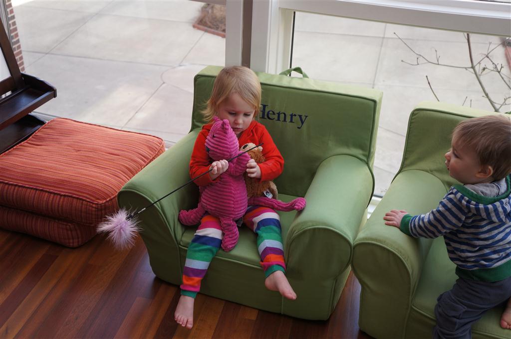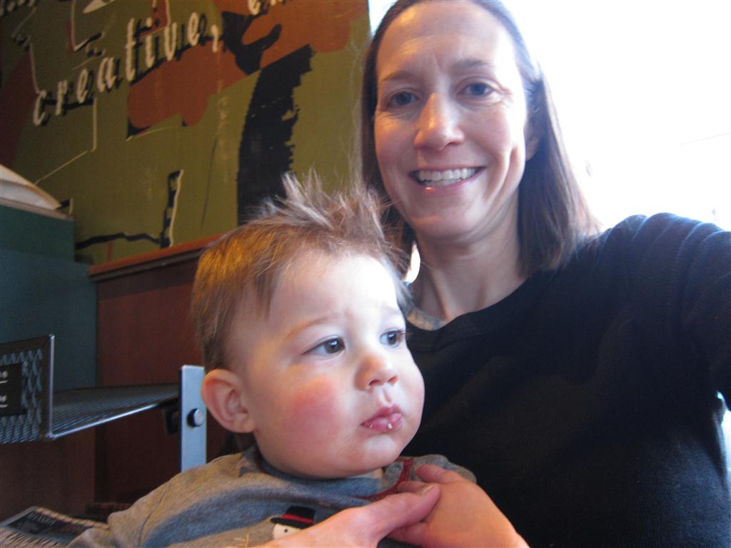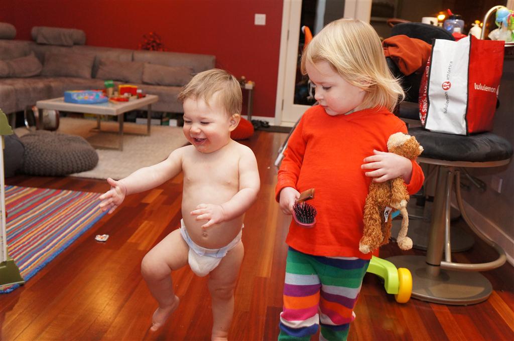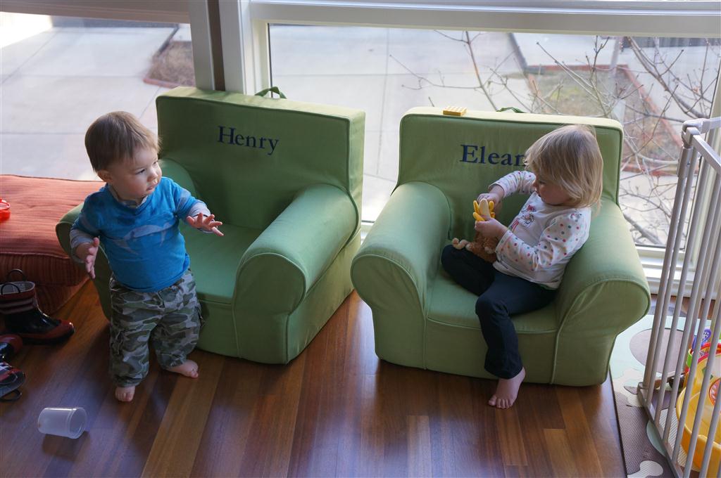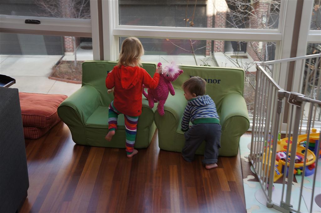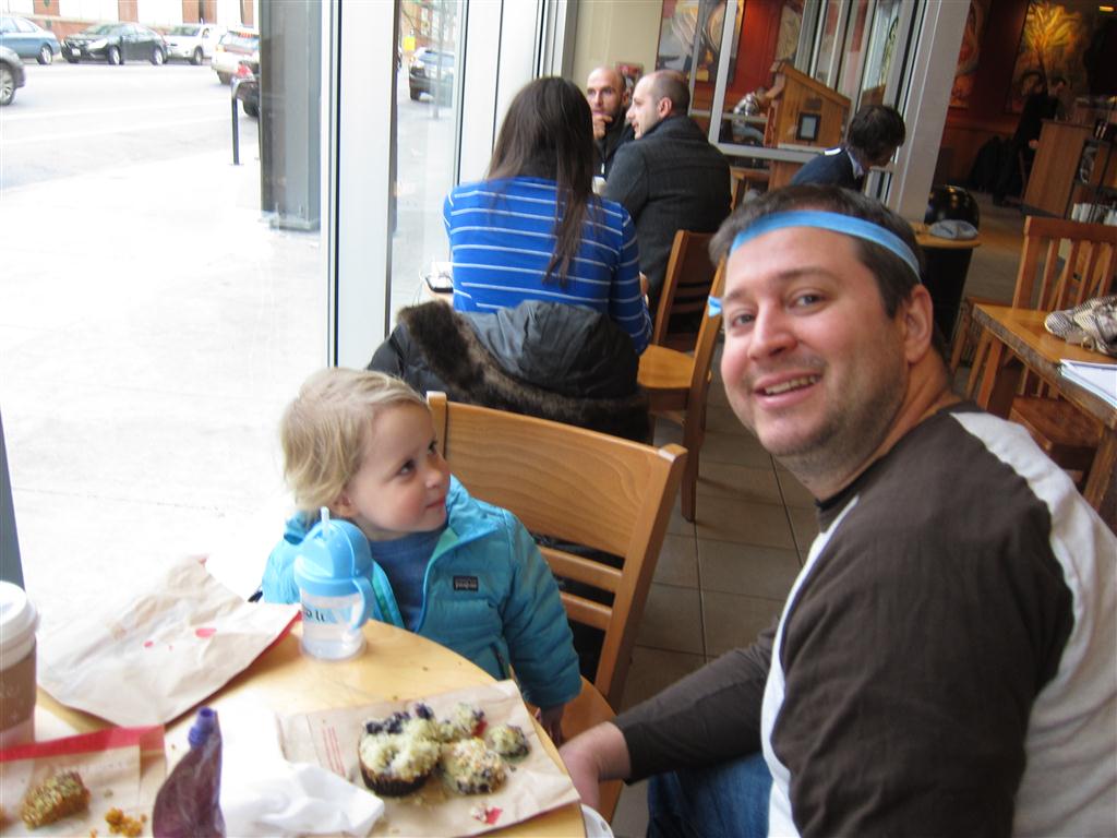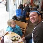 Other fun this week included a haircut for Henry, Eleanor and Mom making banana muffins, and running in to Uncle B and Breanne on our way home from the park – they were at a wedding at a neighborhood church – which explains (at least a little bit) Uncle B’s pants.