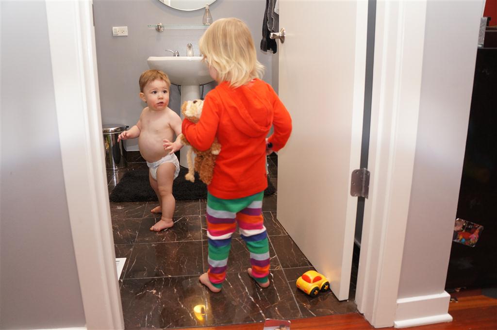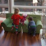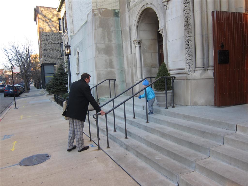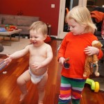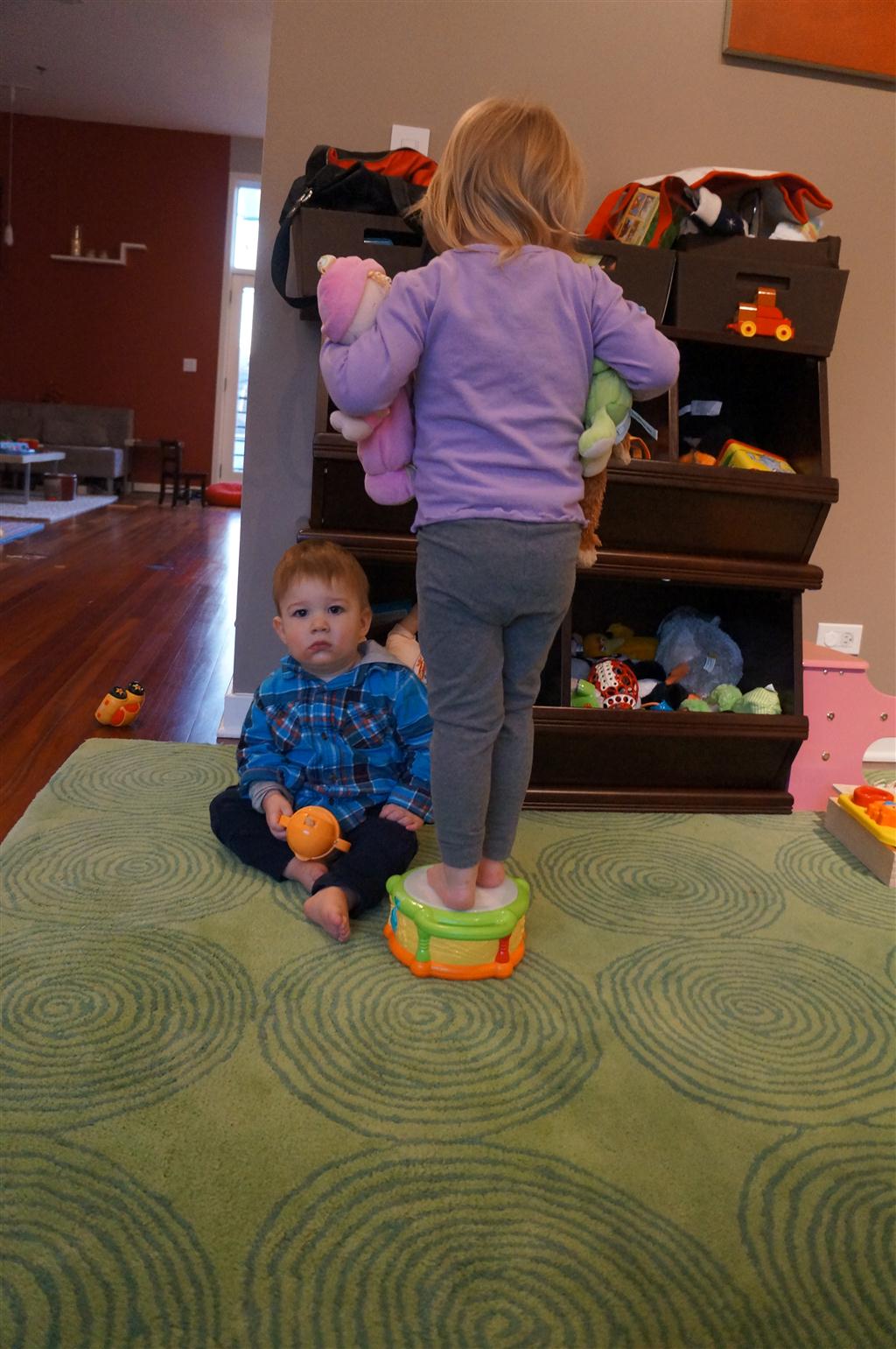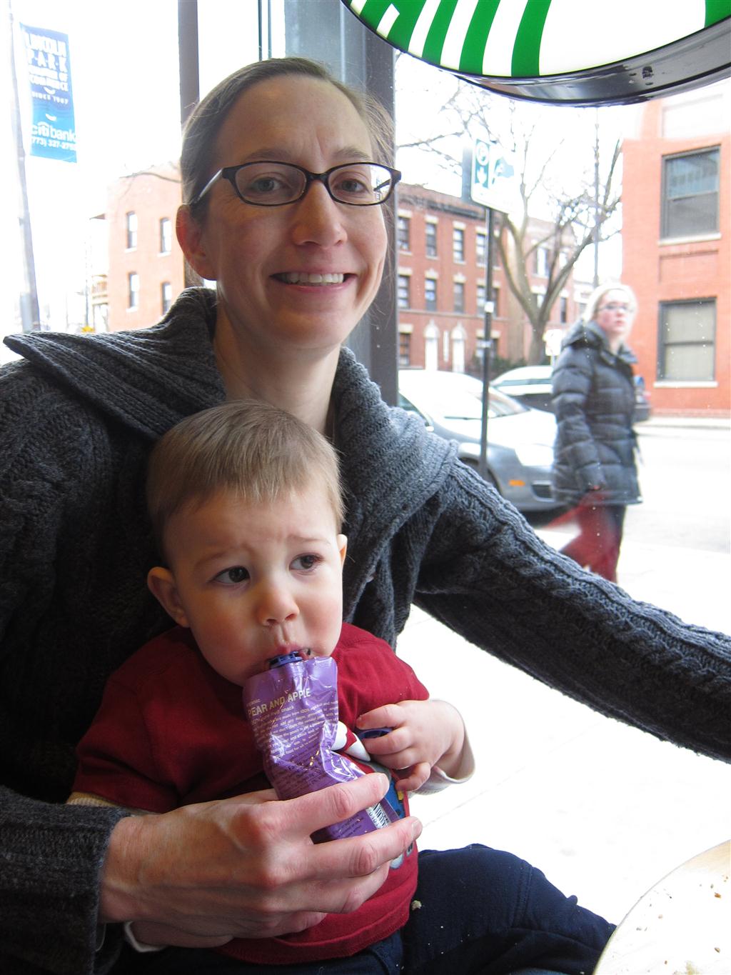 Other fun this week included a haircut for Henry, Eleanor and Mom making banana muffins, and running in to Uncle B and Breanne on our way home from the park – they were at a wedding at a neighborhood church – which explains (at least a little bit) Uncle B’s pants.