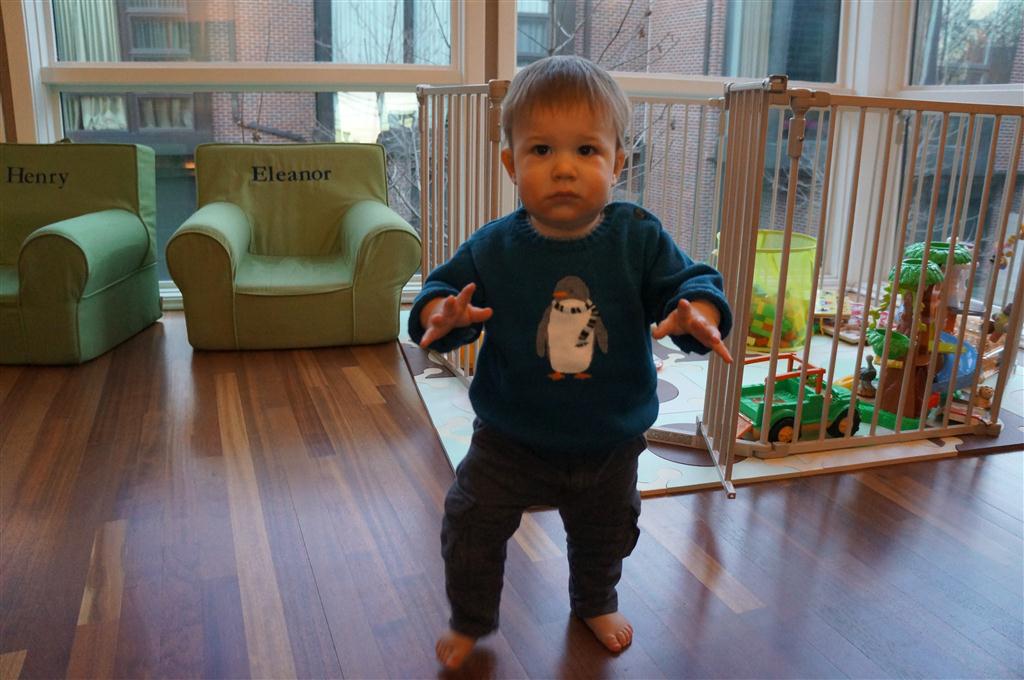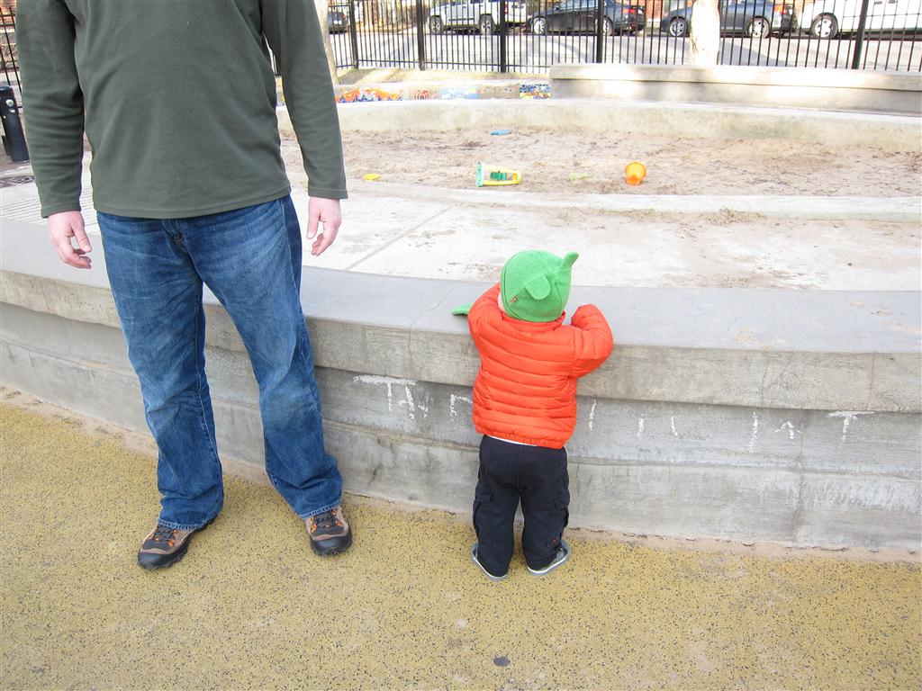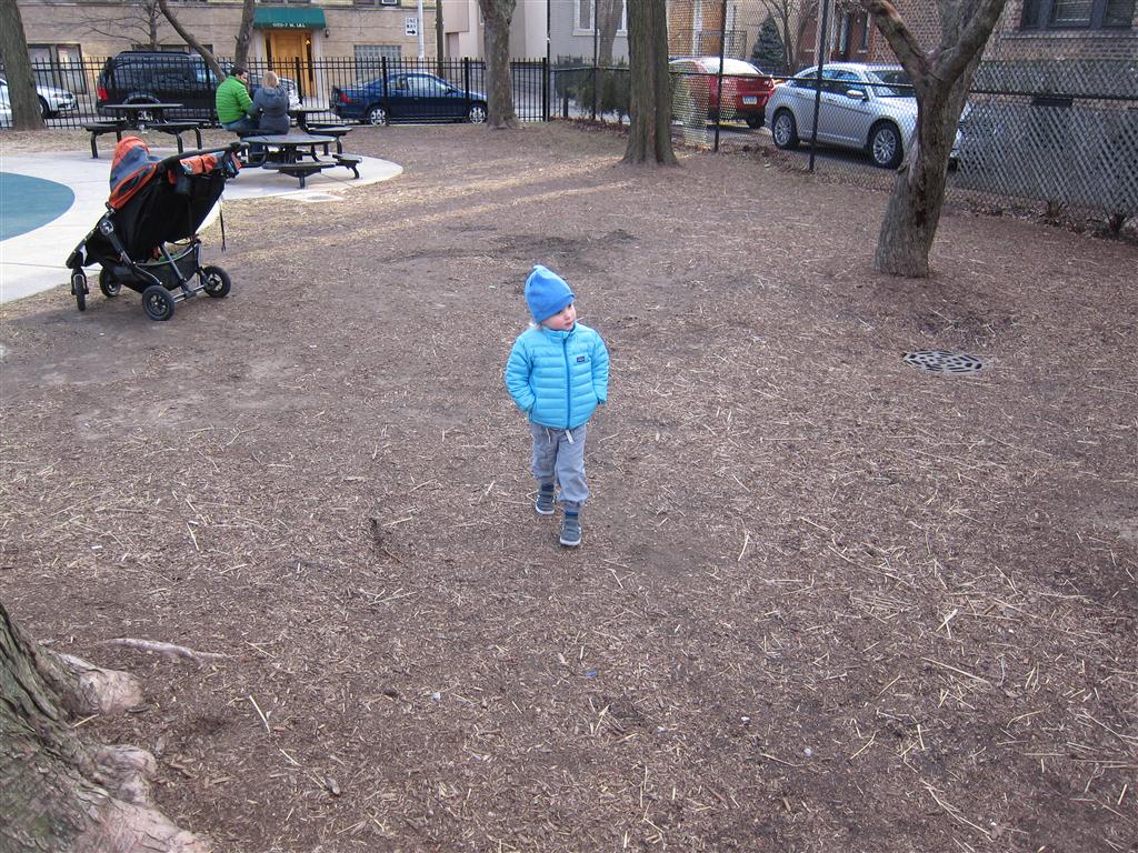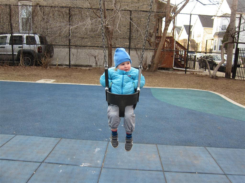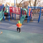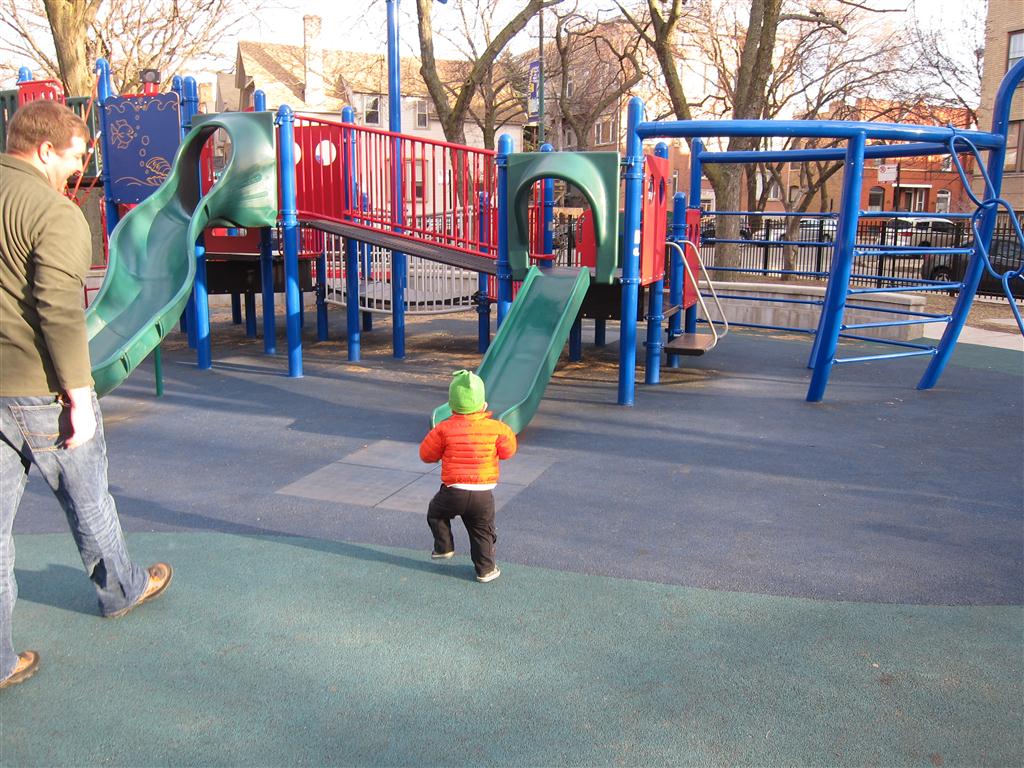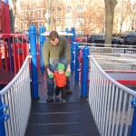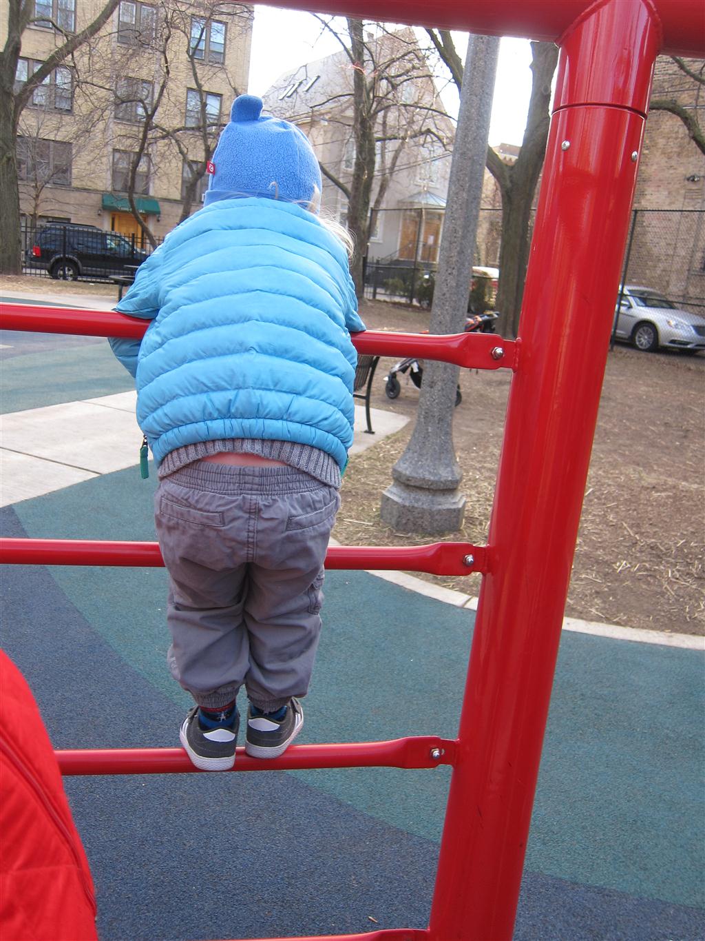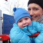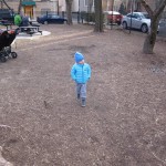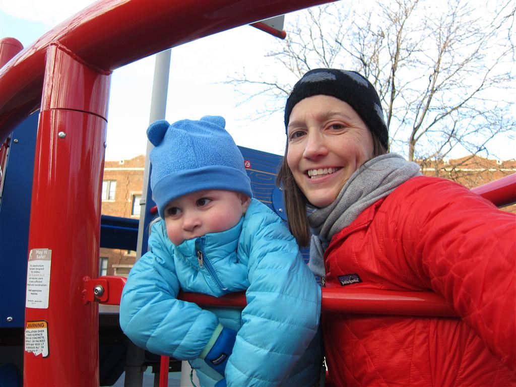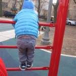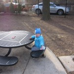 Henry finally got to find out what all the fun is about at the park. He has been working on his walking all week, and can now cover quite a bit of distance, and a few times has covered the entire length of the house. So, when we got some unseasonably warm weather this weekend, we headed out to the park and he was able to walk around. It is the first time he has been at the park since he started walking, and you could see the excitement in his face. First, he walked over to the slide and did that a few times, then he headed for the swings with a detour to the rocking horses on the way. His favorite part was climbing up the stairs and steering the big ships wheel.