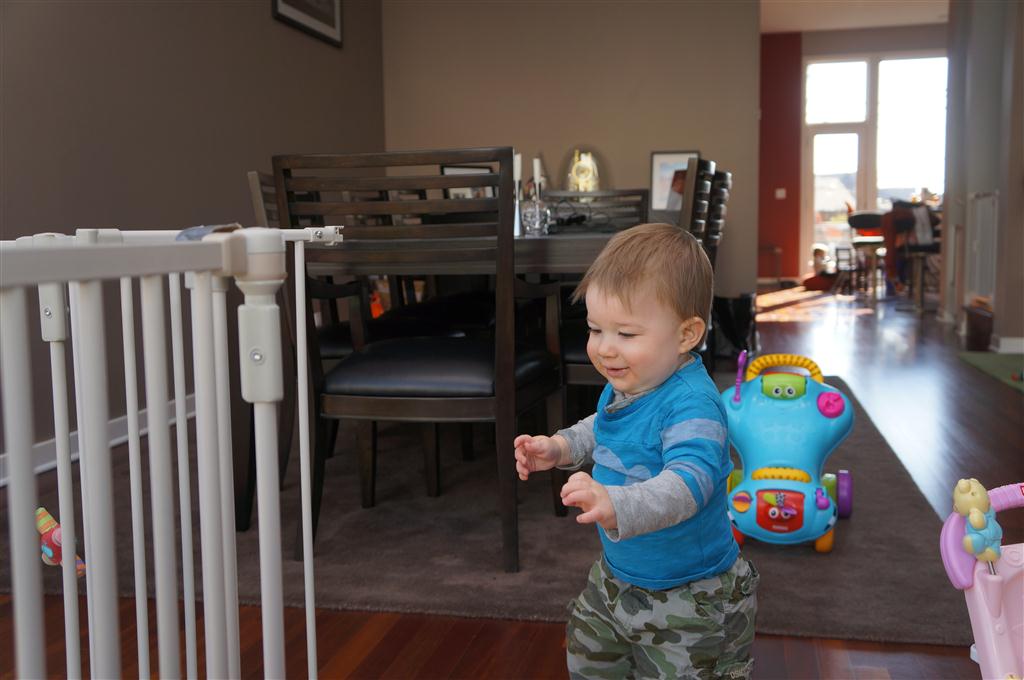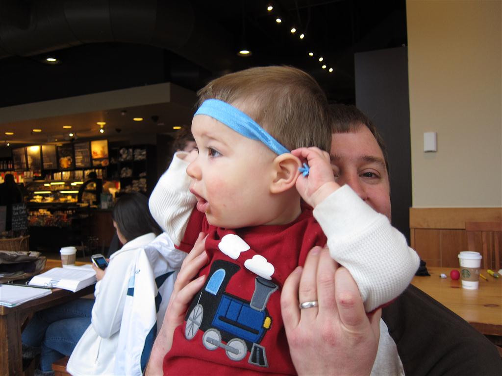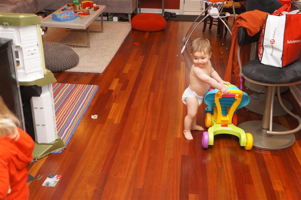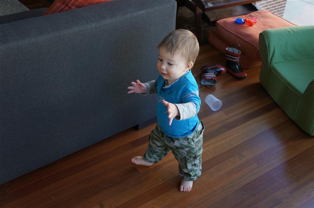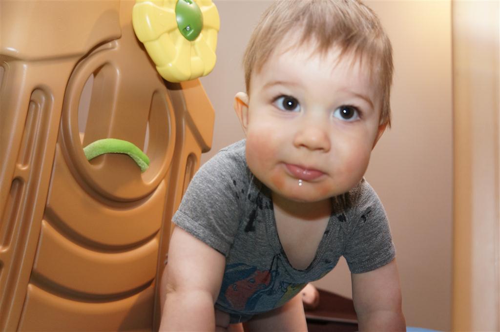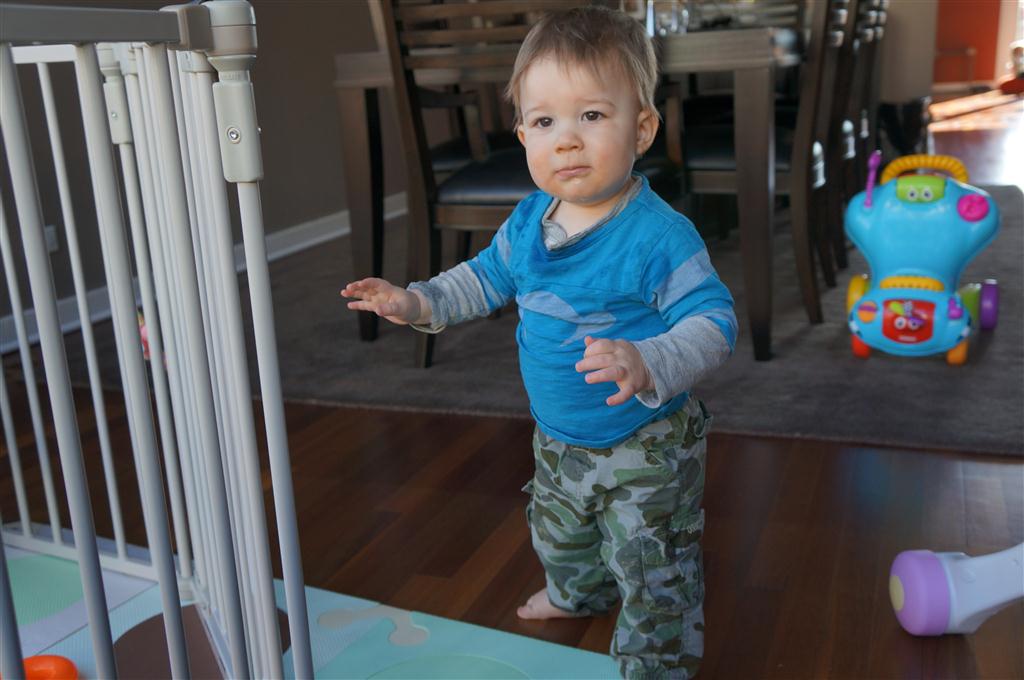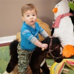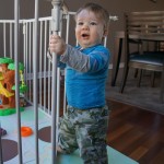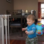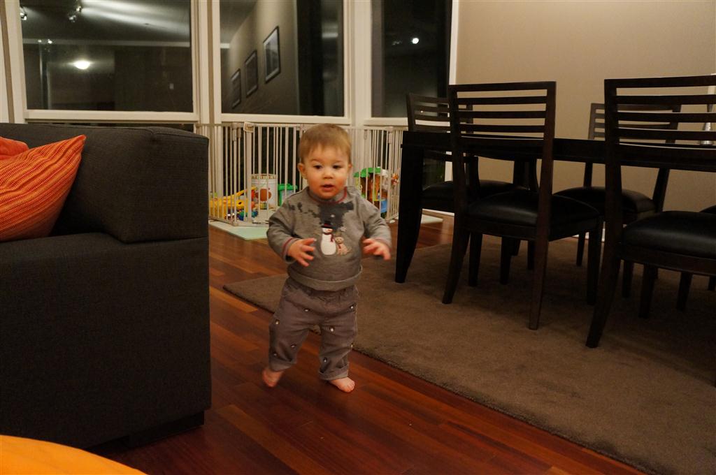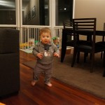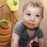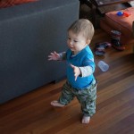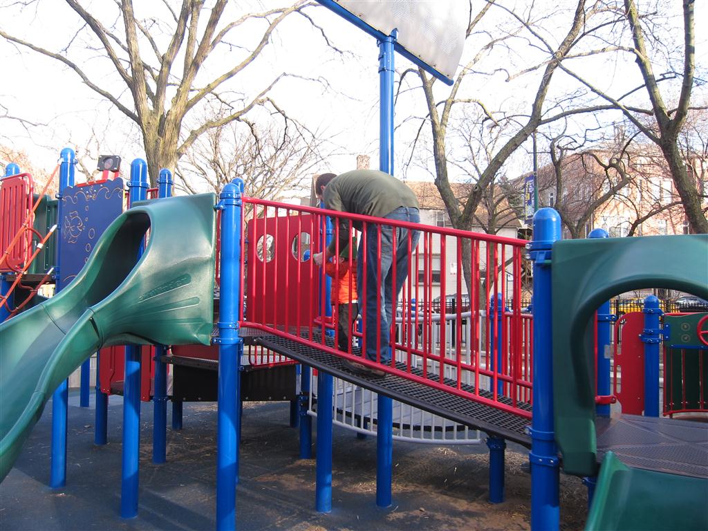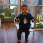 Henry finally got to find out what all the fun is about at the park. He has been working on his walking all week, and can now cover quite a bit of distance, and a few times has covered the entire length of the house. So, when we got some unseasonably warm weather this weekend, we headed out to the park and he was able to walk around. It is the first time he has been at the park since he started walking, and you could see the excitement in his face. First, he walked over to the slide and did that a few times, then he headed for the swings with a detour to the rocking horses on the way. His favorite part was climbing up the stairs and steering the big ships wheel.