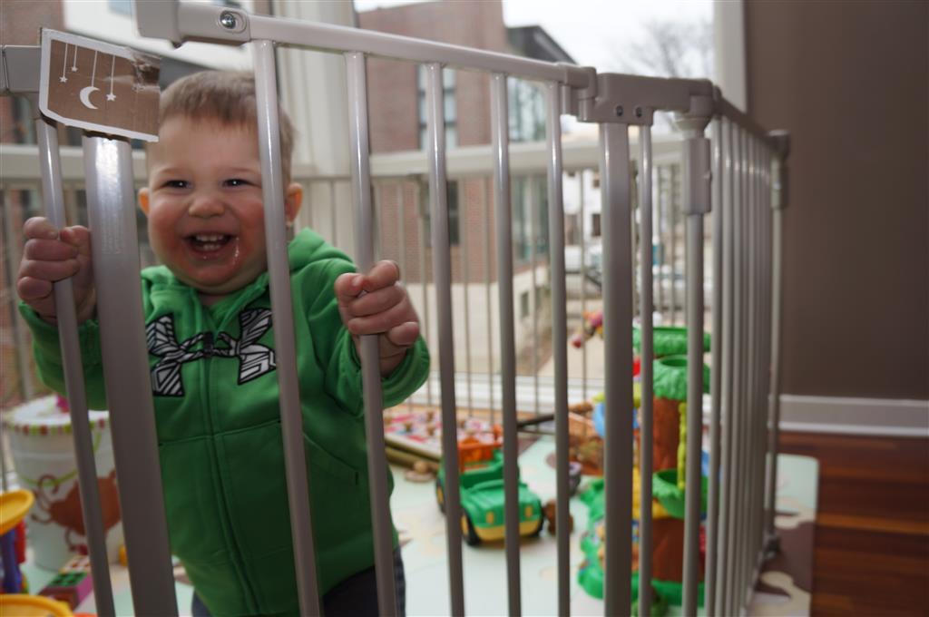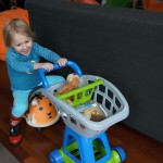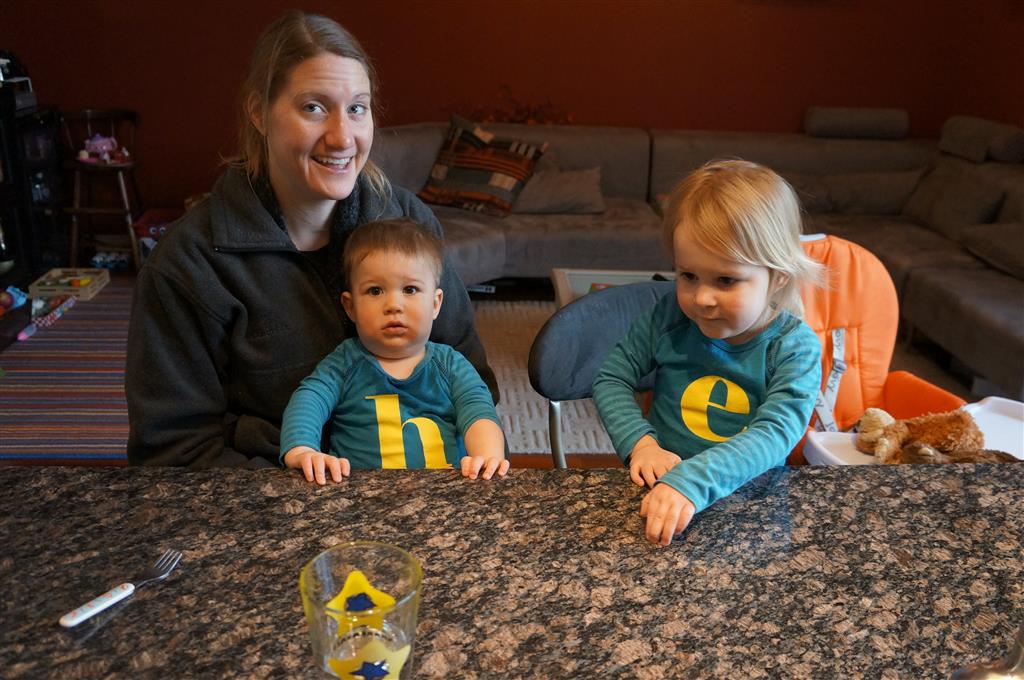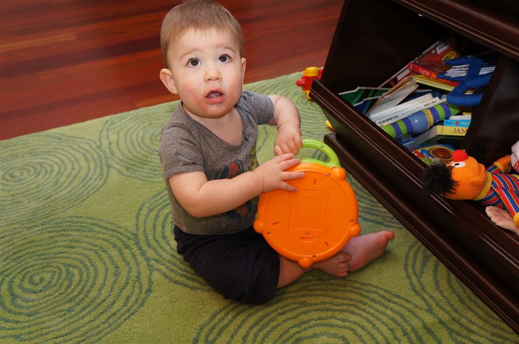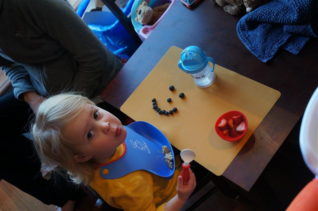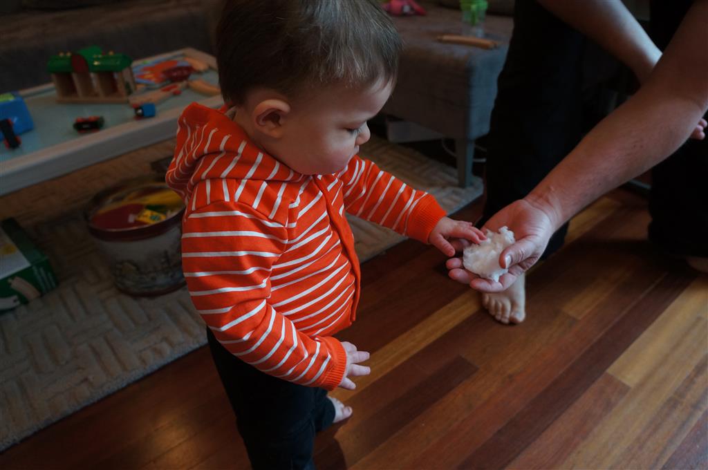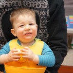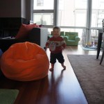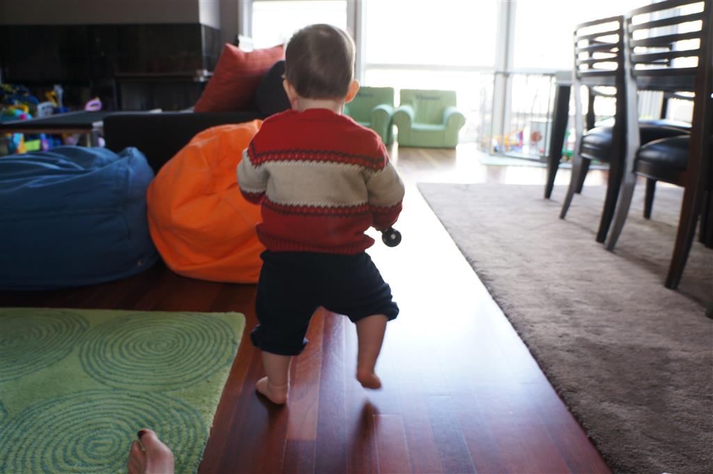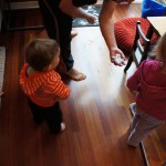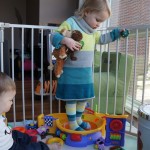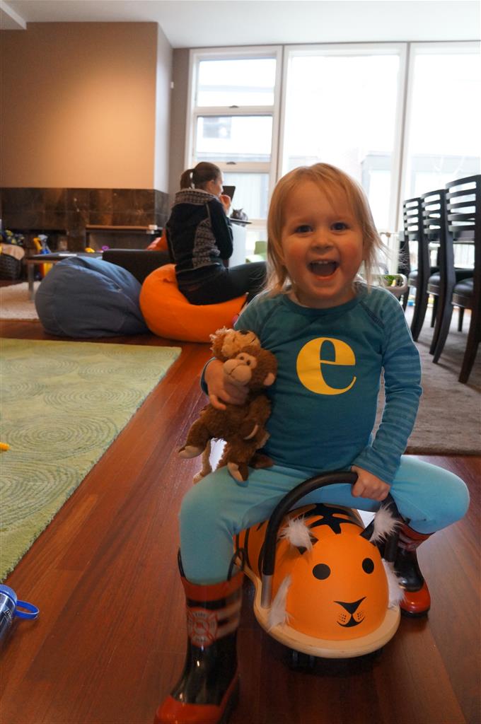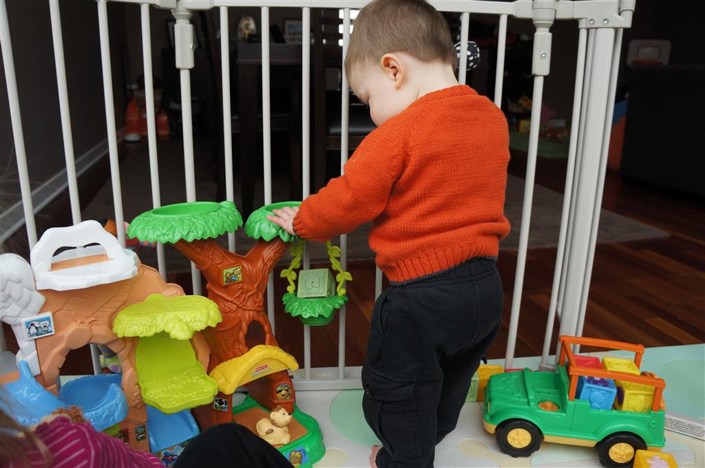 Henry has officially converted to walking. He can now stand up from a seated position without pulling up on anything, and has pretty much given up crawling. Sometimes Mom can even get him to spin in a circle and walk backwards. He can get on and off his rocking horse all by himself, and can also climb up the slide by himself, although he hasn’t quite mastered coming down. Henry is starting to enjoy standing in the kitchen tower and watching Mom and Dad make meals, he even managed to share it with Eleanor during one lunch prep. Speaking of meals, Henry ate a full pear for the first time this week, as well as peanut butter right off the spoon.