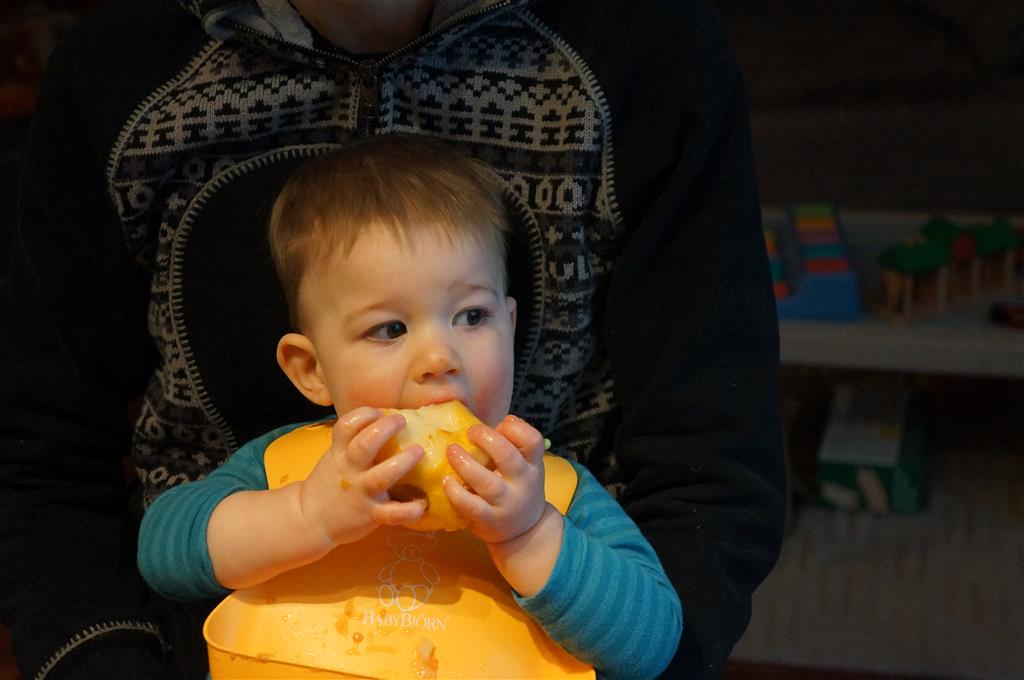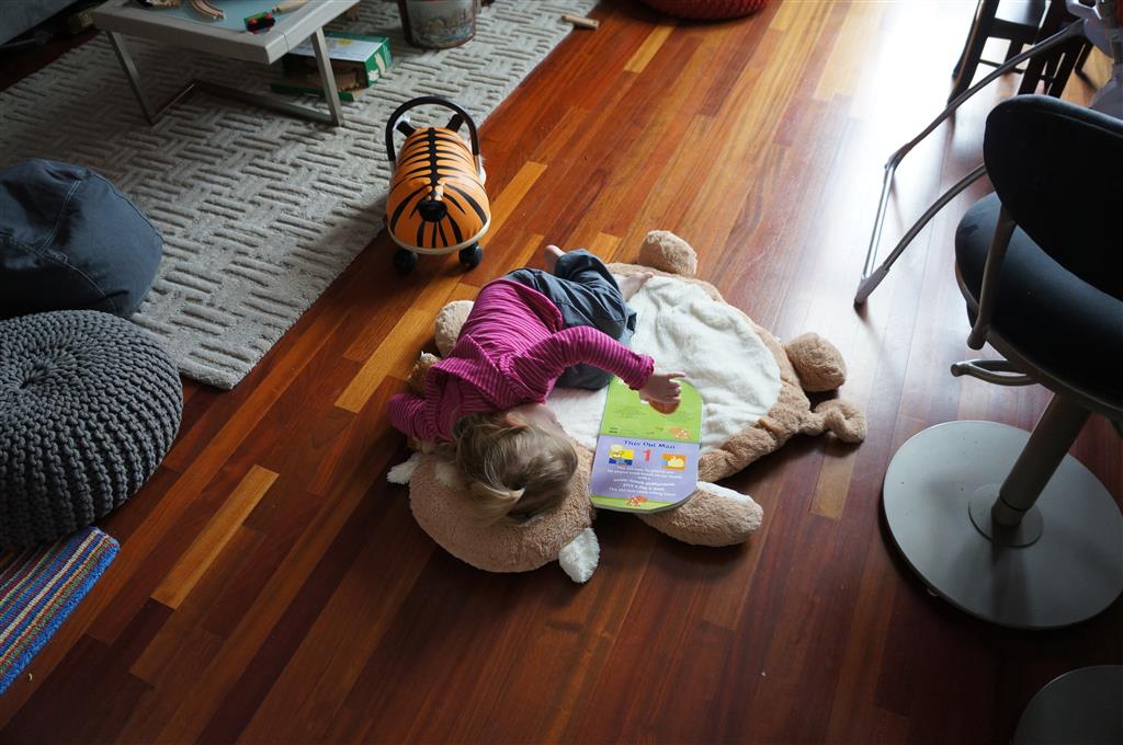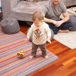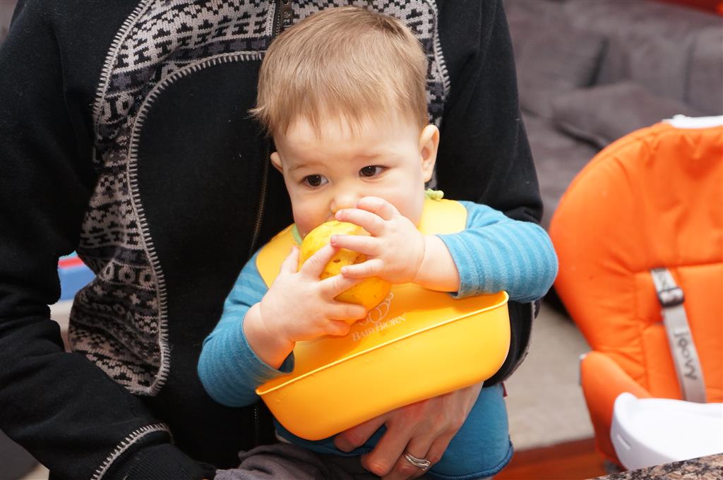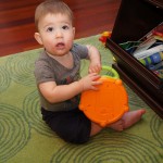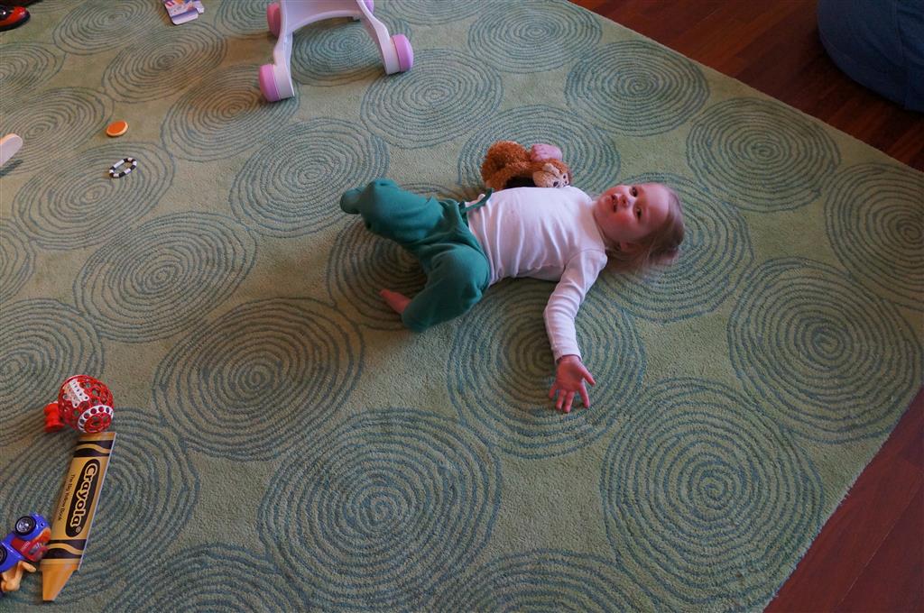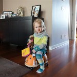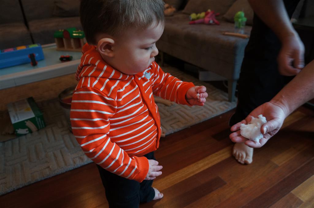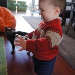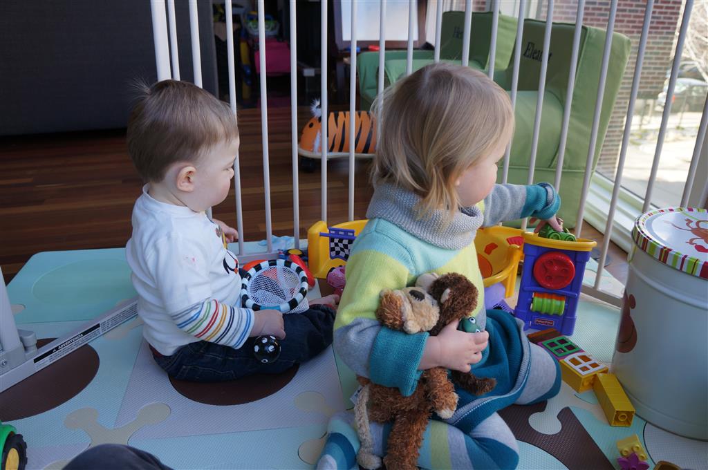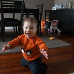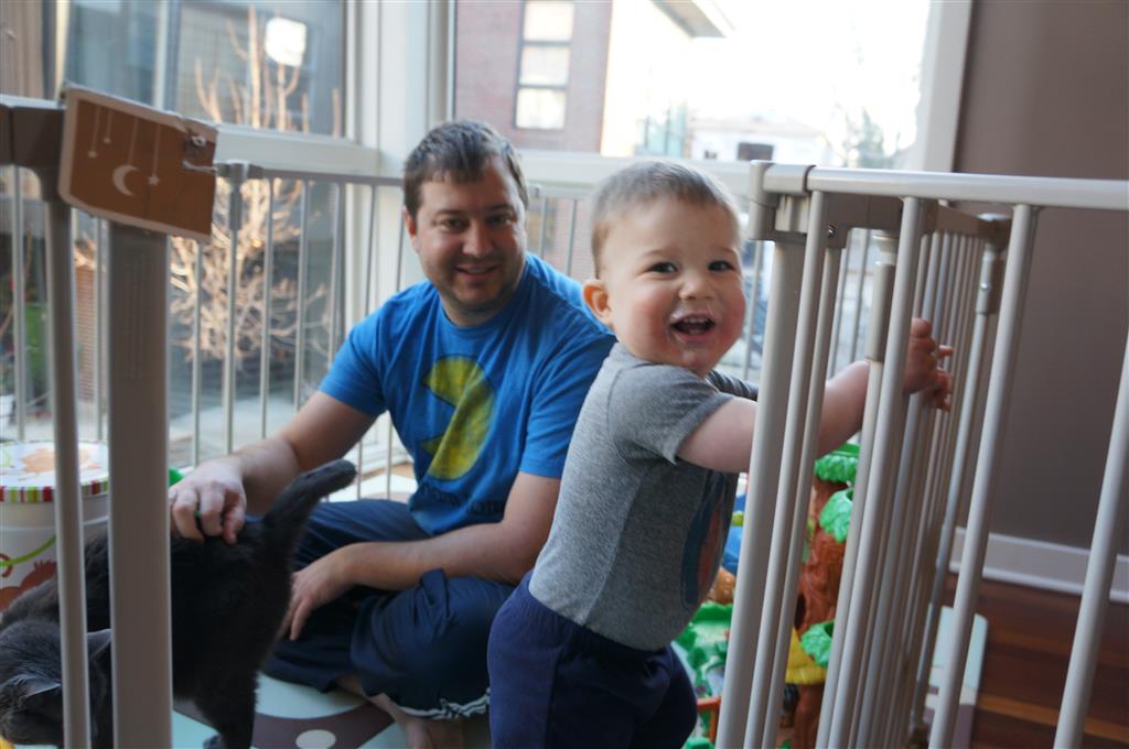 Henry has officially converted to walking. He can now stand up from a seated position without pulling up on anything, and has pretty much given up crawling. Sometimes Mom can even get him to spin in a circle and walk backwards. He can get on and off his rocking horse all by himself, and can also climb up the slide by himself, although he hasn’t quite mastered coming down. Henry is starting to enjoy standing in the kitchen tower and watching Mom and Dad make meals, he even managed to share it with Eleanor during one lunch prep. Speaking of meals, Henry ate a full pear for the first time this week, as well as peanut butter right off the spoon.