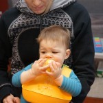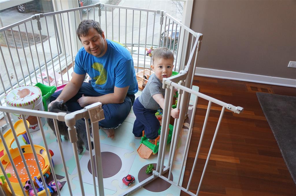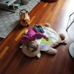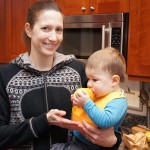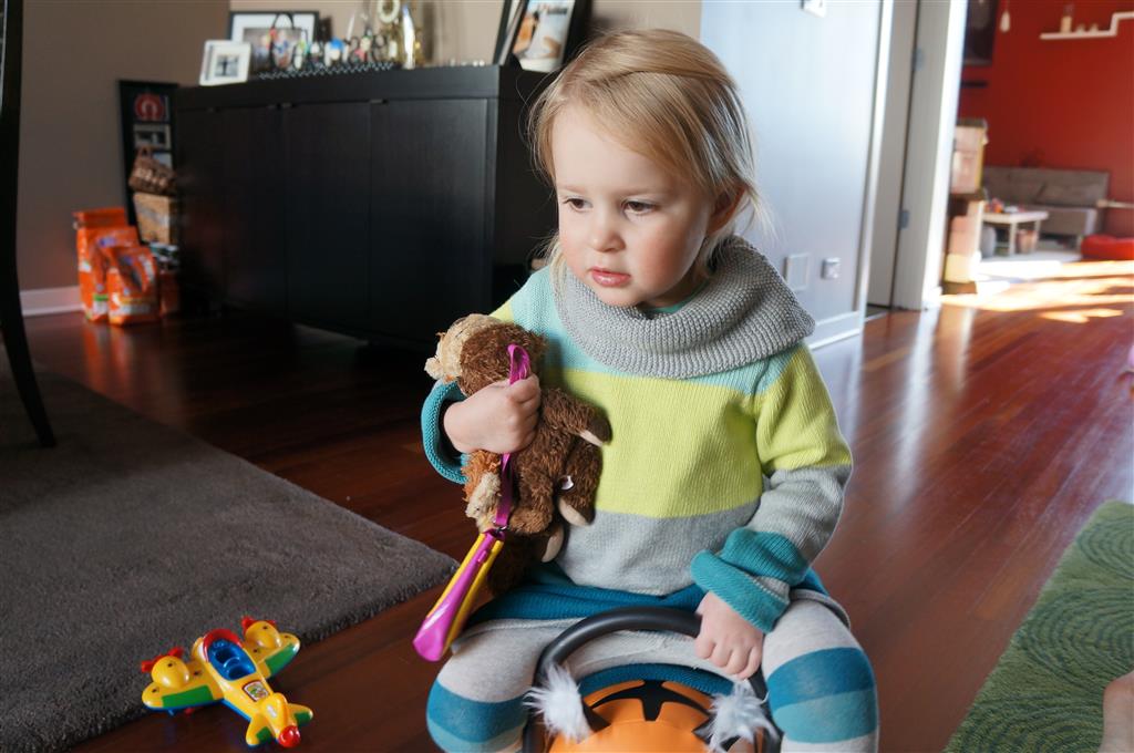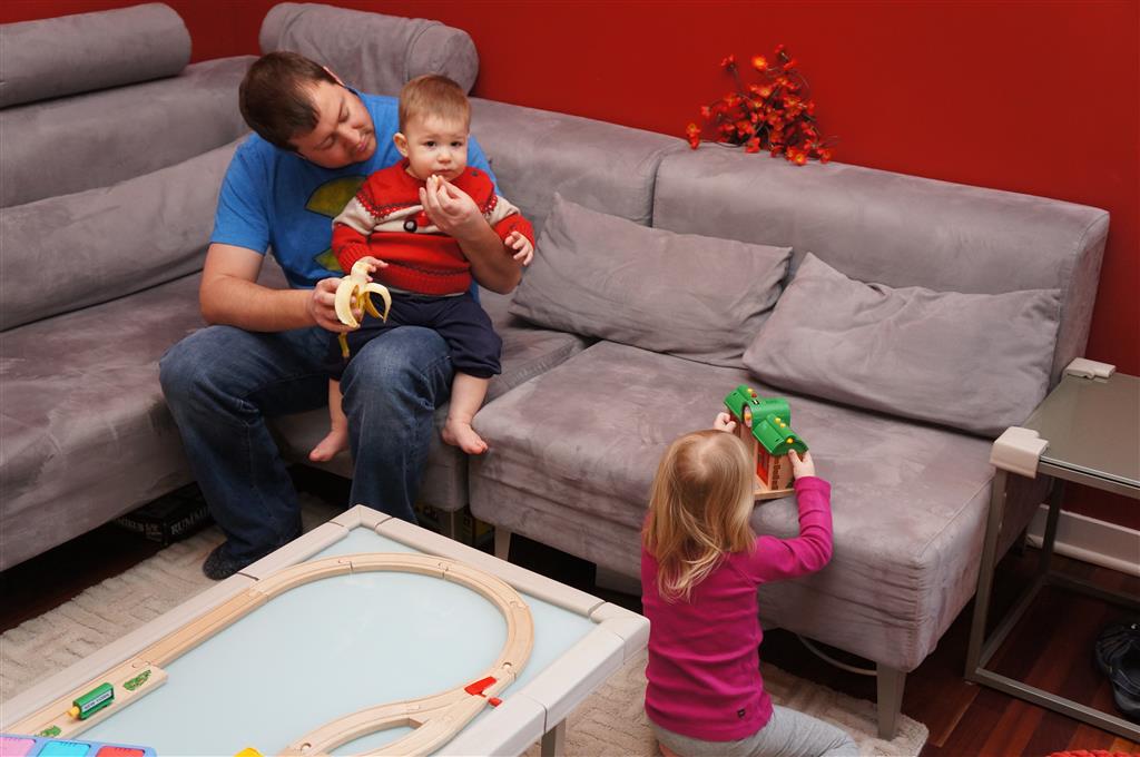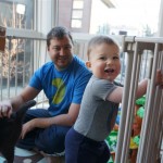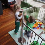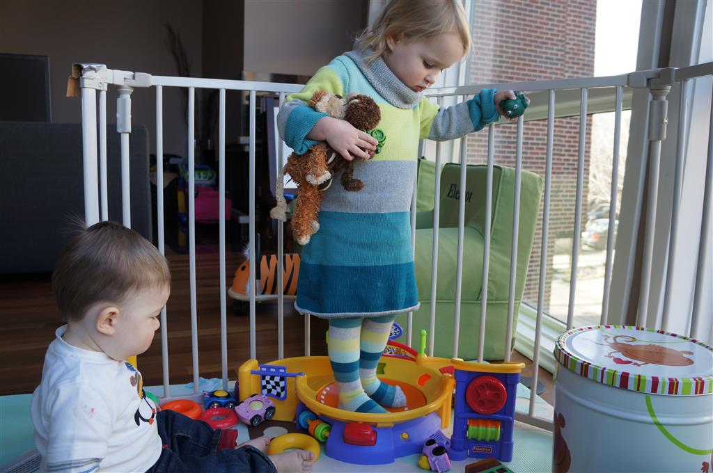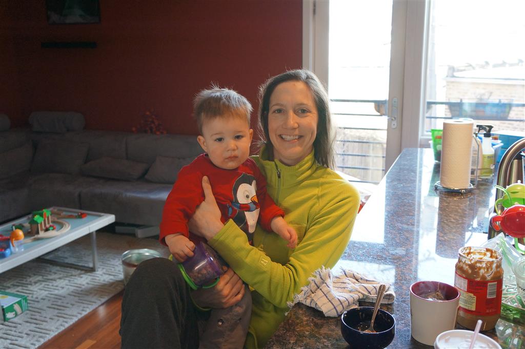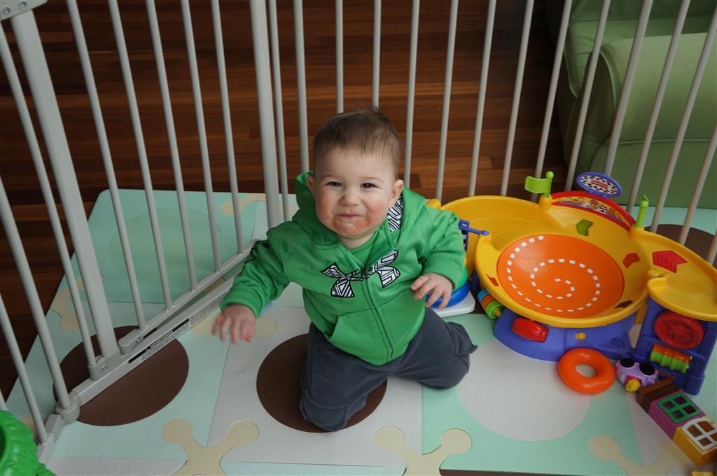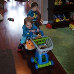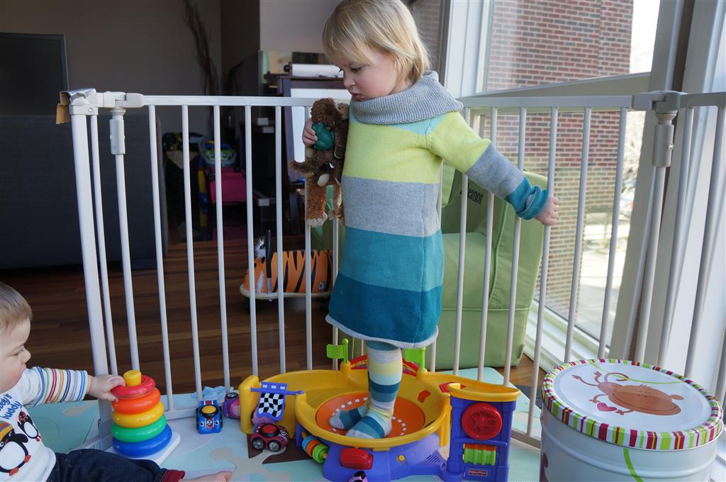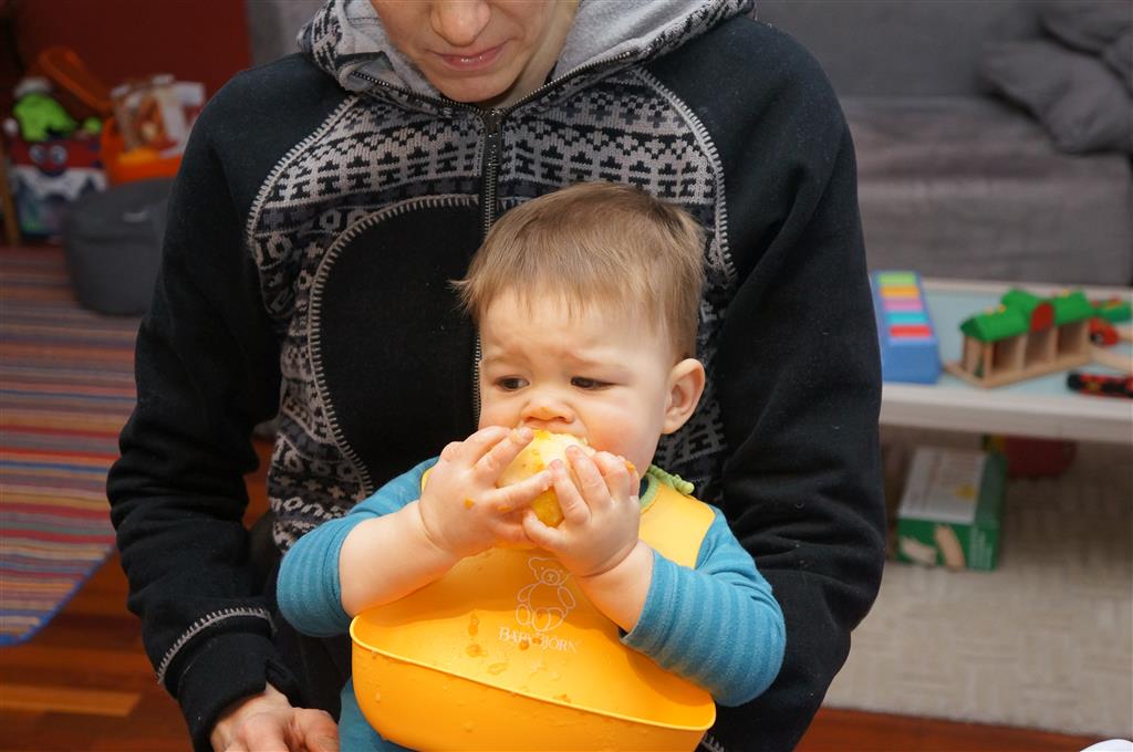 Henry has officially converted to walking. He can now stand up from a seated position without pulling up on anything, and has pretty much given up crawling. Sometimes Mom can even get him to spin in a circle and walk backwards. He can get on and off his rocking horse all by himself, and can also climb up the slide by himself, although he hasn’t quite mastered coming down. Henry is starting to enjoy standing in the kitchen tower and watching Mom and Dad make meals, he even managed to share it with Eleanor during one lunch prep. Speaking of meals, Henry ate a full pear for the first time this week, as well as peanut butter right off the spoon.