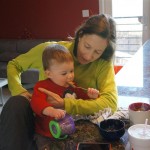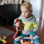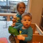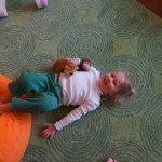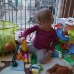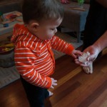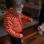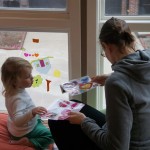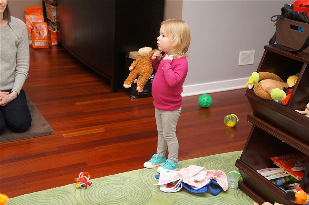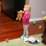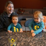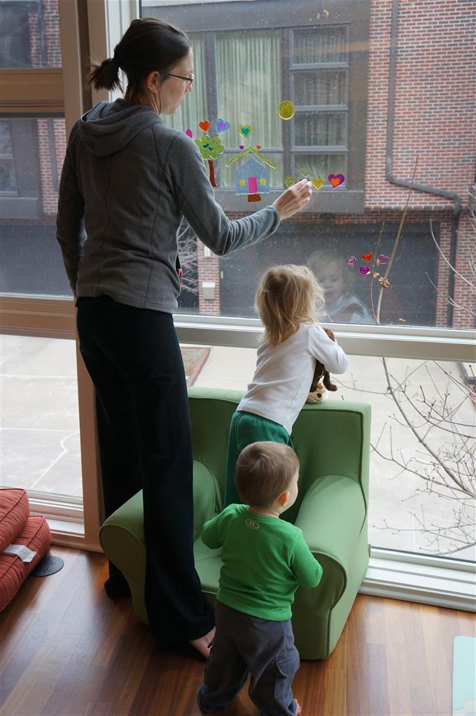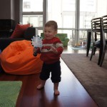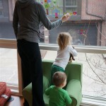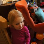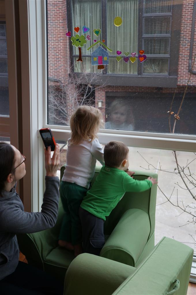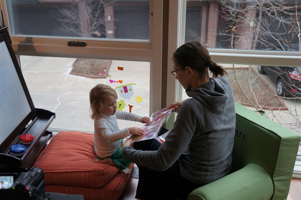 Eleanor and Henry had a week of indoor activities this week as some very cold weather rolled in. Eleanor had two more days of preschool this week – and drop off time is getting a little better. Instead of crying or screaming, she just gives Mom a sad face with a quivering lip. The teacher says she is doing great though, and says that after Mom leaves she cheers up and participates in all the class activities. At home, Eleanor has graduated from the 12 piece puzzle to the 24 piece puzzle. She hasn’t done the larger one by herself yet, but is getting close. One night at dinner, Eleanor had some sweet potato tater tots, which she was excited about but she called them “teeter totters” :) Speaking of eating, her current favorite food is peas and corn (mixed together), and she now likes to ask others what their favorite color/shape/book/etc. is (she learned this from soccer class). Eleanor also had fun doing her first Gel Jams (thanks Grandma and Grandpa!) and made a nice Valentine’s day themed montage in our front window. She also built a Lego tower all by herself, I took Henry upstairs for a nap, and when I came down she had two windows and about ten other bricks all stacked up. Eleanor has been very into singing lately, and has added “Rudolf the Red Nosed Reindeer” and “This Old Man” to her list of songs that she can sing all the way through all by herself.