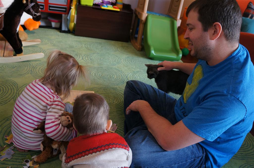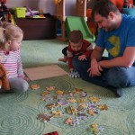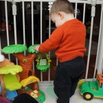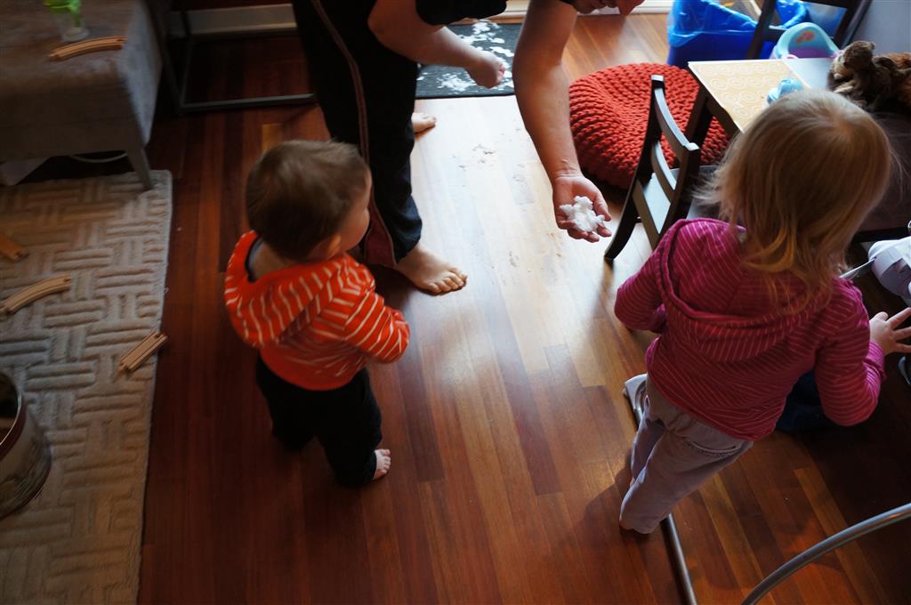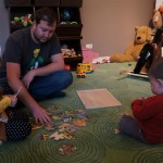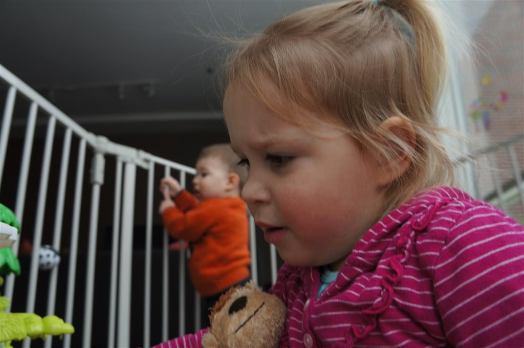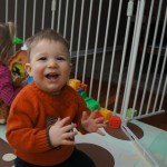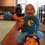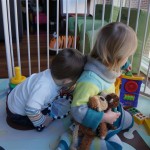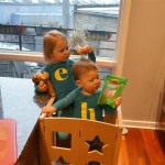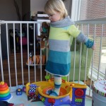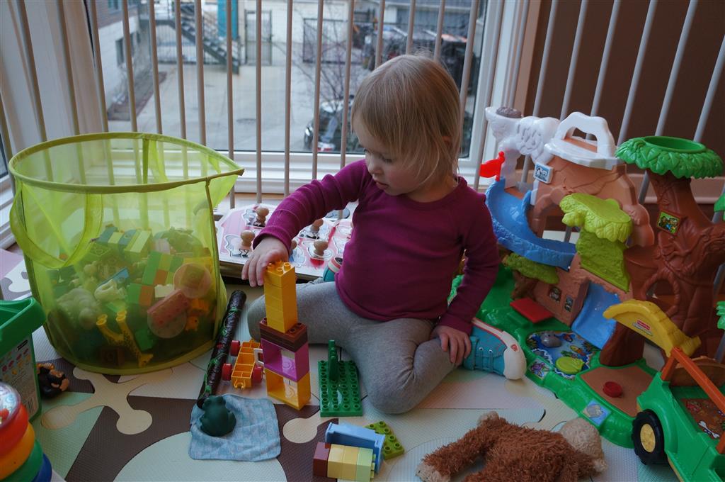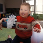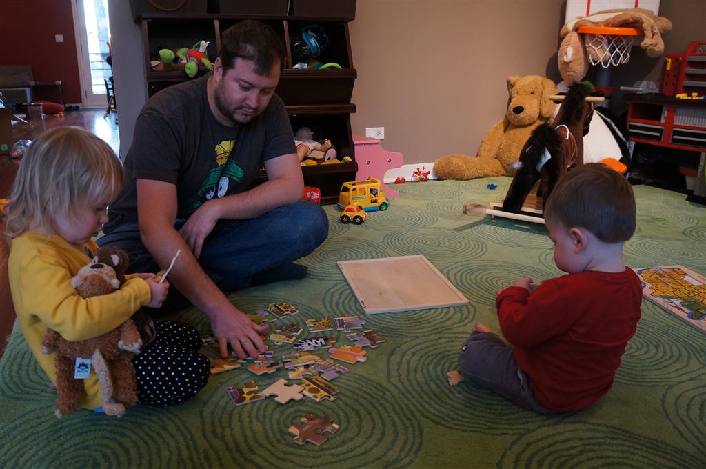 Eleanor and Henry had a week of indoor activities this week as some very cold weather rolled in. Eleanor had two more days of preschool this week – and drop off time is getting a little better. Instead of crying or screaming, she just gives Mom a sad face with a quivering lip. The teacher says she is doing great though, and says that after Mom leaves she cheers up and participates in all the class activities. At home, Eleanor has graduated from the 12 piece puzzle to the 24 piece puzzle. She hasn’t done the larger one by herself yet, but is getting close. One night at dinner, Eleanor had some sweet potato tater tots, which she was excited about but she called them “teeter totters” :) Speaking of eating, her current favorite food is peas and corn (mixed together), and she now likes to ask others what their favorite color/shape/book/etc. is (she learned this from soccer class). Eleanor also had fun doing her first Gel Jams (thanks Grandma and Grandpa!) and made a nice Valentine’s day themed montage in our front window. She also built a Lego tower all by herself, I took Henry upstairs for a nap, and when I came down she had two windows and about ten other bricks all stacked up. Eleanor has been very into singing lately, and has added “Rudolf the Red Nosed Reindeer” and “This Old Man” to her list of songs that she can sing all the way through all by herself.