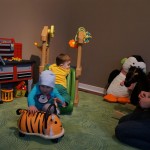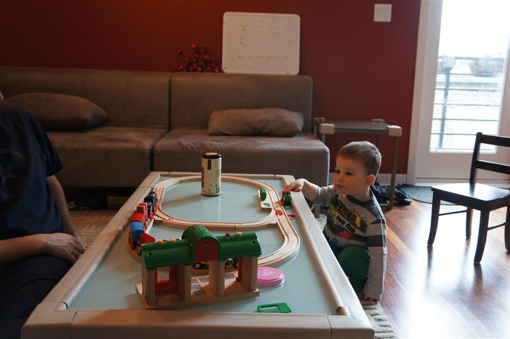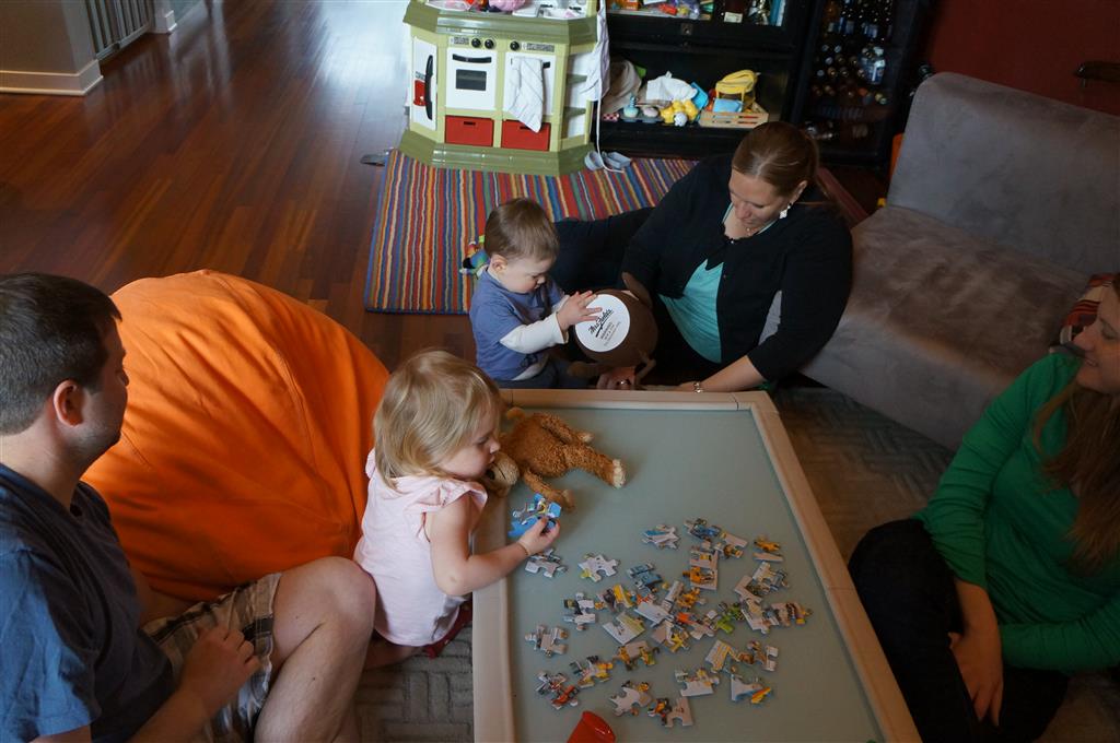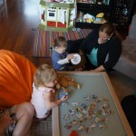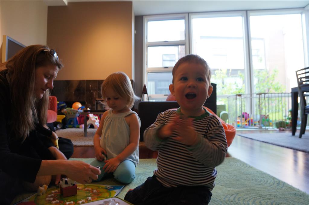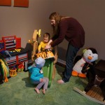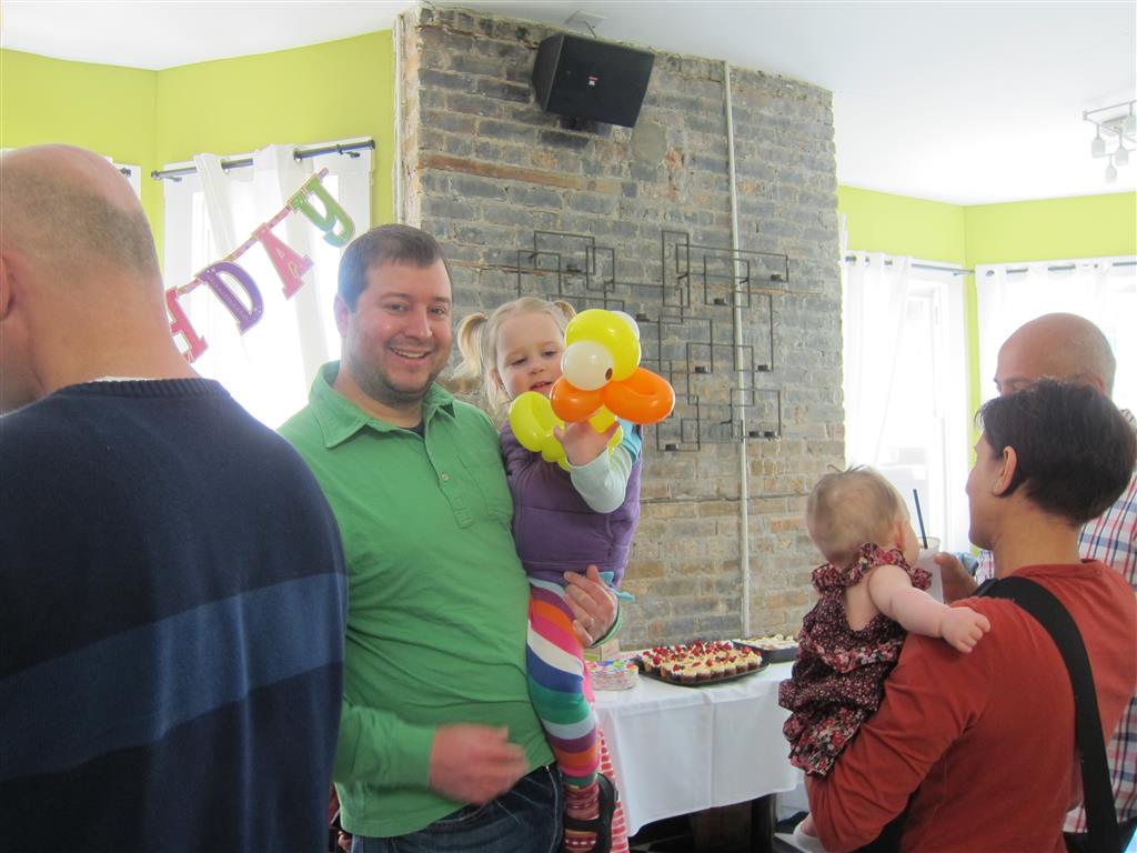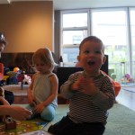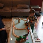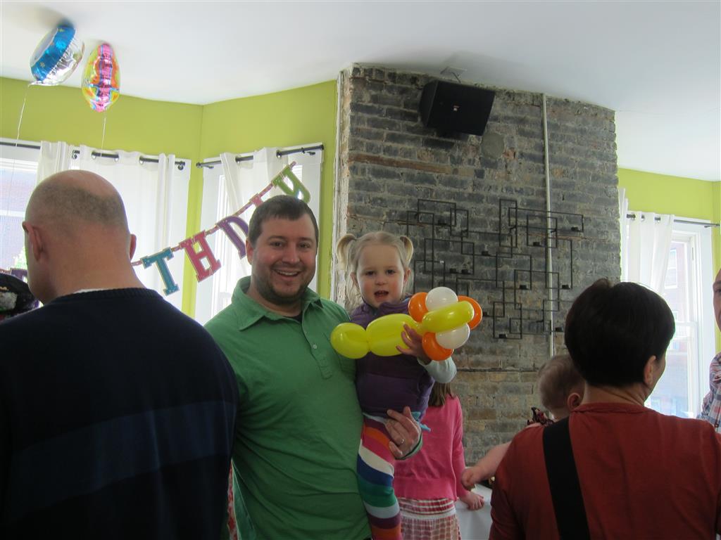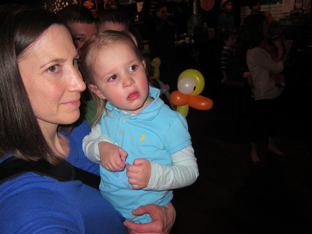 Henry has really enjoyed the trains this week – he picked out a new one at the toy store and will sit and watch them roll around the track for extended periods of time. Eleanor fell asleep in the stroller before getting to the toy store, so she didn’t get to pick. Mom picked out some puzzles for her, and it was a great selection. I showed Eleanor how the box recommended “Ages 4+”, but with a little help here and there she was able to put it together. She even made up a birthday for Elmo so that “She is four now and can help us with the puzzle”. Ha! We finished the week with a birthday party for some friends, where both kids loved the balloon animal maker (Eleanor got a duck) and then a little concert. Poor Henry was very tired by the time the music started, but he didn’t want to leave and just stared at the stage.