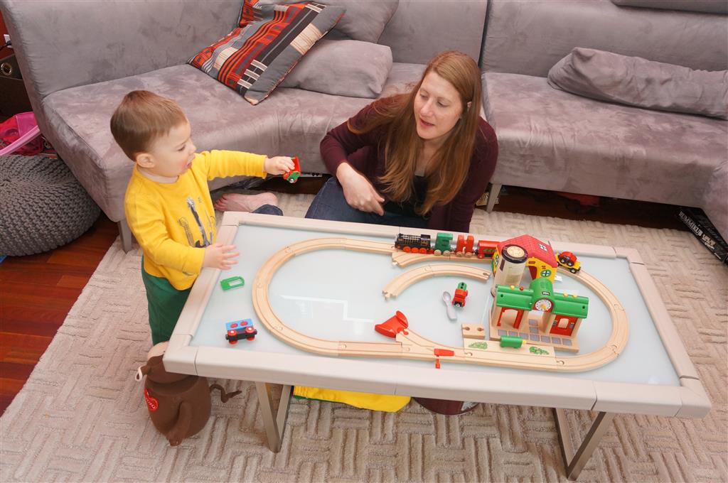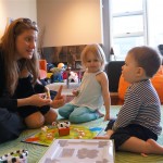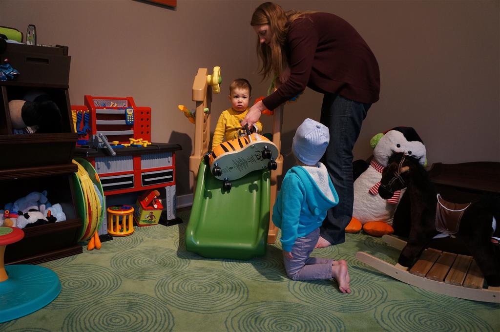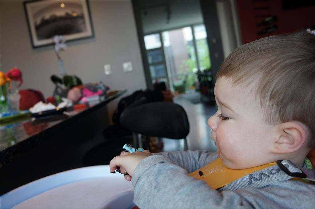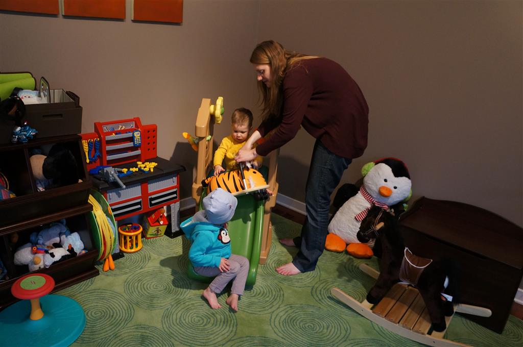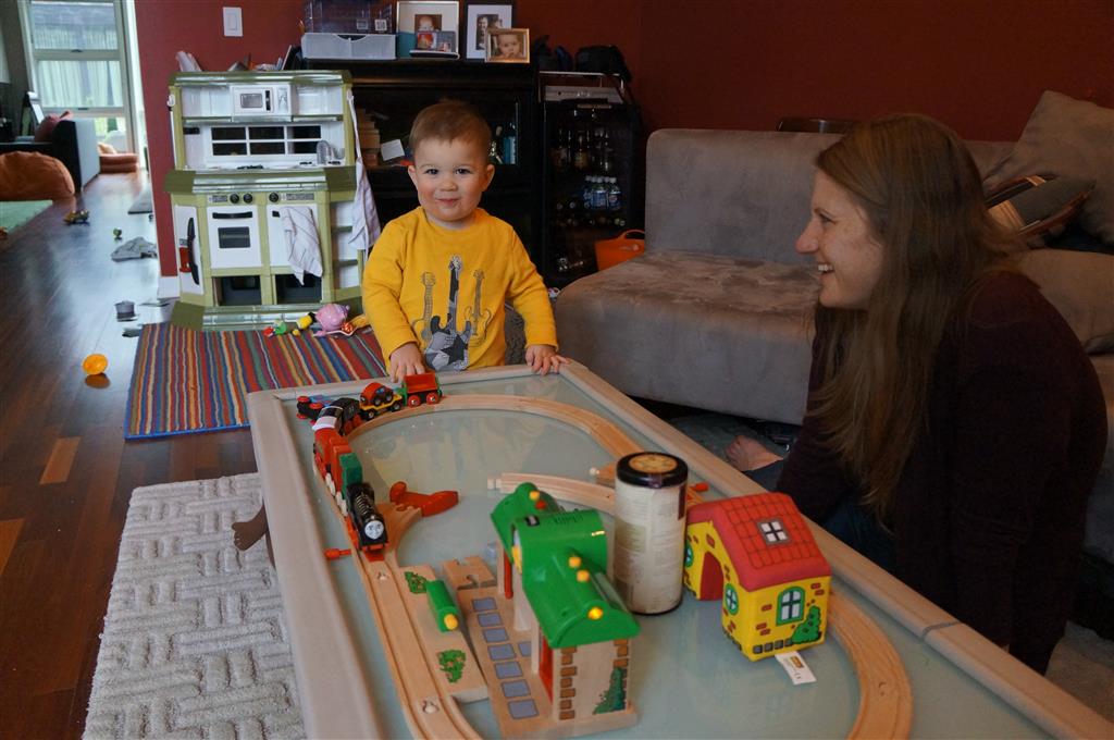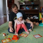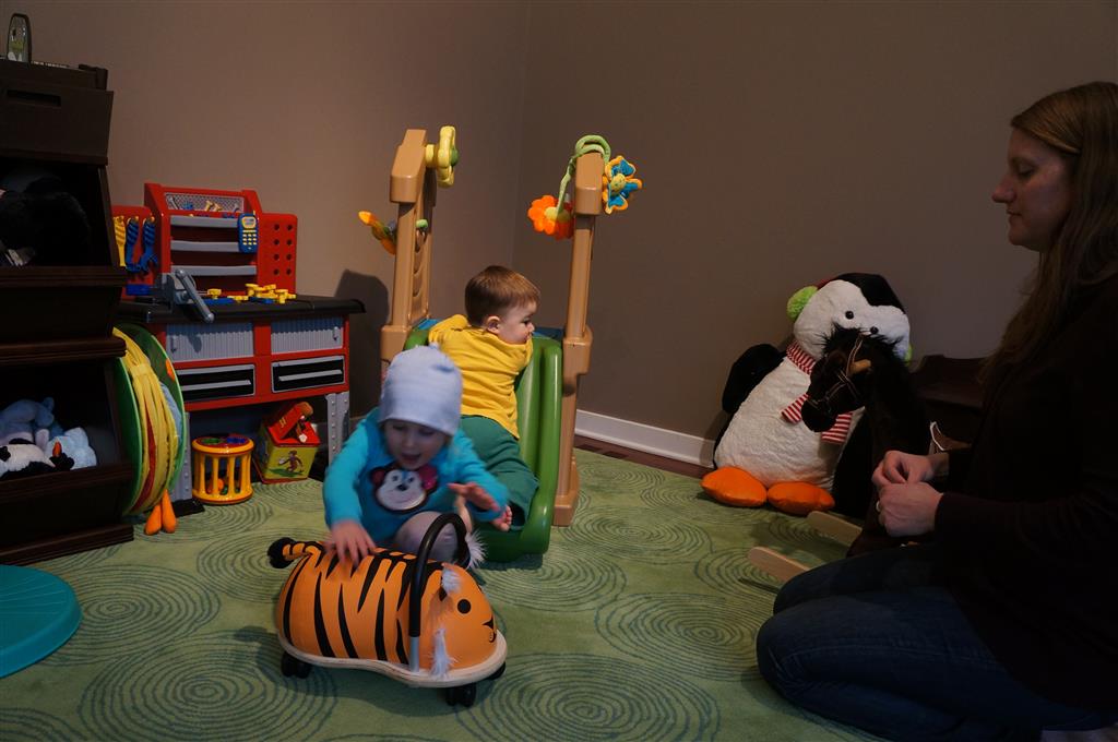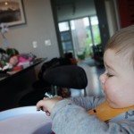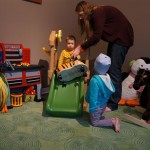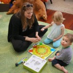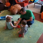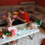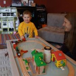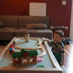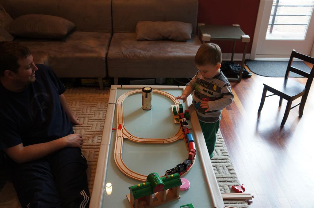 Henry has really enjoyed the trains this week – he picked out a new one at the toy store and will sit and watch them roll around the track for extended periods of time. Eleanor fell asleep in the stroller before getting to the toy store, so she didn’t get to pick. Mom picked out some puzzles for her, and it was a great selection. I showed Eleanor how the box recommended “Ages 4+”, but with a little help here and there she was able to put it together. She even made up a birthday for Elmo so that “She is four now and can help us with the puzzle”. Ha! We finished the week with a birthday party for some friends, where both kids loved the balloon animal maker (Eleanor got a duck) and then a little concert. Poor Henry was very tired by the time the music started, but he didn’t want to leave and just stared at the stage.