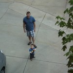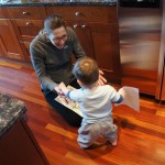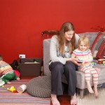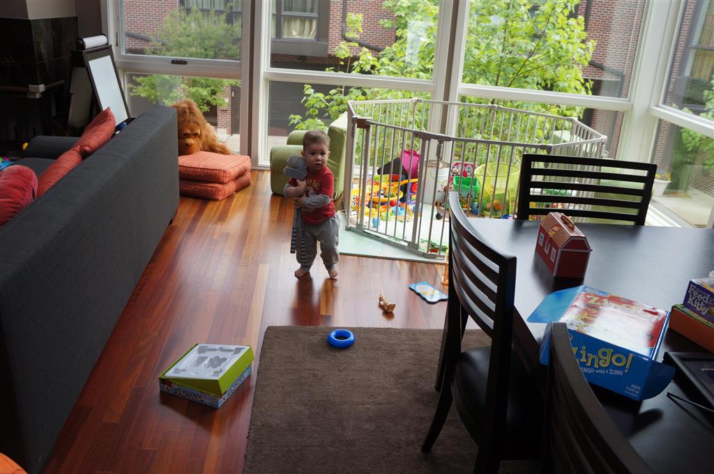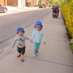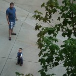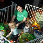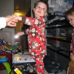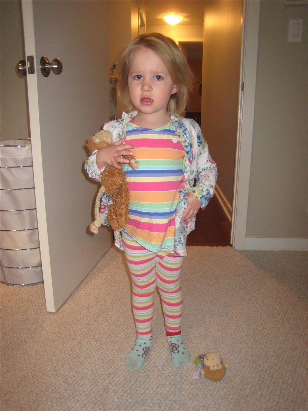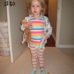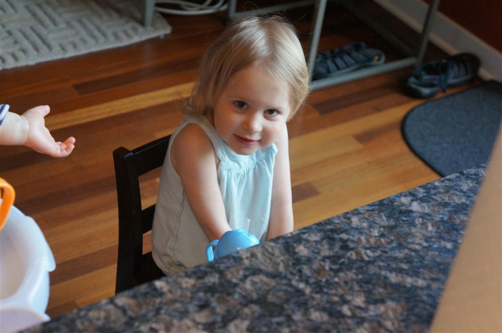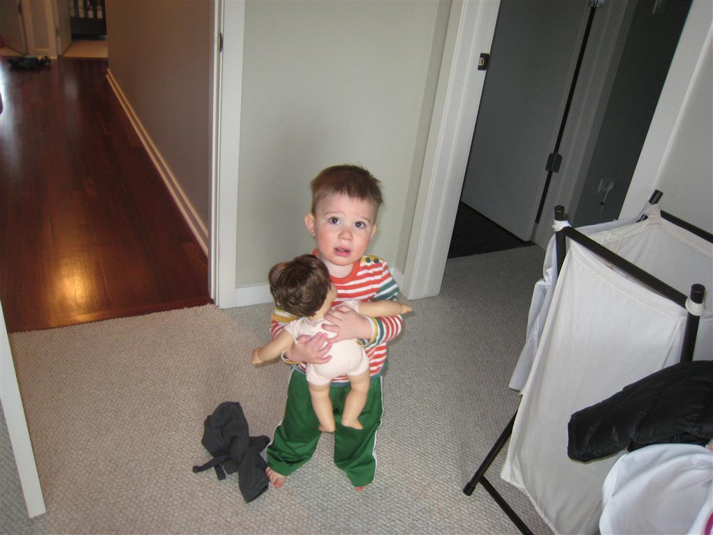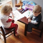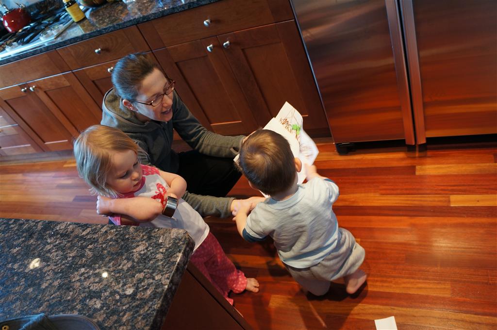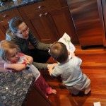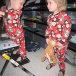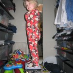 The first series of photos this week requires a bit of an explanation. Eleanor is fascinated by burned out light bulbs, and loves to point them out and ask for Dada to fix them. Well, this turned into a bit of a game where I put her or one of her dolls on my shoulders and ask if they are now tall enough to change the light. So, while I was getting new bulb for the closet, Eleanor climbed the stool with Monkey on her shoulders – and then of course Henry wanted to get in on the fun.