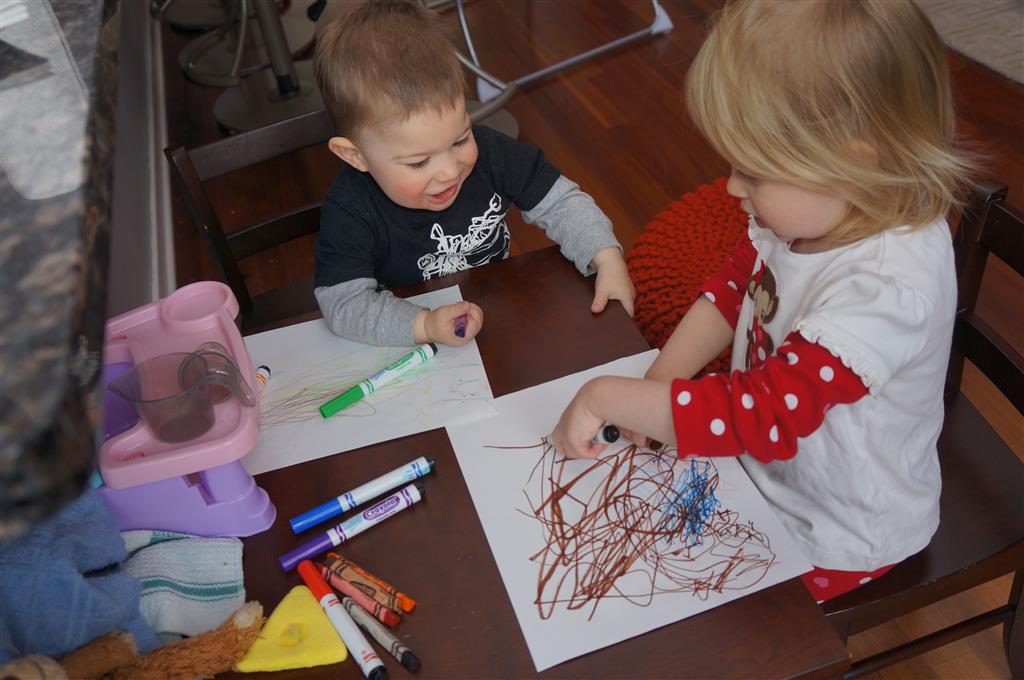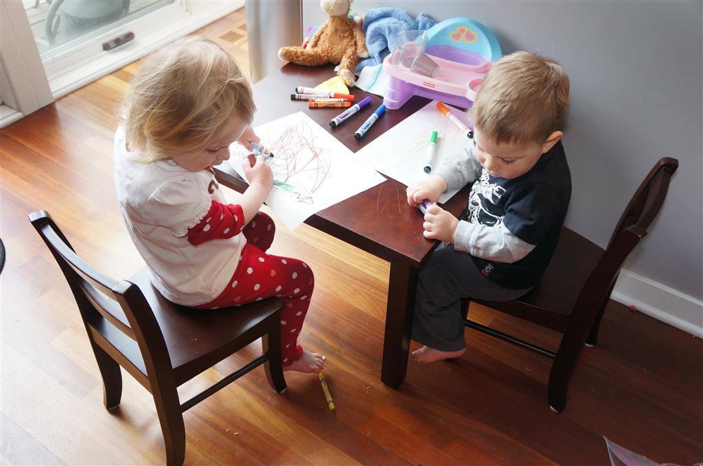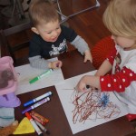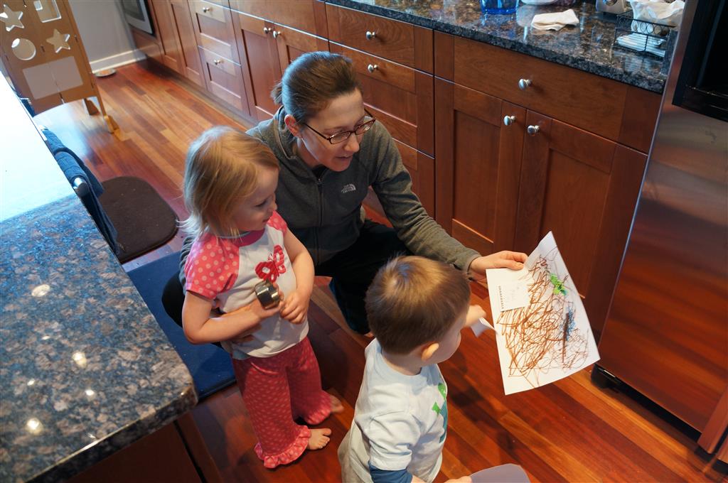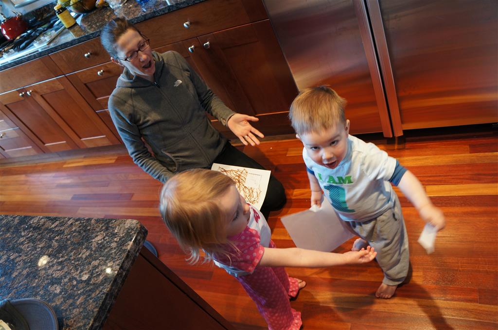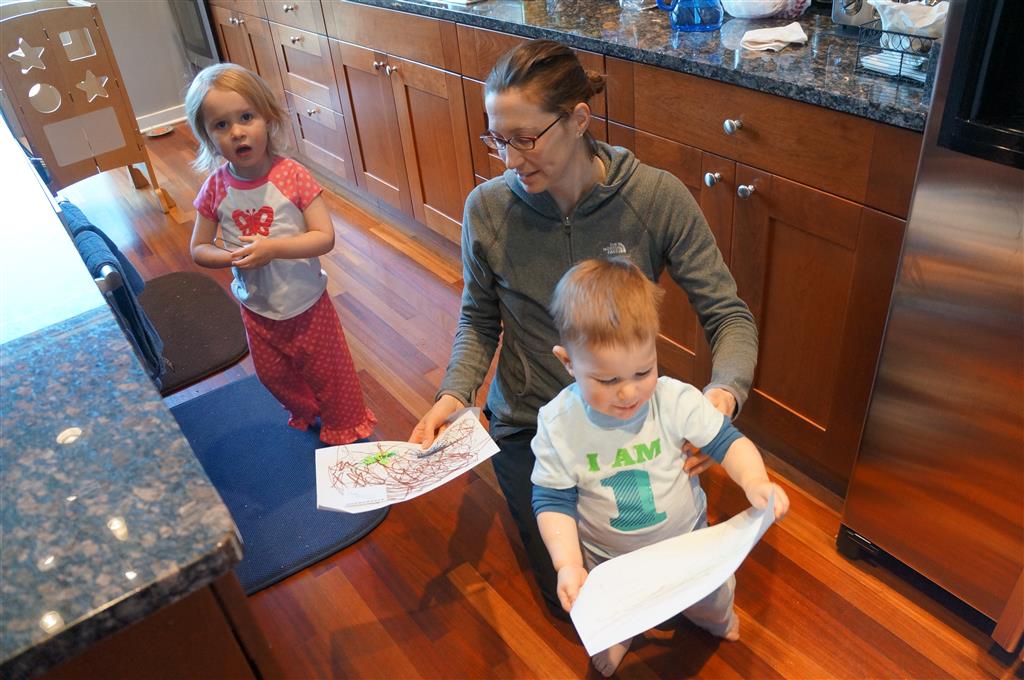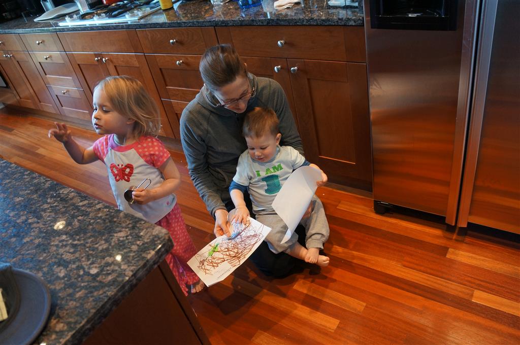 Eleanor and Henry wished Mamma a Happy Mother’s Day this week with some special drawings. Henry’s was a masterpiece via the one hand multiple crayon technique. Eleanor made “A Zoo and an Aquarium”. They were each very proud to carry them over and give them to Mom this morning.