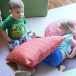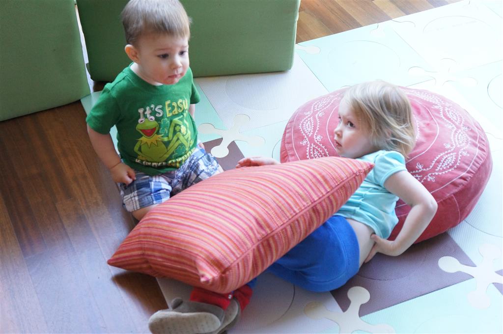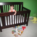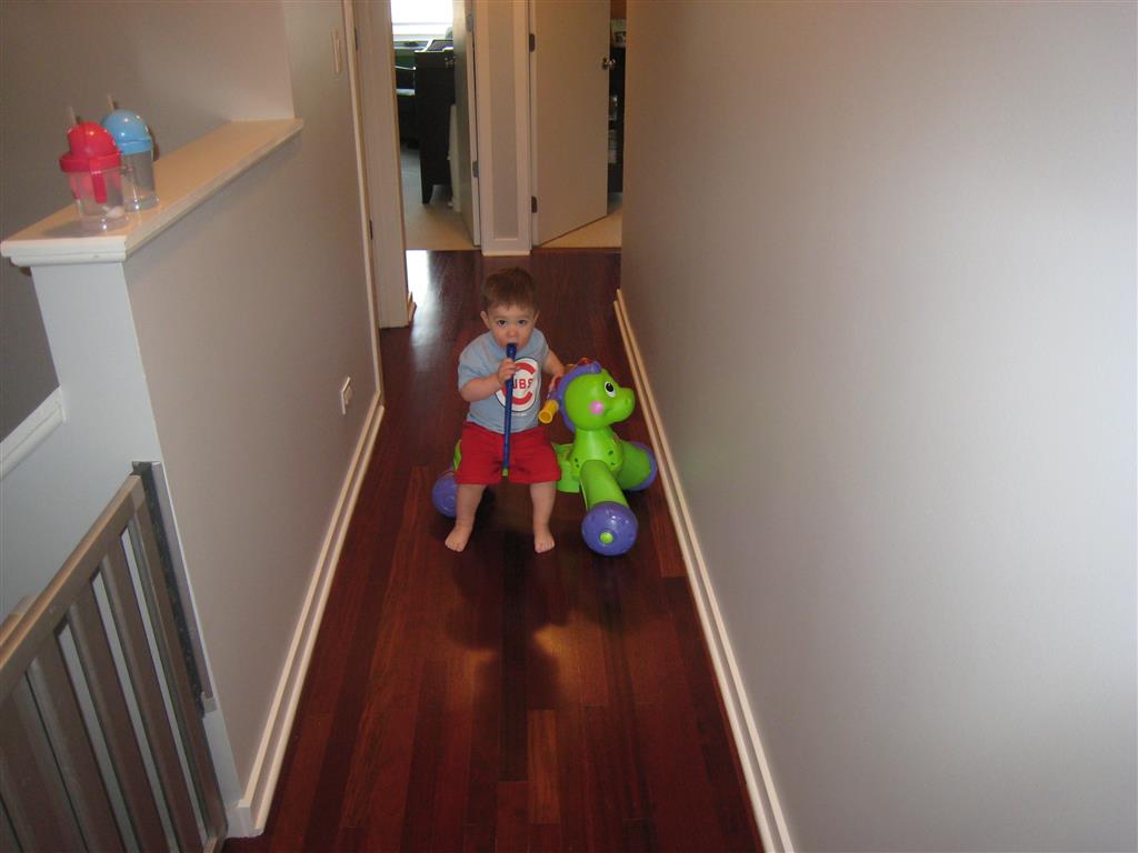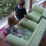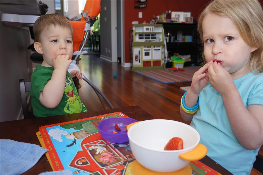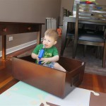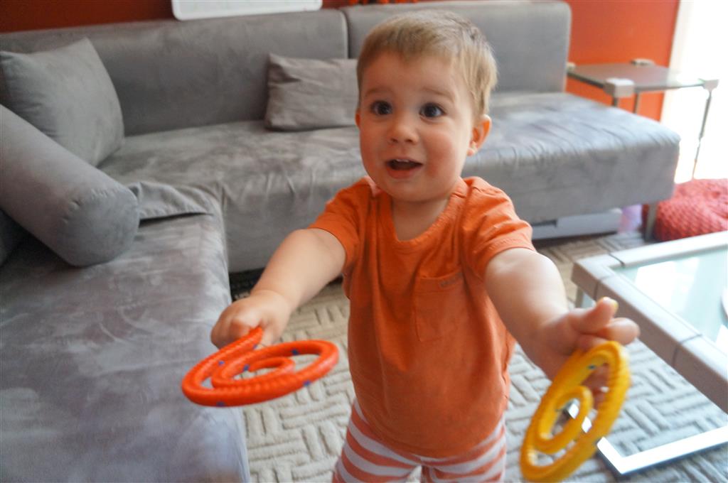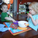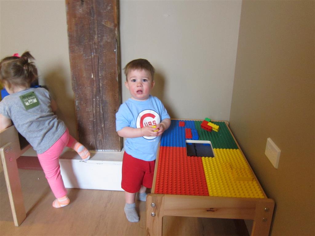 Henry continues to make new sounds and add more “first syllable” words to his vocabulary. He has sounds for puppet, water and button, and banana is starting to separate itself from the generic “apple” that he uses for most fruits. He successfully pointed out Mimi on the fridge magnets – typically he only gets Papa and Grandpa. His favorite activity is whatever Eleanor is doing, even if that means sitting on the potty. For firsts, he ate his first full meal at the table with Eleanor instead of in his high chair, but I think he isn’t quite ready to do that with every meal.