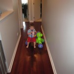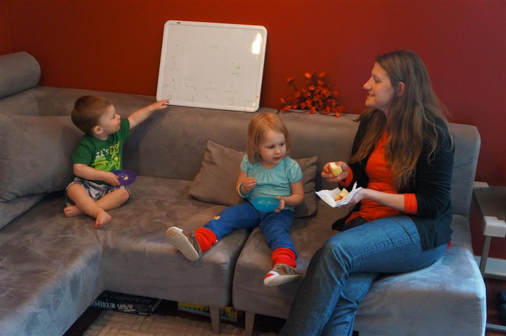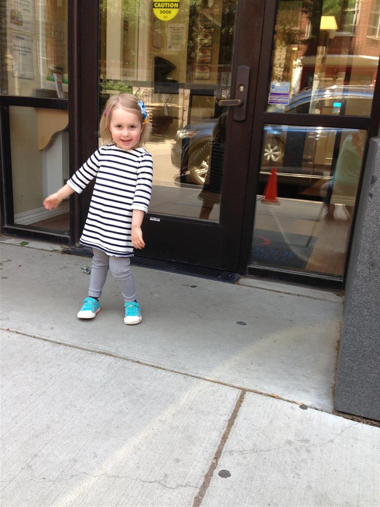Eleanor had a great week at preschool, and is starting to tell us a few more stories about what she does there. She was particularly happy Friday when Mom and Henry came to pick her up, and did a little dance at the front door.