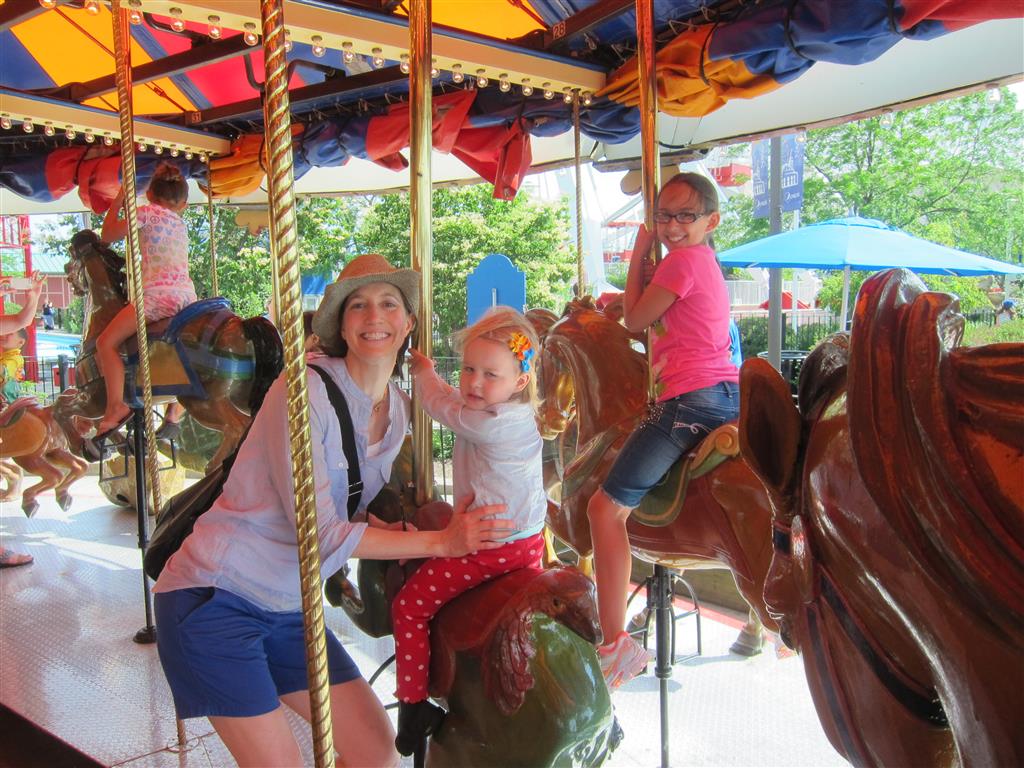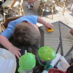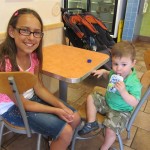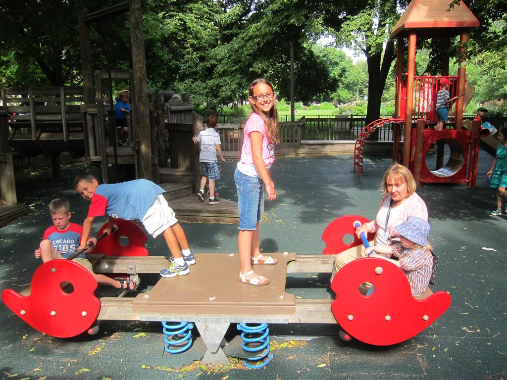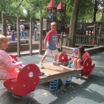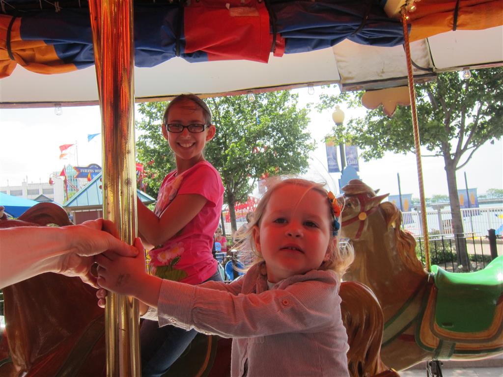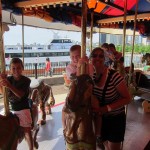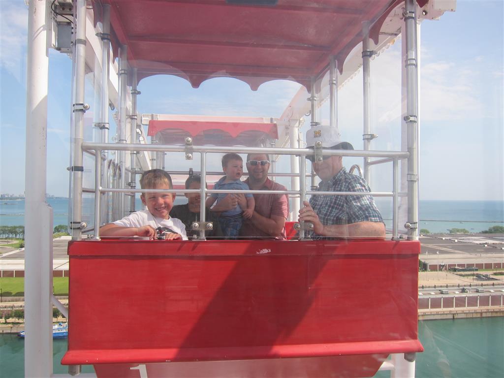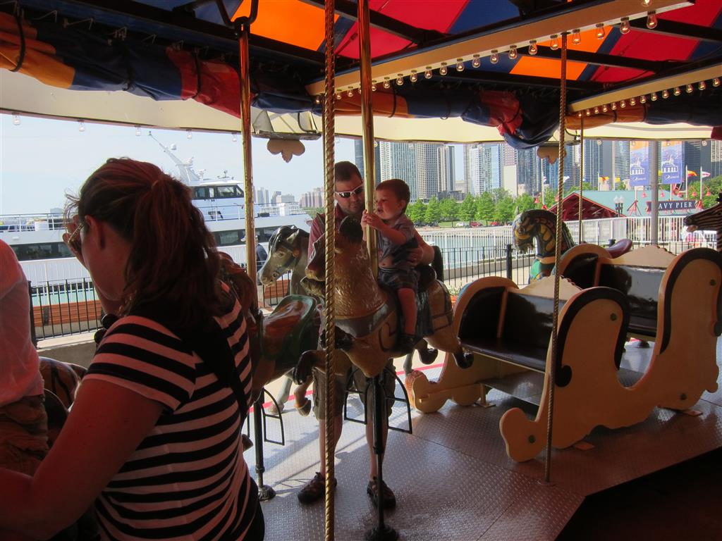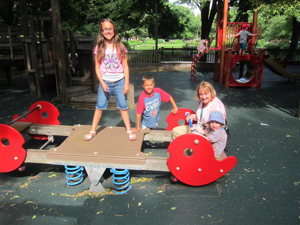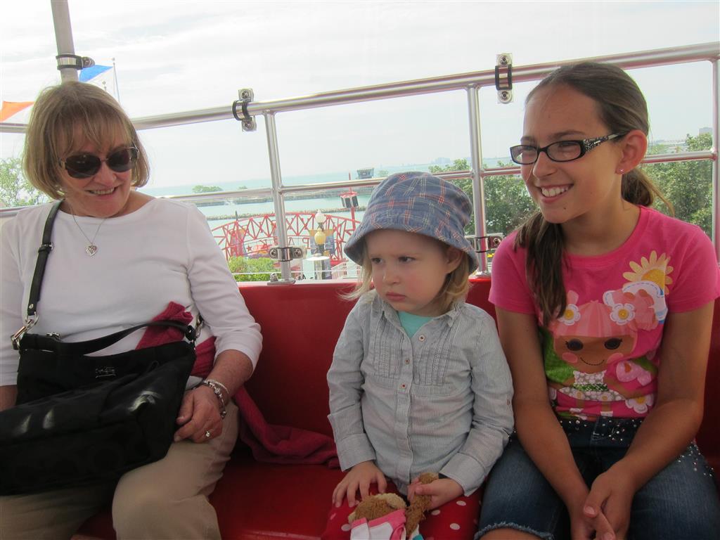 Eleanor and Henry had a great week with their cousins Mackenzie, Jack and Ben visiting, plus Grandpa and Grandma and Auntie Susan. Eleanor had a blast going to American Girl for tea, and “the boys” stayed home and hit the park and Potbellys. Eleanor took both Monkey and her doll Gray to tea, but Monkey got all the attention, and when it was time to pick out a purchase from the store, it was Monkey who got a new bathing suit and a guitar. Henry especially loved riding the tire swing with Jack and Ben, We also got to go down to Navy Pier and ride the Ferris Wheel, which was a big hit. The first two times that I put Henry down after the ride he ran right back to the entrance and grunted that he wanted to ride again. Henry and Ben got to ride the “Thomas the Train” ride too, but in the surprise of the weekend Eleanor said she didn’t want to ride. I think she had overdosed on fun at that point – right after that we stopped for lunch and she just put her head down on the table to rest.