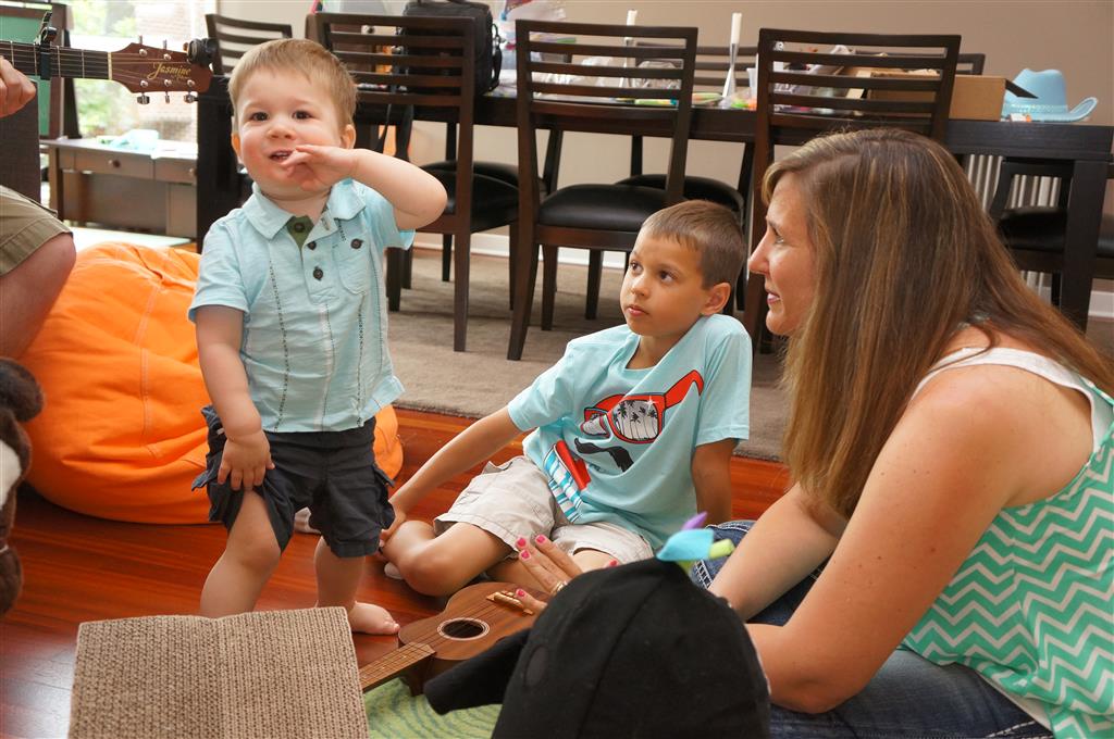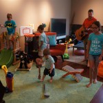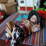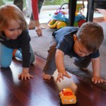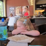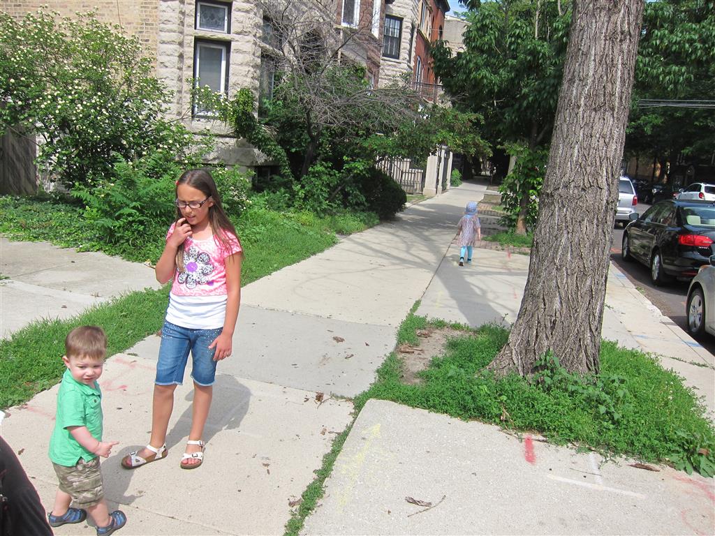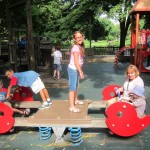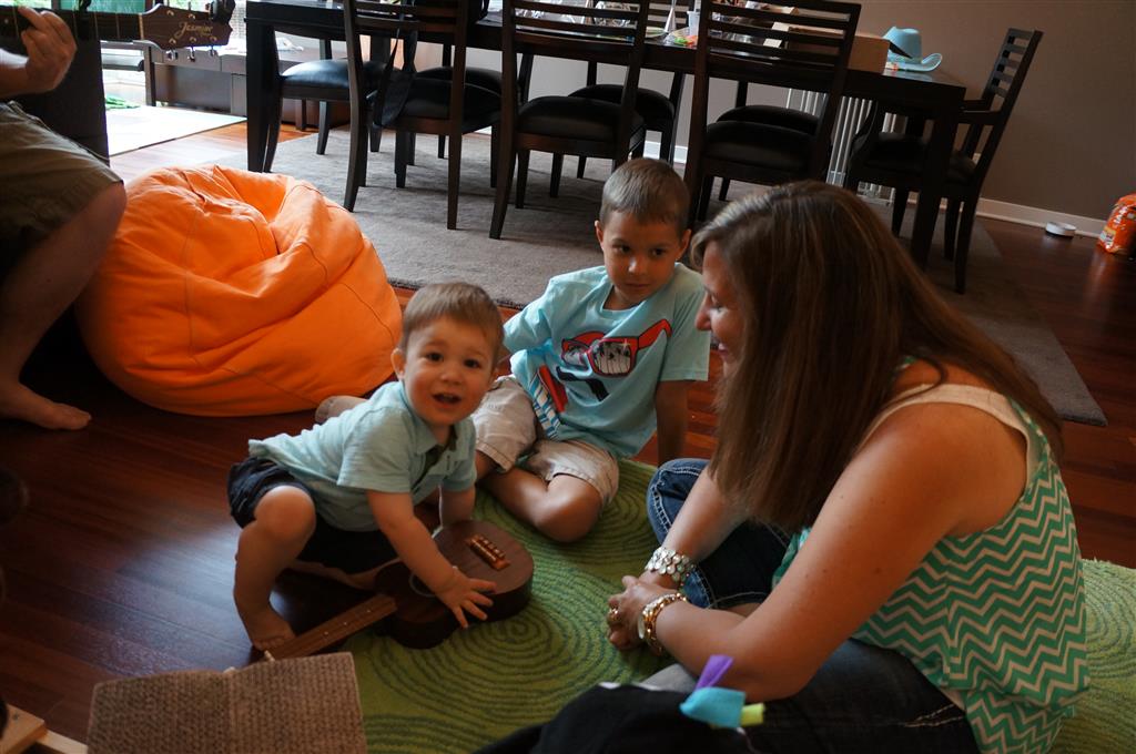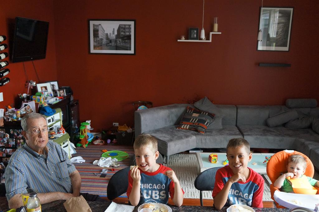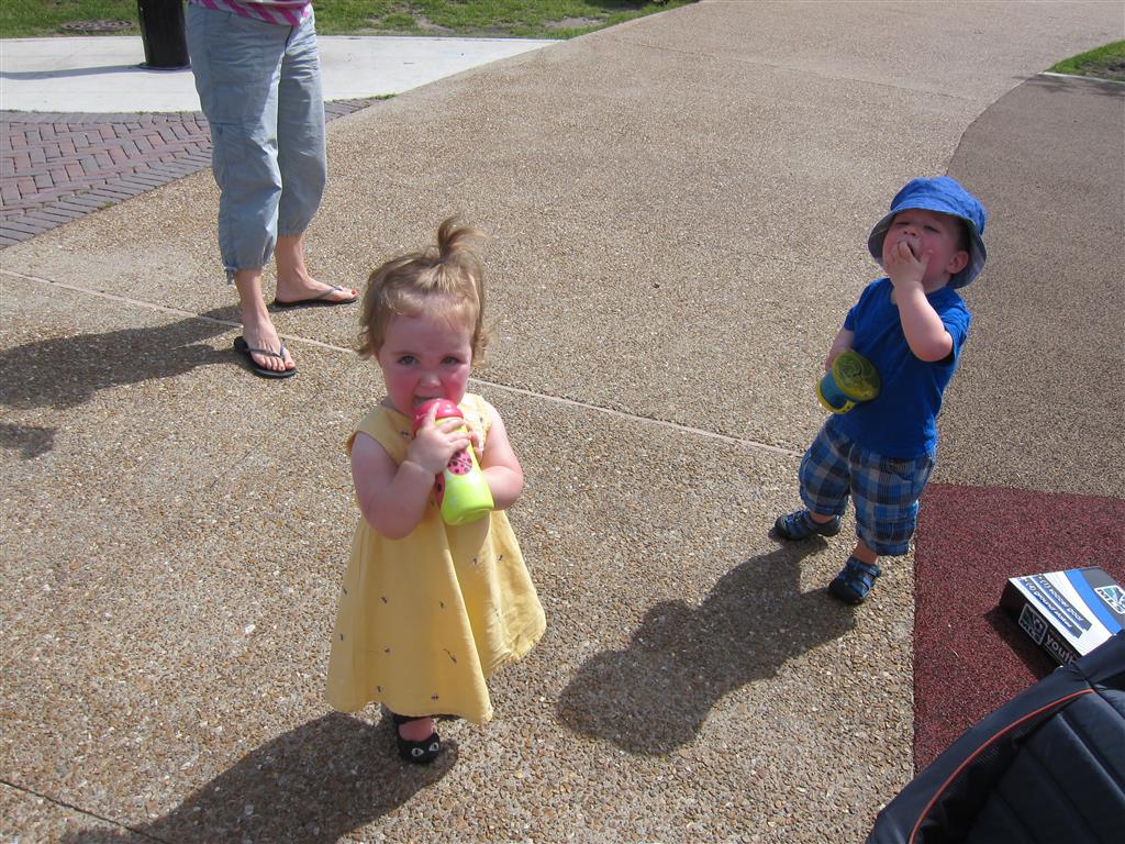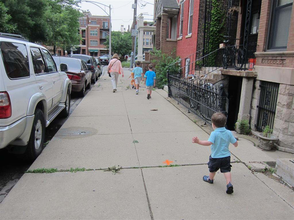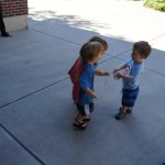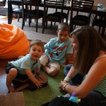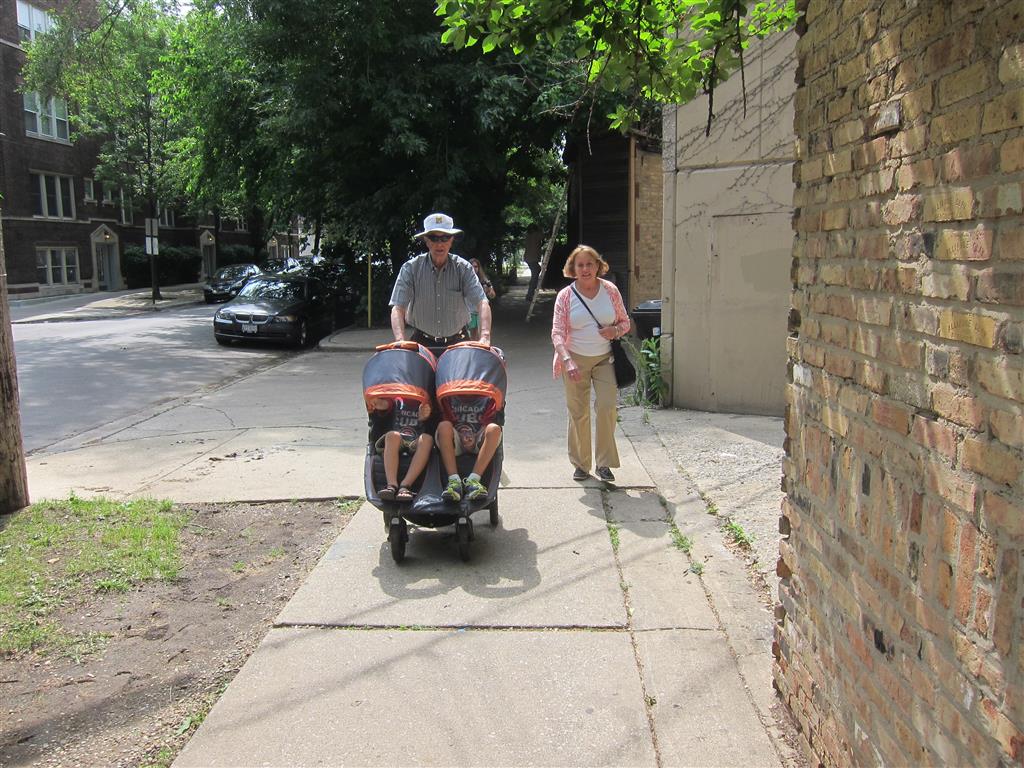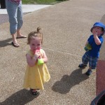 Eleanor and Henry had a great week with their cousins Mackenzie, Jack and Ben visiting, plus Grandpa and Grandma and Auntie Susan. Eleanor had a blast going to American Girl for tea, and “the boys” stayed home and hit the park and Potbellys. Eleanor took both Monkey and her doll Gray to tea, but Monkey got all the attention, and when it was time to pick out a purchase from the store, it was Monkey who got a new bathing suit and a guitar. Henry especially loved riding the tire swing with Jack and Ben, We also got to go down to Navy Pier and ride the Ferris Wheel, which was a big hit. The first two times that I put Henry down after the ride he ran right back to the entrance and grunted that he wanted to ride again. Henry and Ben got to ride the “Thomas the Train” ride too, but in the surprise of the weekend Eleanor said she didn’t want to ride. I think she had overdosed on fun at that point – right after that we stopped for lunch and she just put her head down on the table to rest.