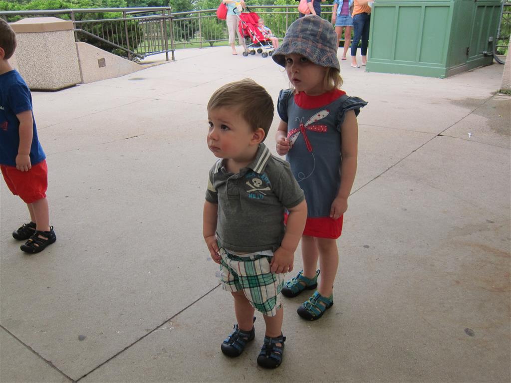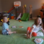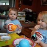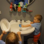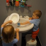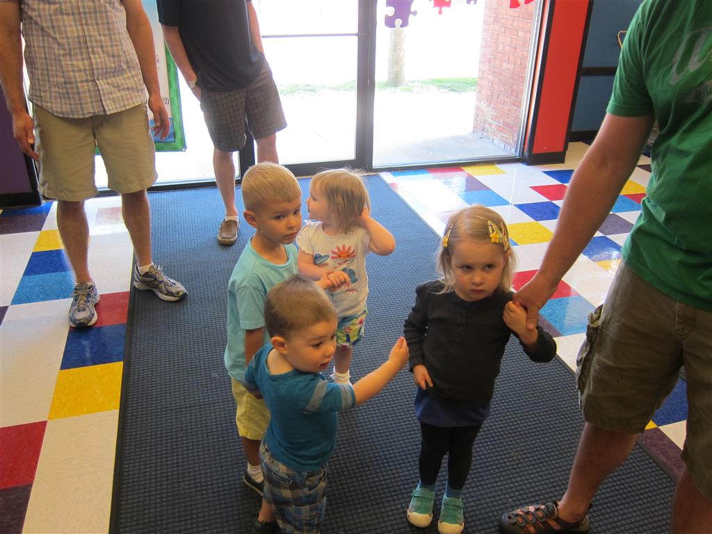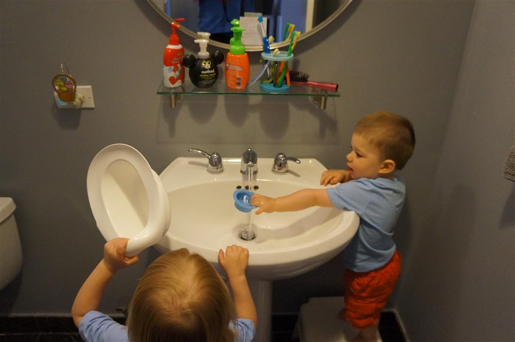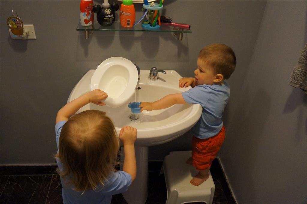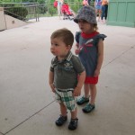 We started the week with a trip to the zoo, where Henry rode the zoo train for the first time without Mom or Dad. Then he and Grayson bonded holding hands while riding in the double stroller. We finished the week with Grayson as well, celebrating his birthday at the always fun “Pump It Up”. Henry is very in to whatever Eleanor is doing these, and Eleanor loves to pick out matching clothes for them to wear. Mom caught a great scene with Henry washing out the doll potty and Eleanor washing out the real one. Monkey see, monkey do!