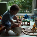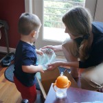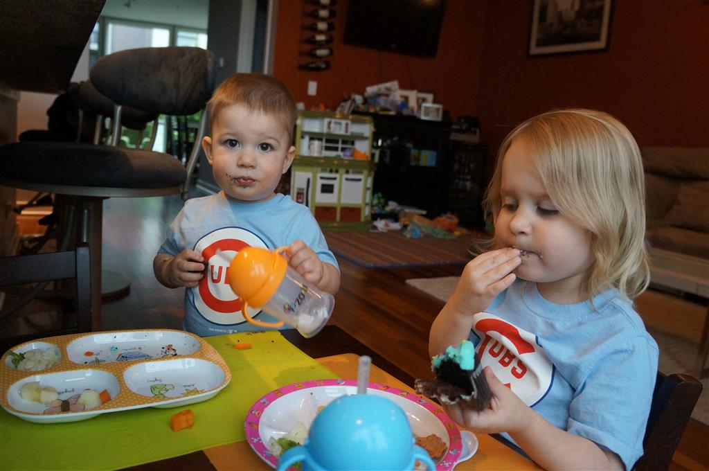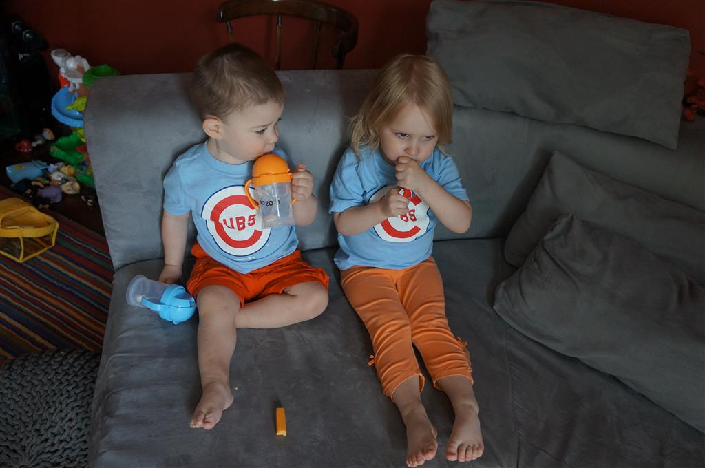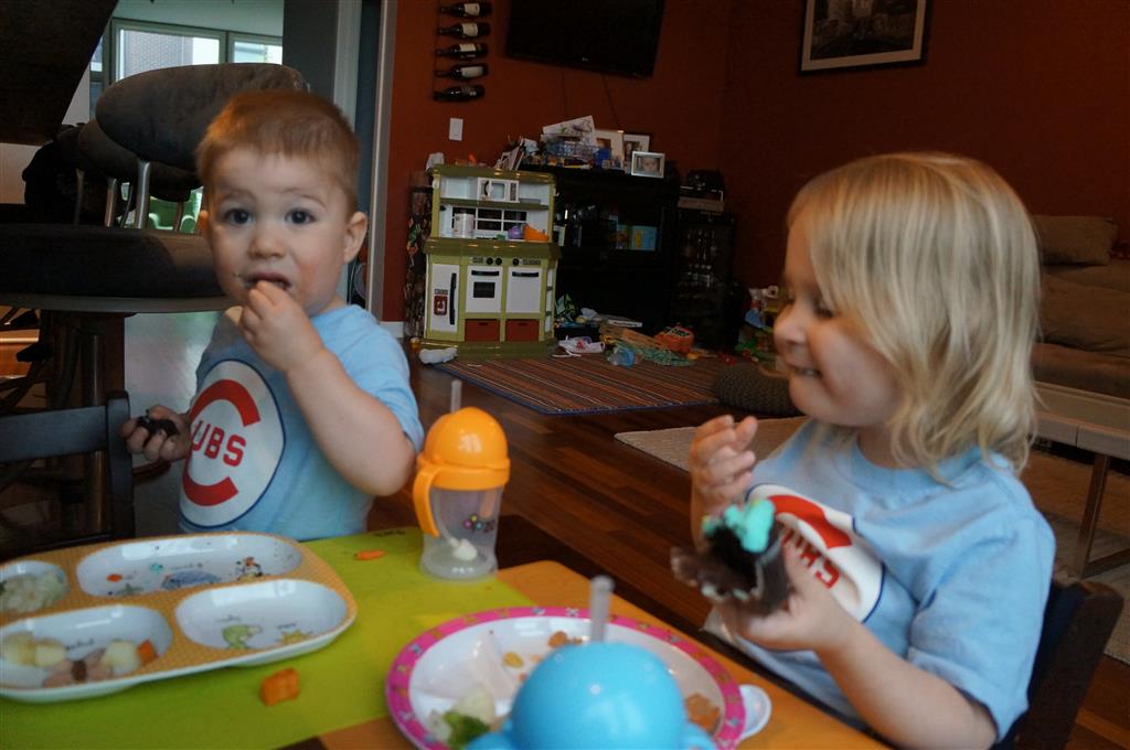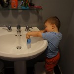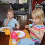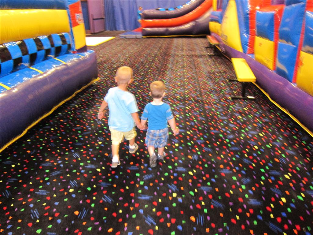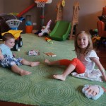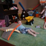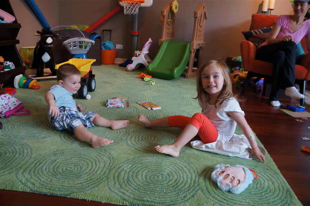 We started the week with a trip to the zoo, where Henry rode the zoo train for the first time without Mom or Dad. Then he and Grayson bonded holding hands while riding in the double stroller. We finished the week with Grayson as well, celebrating his birthday at the always fun “Pump It Up”. Henry is very in to whatever Eleanor is doing these, and Eleanor loves to pick out matching clothes for them to wear. Mom caught a great scene with Henry washing out the doll potty and Eleanor washing out the real one. Monkey see, monkey do!