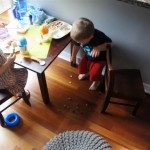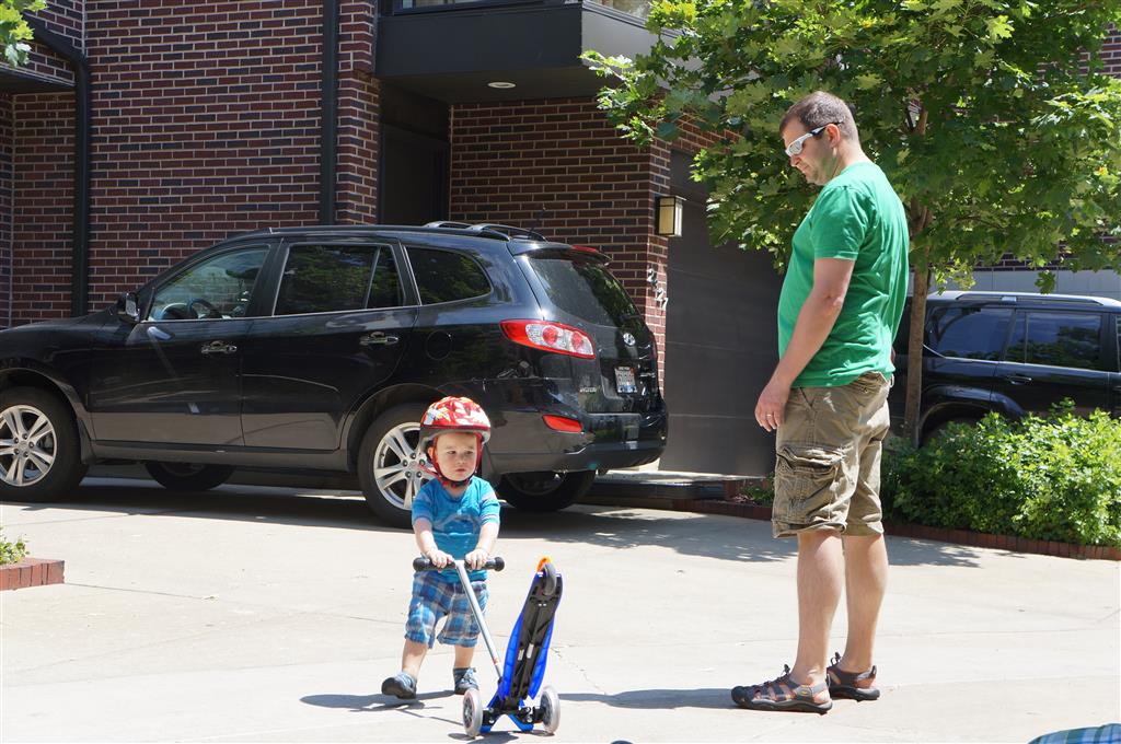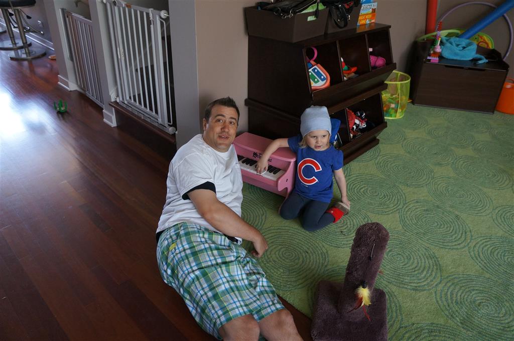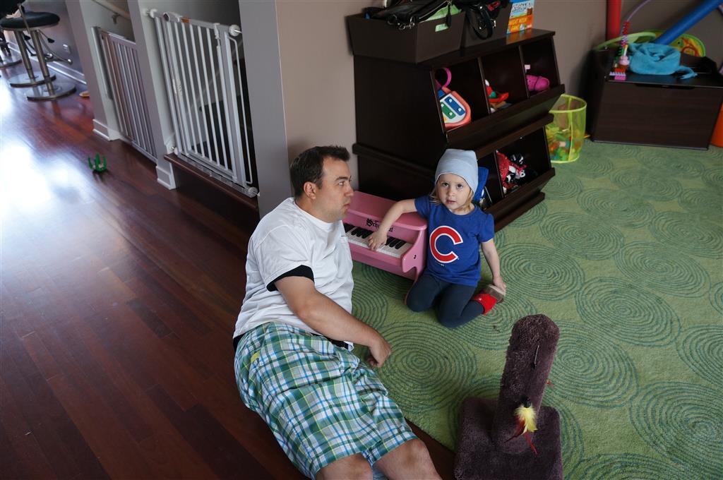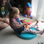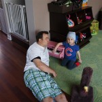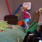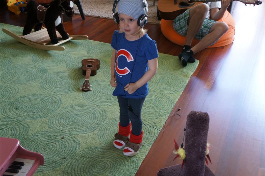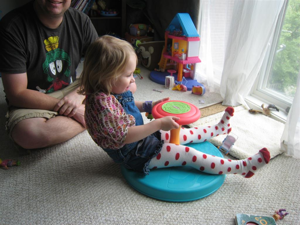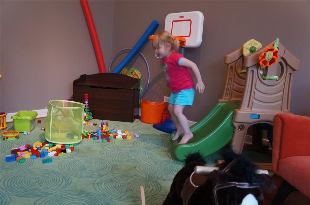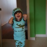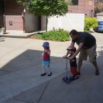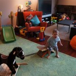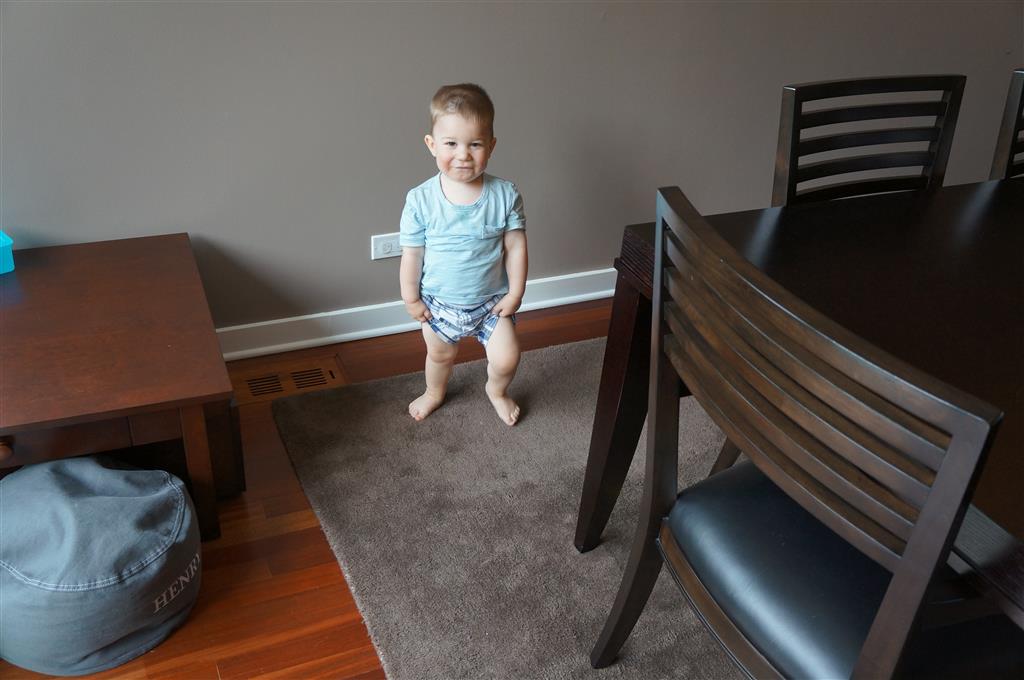 Eleanor surprised us all on Saturday by jumping off the end of her slide – it took a few attempts but Mom captured her mid-air. It was a legit both feet at the same time jump, so we can finally cross that off our checklist. Sometimes she even sticks the landing! Henry has also been working on his slide skills, and has mastered climbing up the slide – he was quite proud of himself for that maneuver. WE finished up the week with a fun visit from Uncle B – and Eleanor got to show off her inner rocker. All she needed was a turntable in front of her and she would have been a fully decked out DJ.