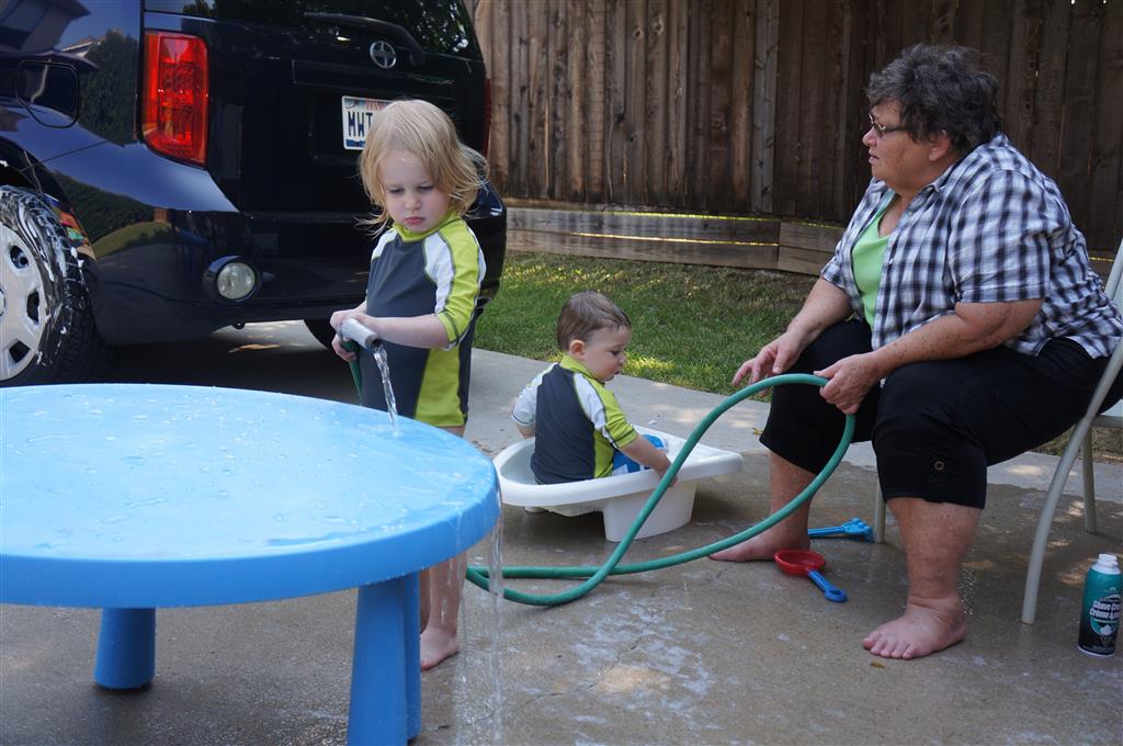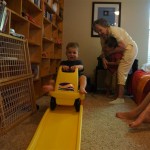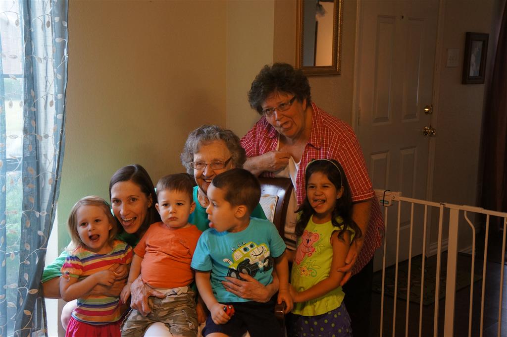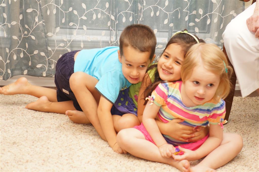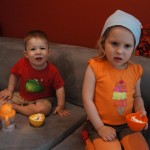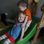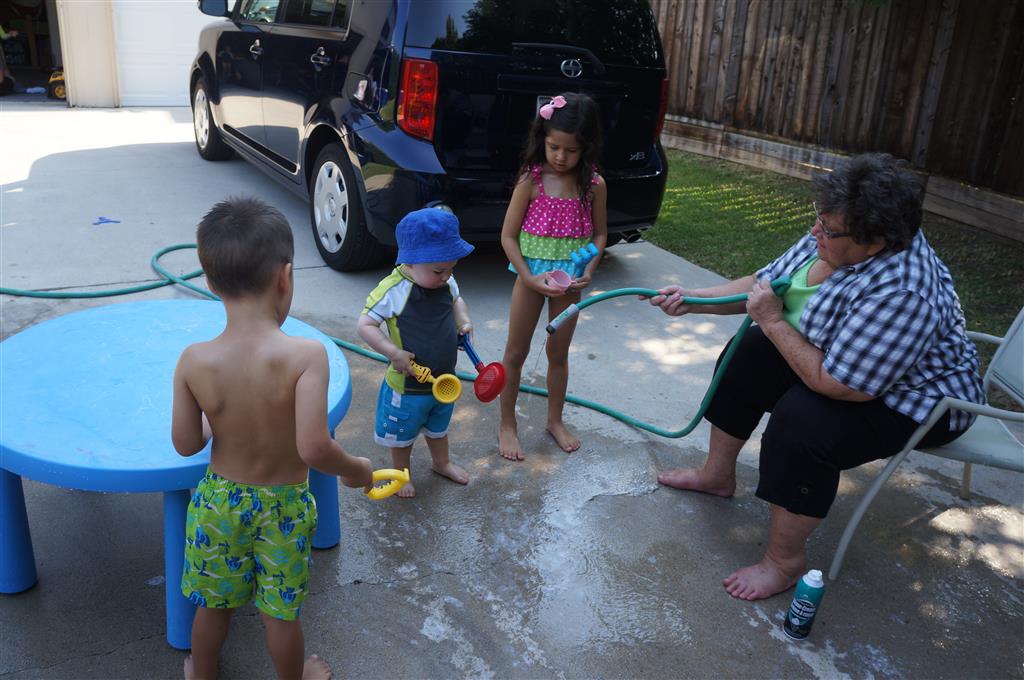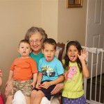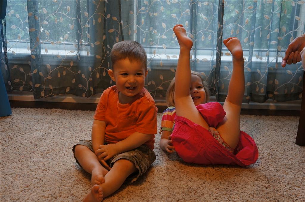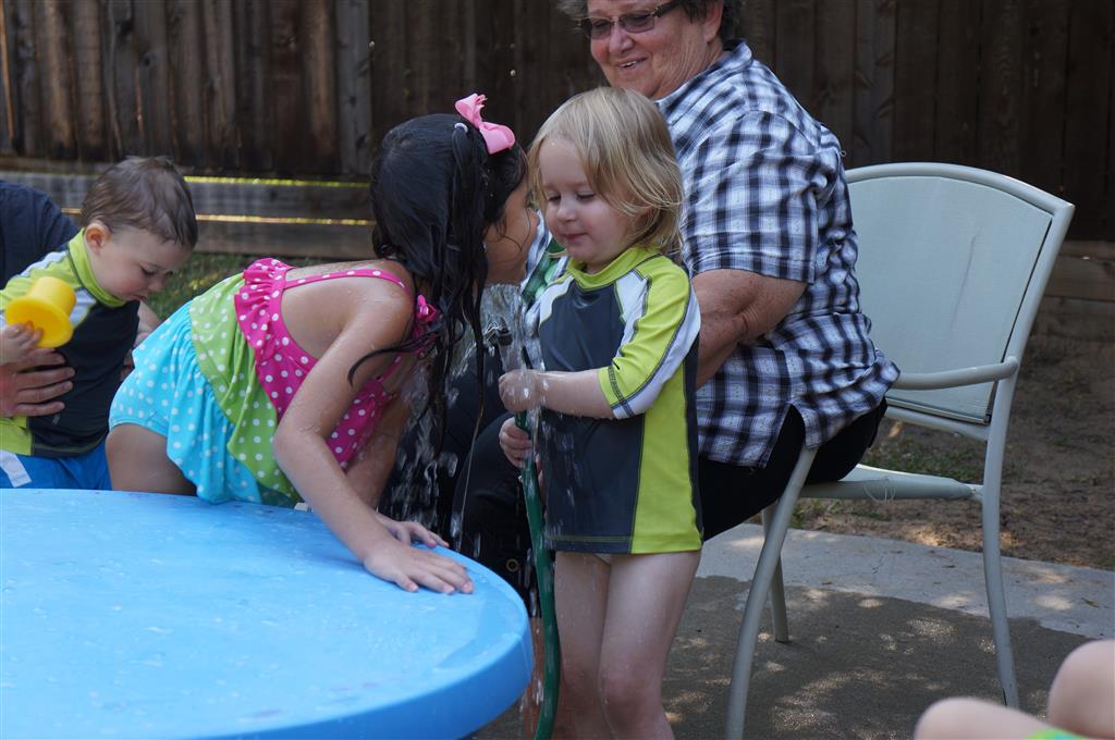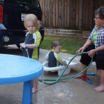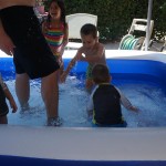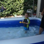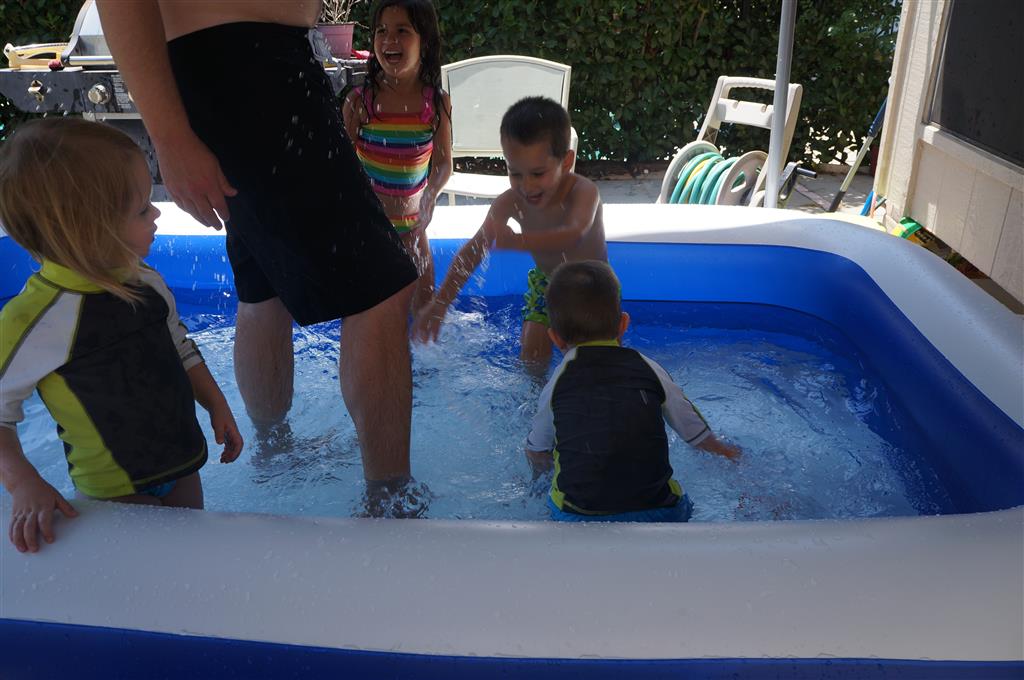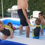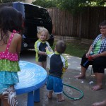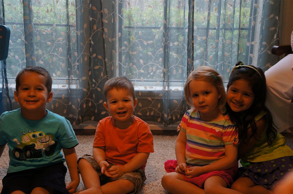 Eleanor and Henry took a fun trip this week to visit Granny A, cousins Camille and Austin, and Aunts Viviane and Kathy. They had a blast playing outside with the pool and Aunt Kathy’s shaving cream pie. I think Henry would have stayed in the pool for a week if we had let him. Eleanor was super excited to sleep on the pullout bed in Camille’s room – her first “sleepover”! The kids got along great, Eleanor taught Camille all about the “night night” game, and Camille showed Eleanor how to jump on the trampoline. Austin showed Henry how to ride the roller coaster ride, and Henry taught Austin to love cheese sticks. We can’t wait to do it again!
