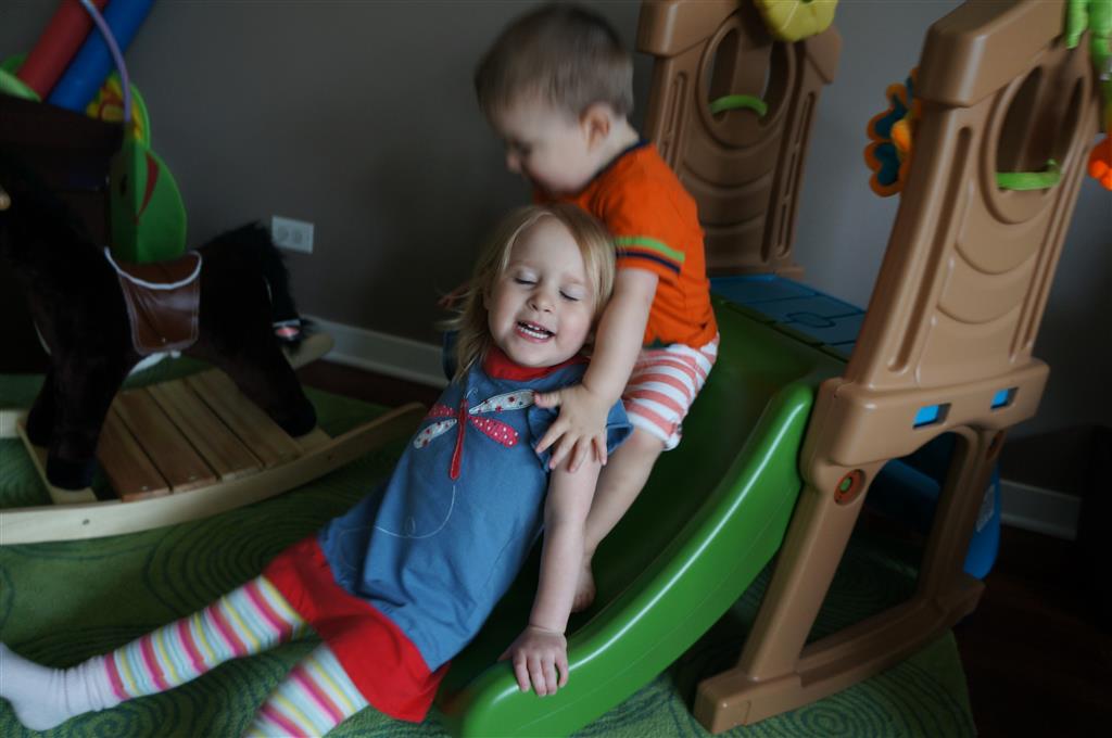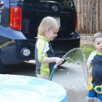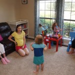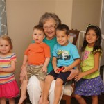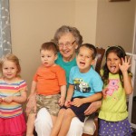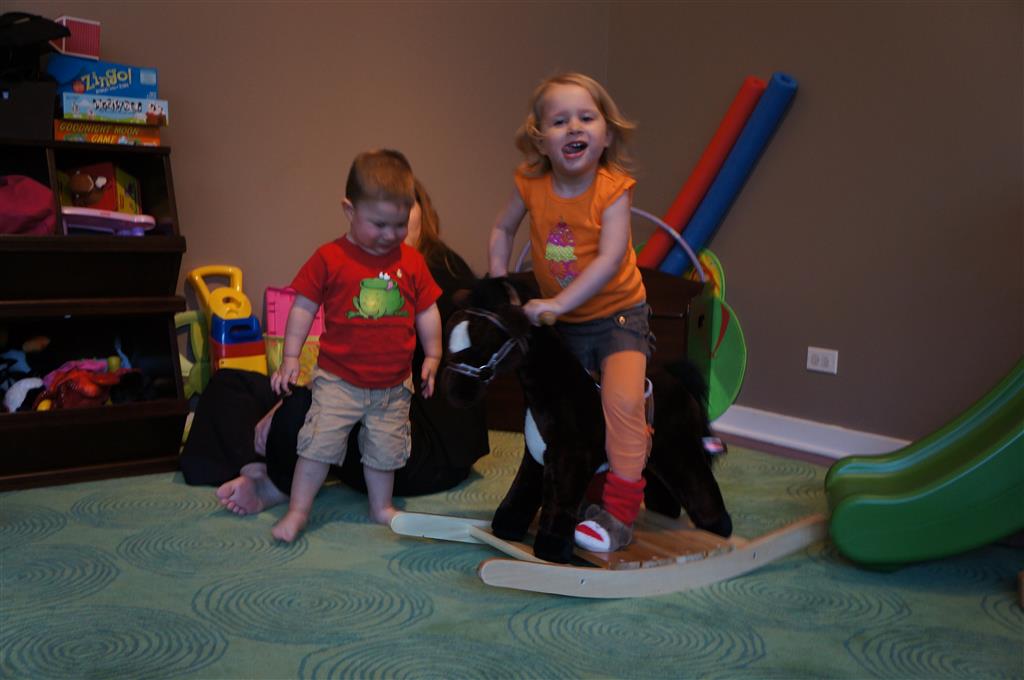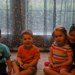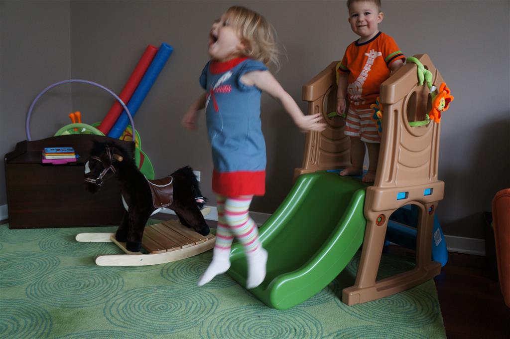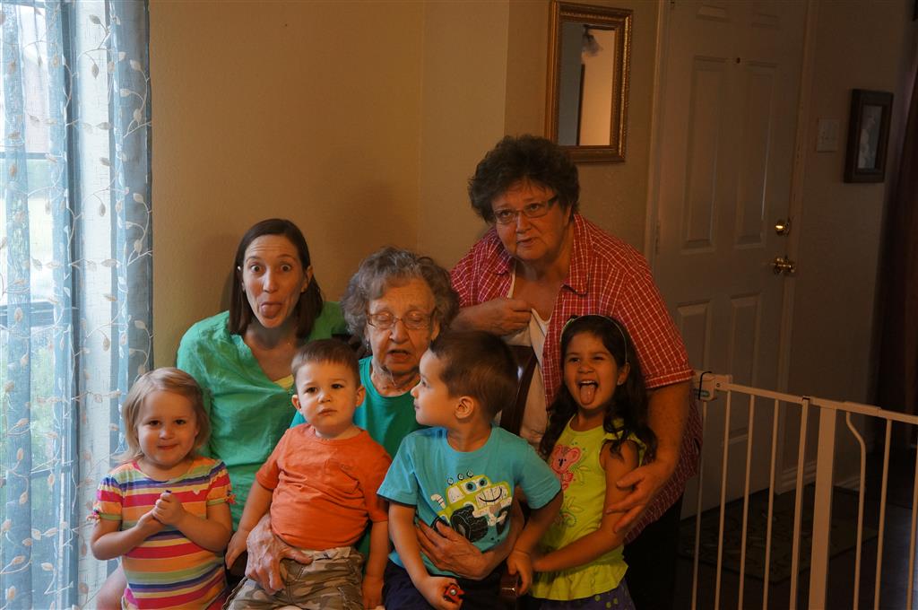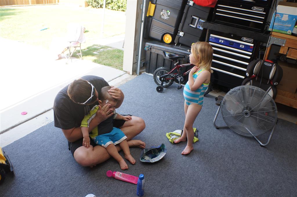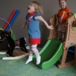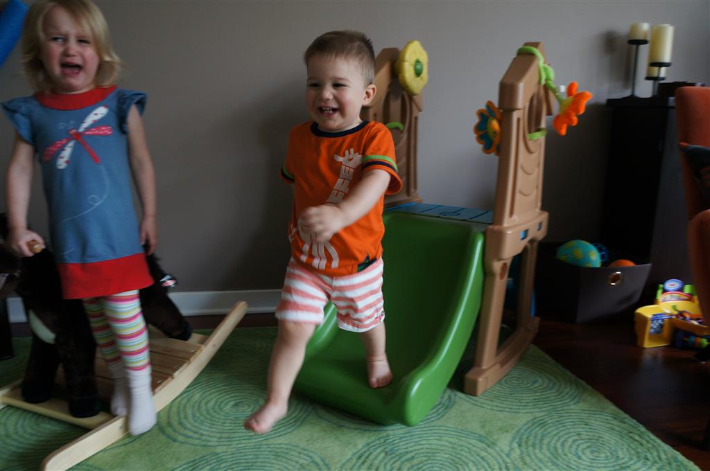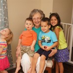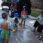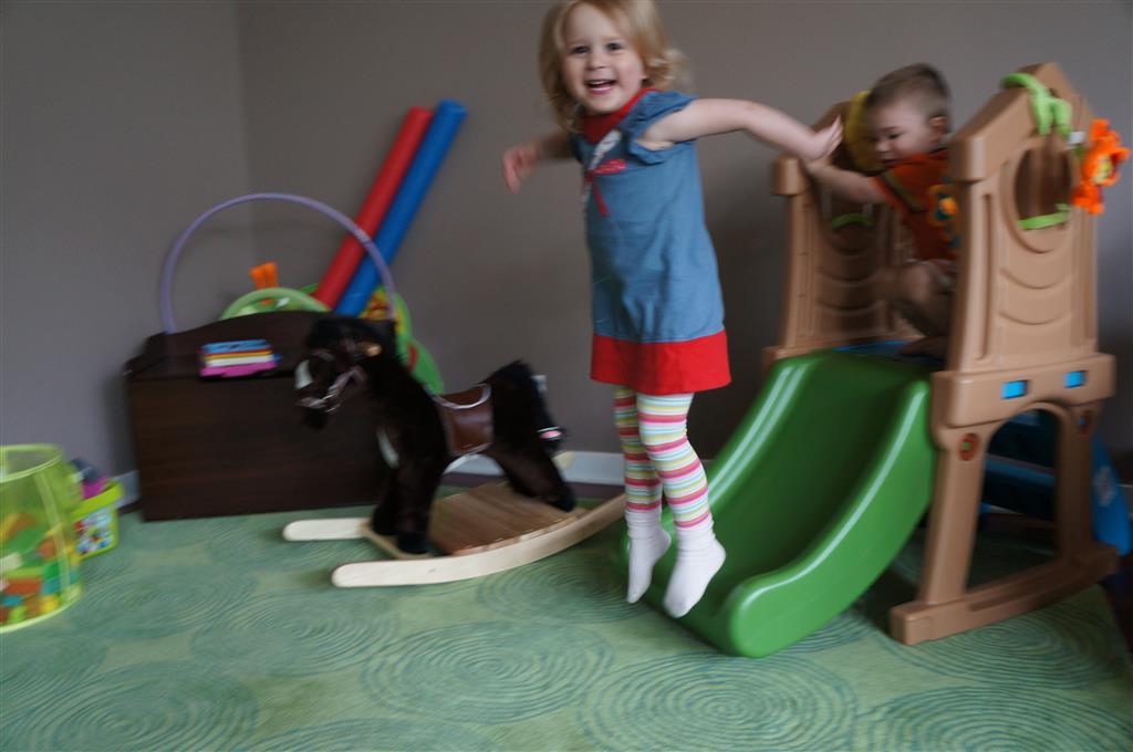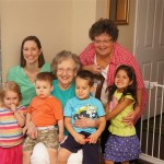 Eleanor and Henry took a fun trip this week to visit Granny A, cousins Camille and Austin, and Aunts Viviane and Kathy. They had a blast playing outside with the pool and Aunt Kathy’s shaving cream pie. I think Henry would have stayed in the pool for a week if we had let him. Eleanor was super excited to sleep on the pullout bed in Camille’s room – her first “sleepover”! The kids got along great, Eleanor taught Camille all about the “night night” game, and Camille showed Eleanor how to jump on the trampoline. Austin showed Henry how to ride the roller coaster ride, and Henry taught Austin to love cheese sticks. We can’t wait to do it again!