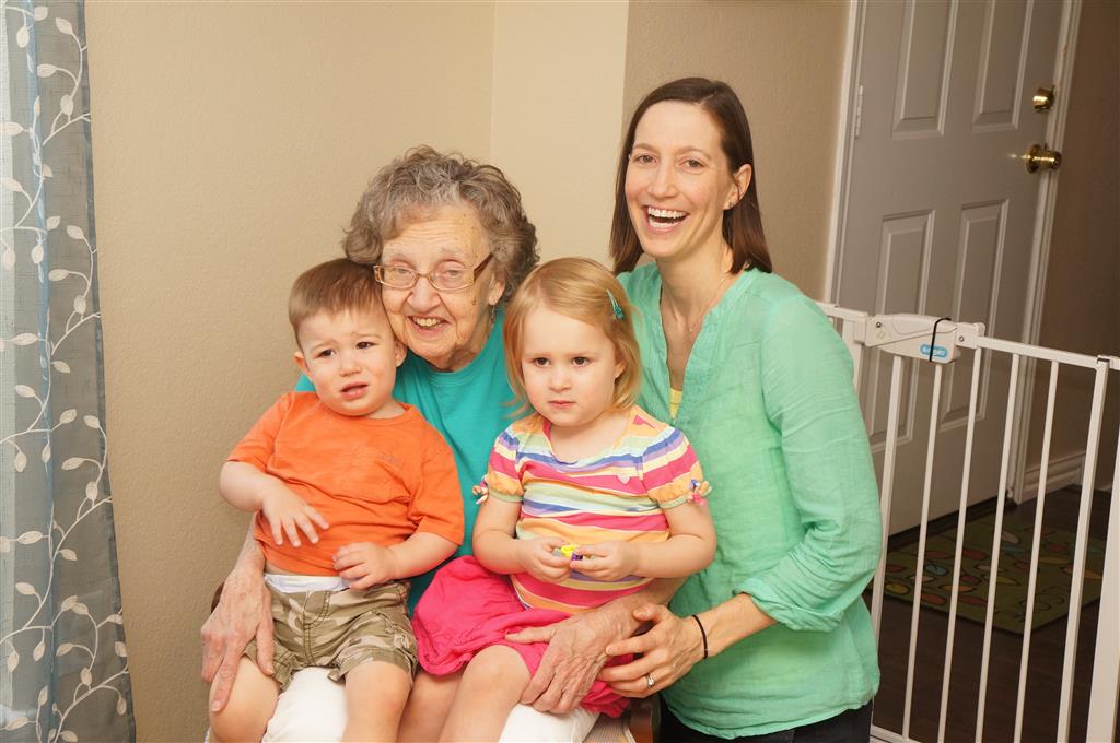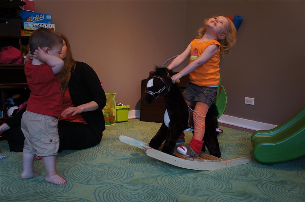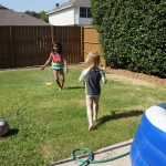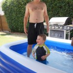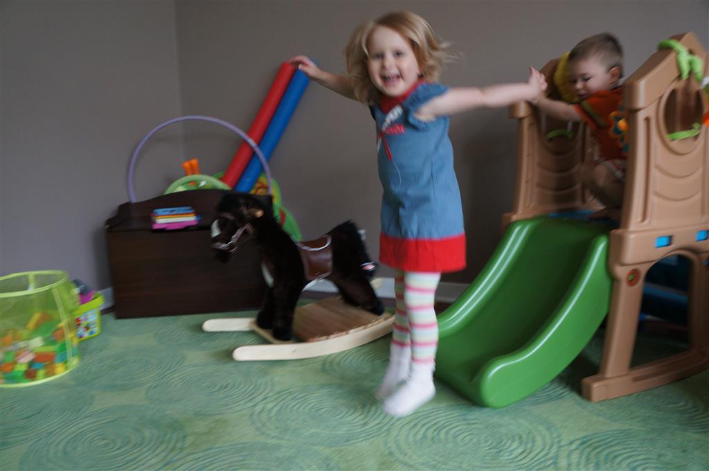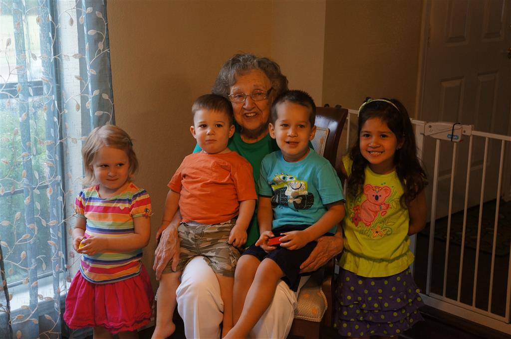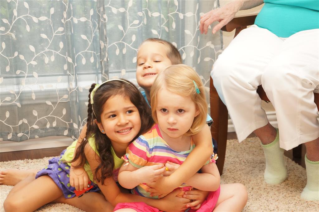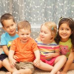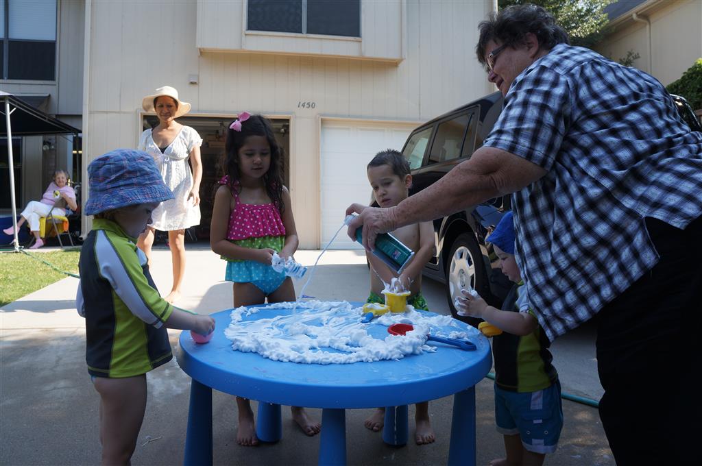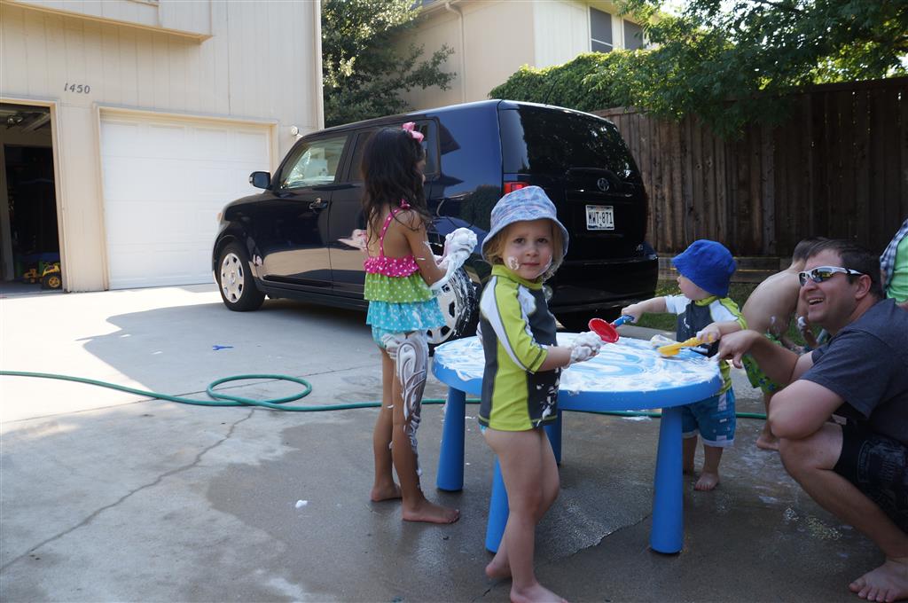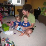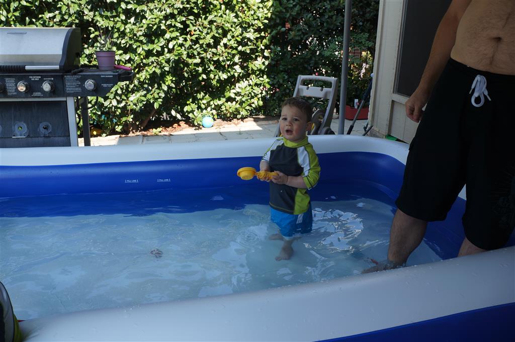 Eleanor and Henry took a fun trip this week to visit Granny A, cousins Camille and Austin, and Aunts Viviane and Kathy. They had a blast playing outside with the pool and Aunt Kathy’s shaving cream pie. I think Henry would have stayed in the pool for a week if we had let him. Eleanor was super excited to sleep on the pullout bed in Camille’s room – her first “sleepover”! The kids got along great, Eleanor taught Camille all about the “night night” game, and Camille showed Eleanor how to jump on the trampoline. Austin showed Henry how to ride the roller coaster ride, and Henry taught Austin to love cheese sticks. We can’t wait to do it again!