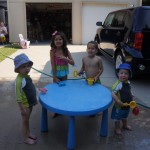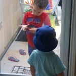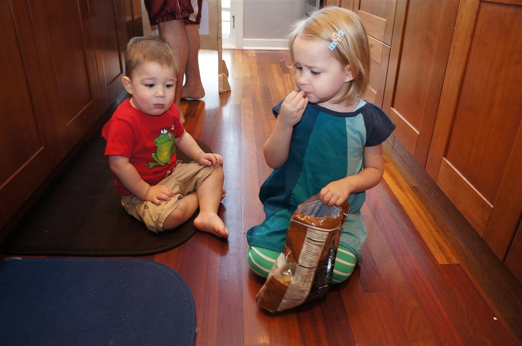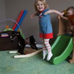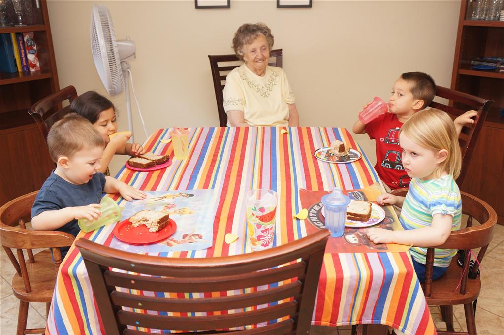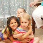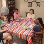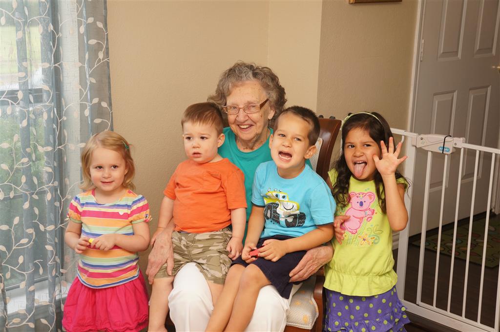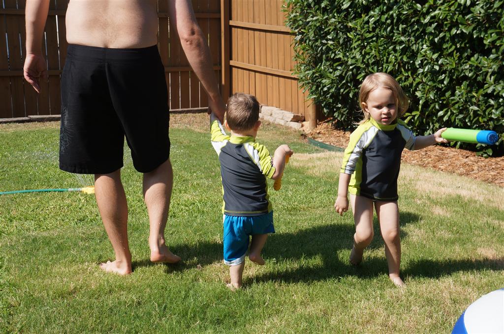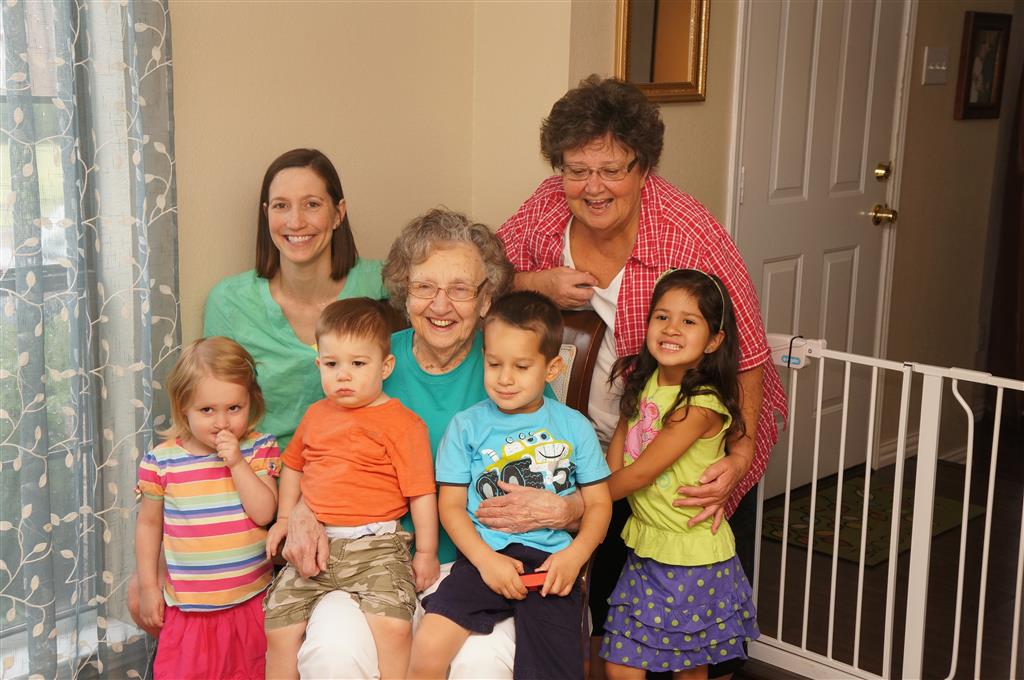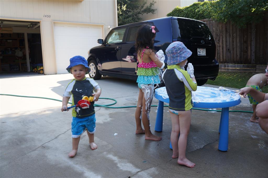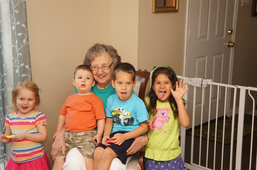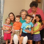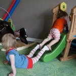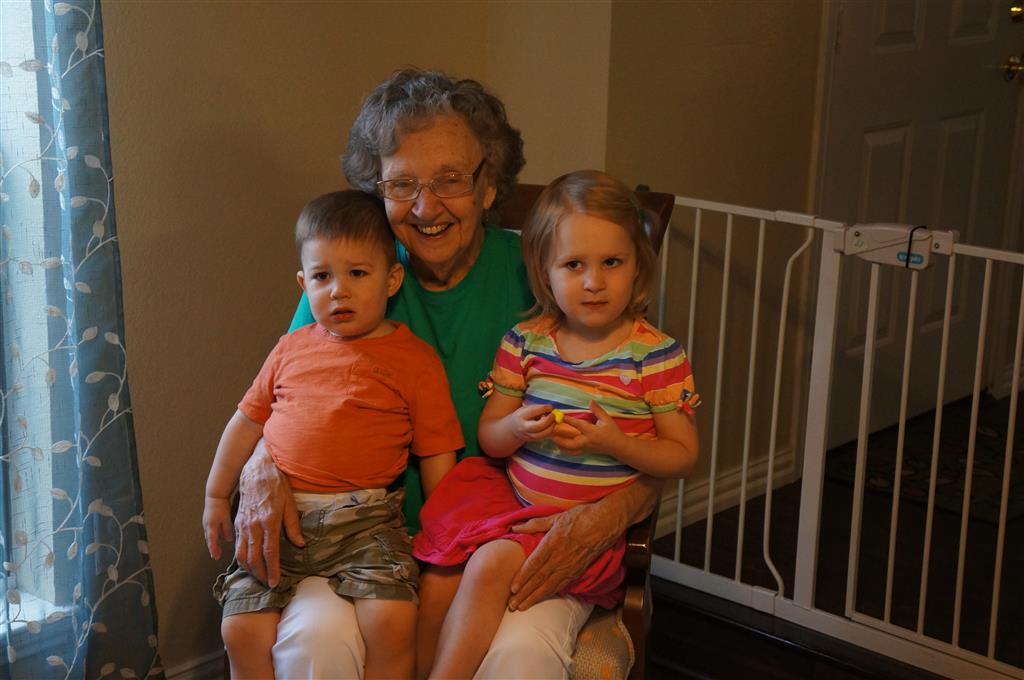 Eleanor and Henry took a fun trip this week to visit Granny A, cousins Camille and Austin, and Aunts Viviane and Kathy. They had a blast playing outside with the pool and Aunt Kathy’s shaving cream pie. I think Henry would have stayed in the pool for a week if we had let him. Eleanor was super excited to sleep on the pullout bed in Camille’s room – her first “sleepover”! The kids got along great, Eleanor taught Camille all about the “night night” game, and Camille showed Eleanor how to jump on the trampoline. Austin showed Henry how to ride the roller coaster ride, and Henry taught Austin to love cheese sticks. We can’t wait to do it again!