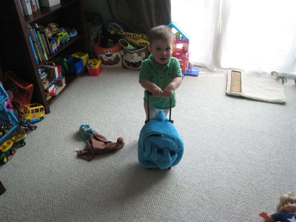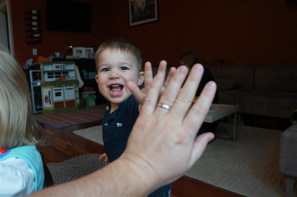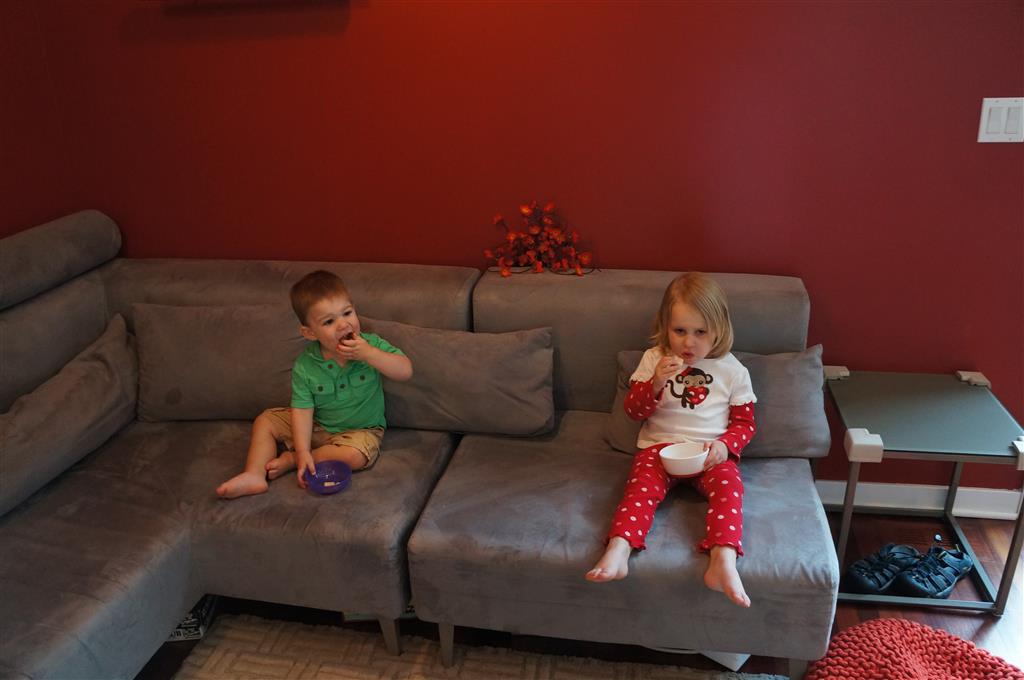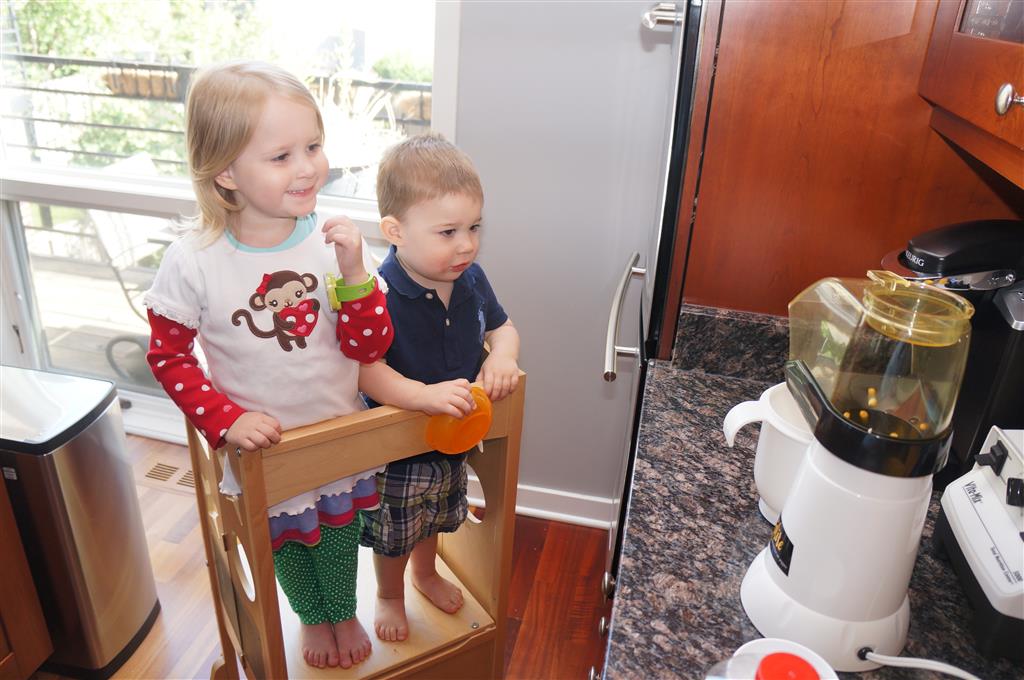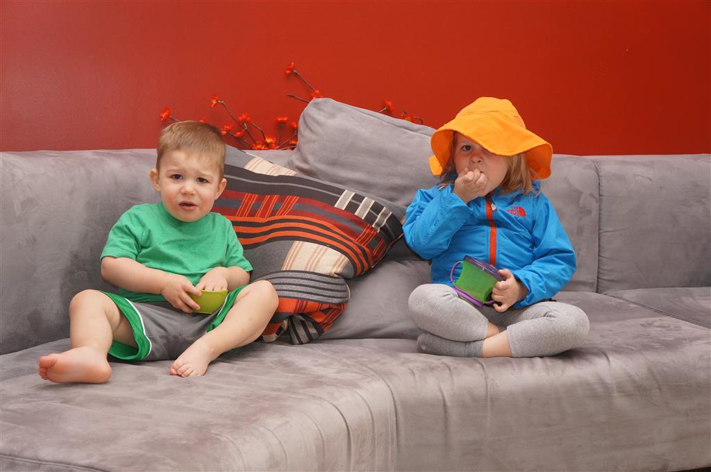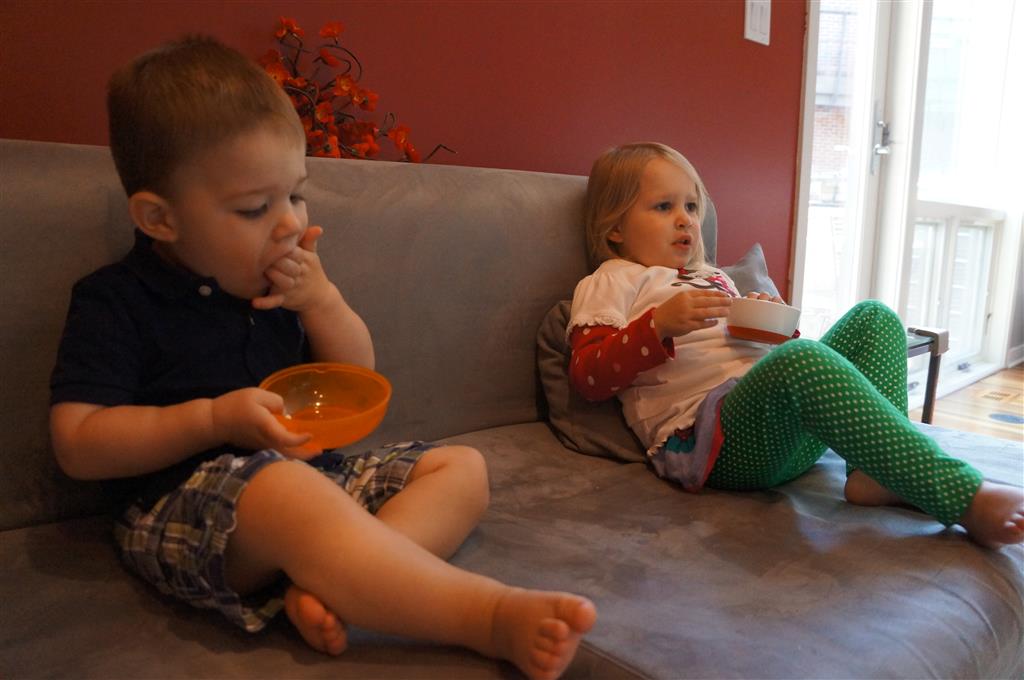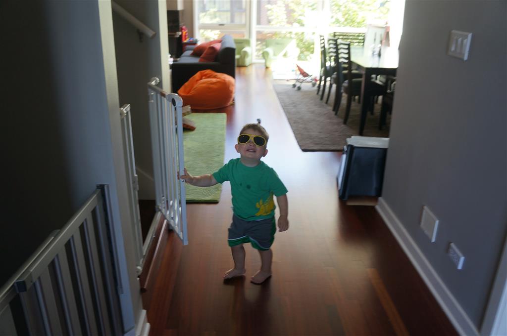 This week brought relief from the super hot weather and Henry and Eleanor took advantage with lots of good outdoor time. They both had a blast at the Zoo, especially the outdoor lunch at Café Brauer. Henry has recently added “Ashes” to his vocabulary, and to celebrate he likes to dance “Ring around the Rosie” while holding hands with Eleanor. He is also improving his balance – he can now go up and down the step at the front door – and is very impressed with himself when he “runs” off it while playing in the front driveway. Both Eleanor and Henry had a great day at swim class this week – they both blew bubbles in the pool! Mom had some friends in town this weekend, so Dad and Lala were each in charge for a day. Dad got to go to Bubbles class with Henry and do preschool drop off with Eleanor. Eleanor was very excited to show me how to sign her in and put her things in her cubby, and at pickup time Henry showed me the way to her classroom. On Saturday, Lala took the kids for a trip to Whole Foods, and came back with a pineapple for a yummy snack.