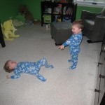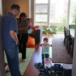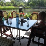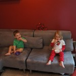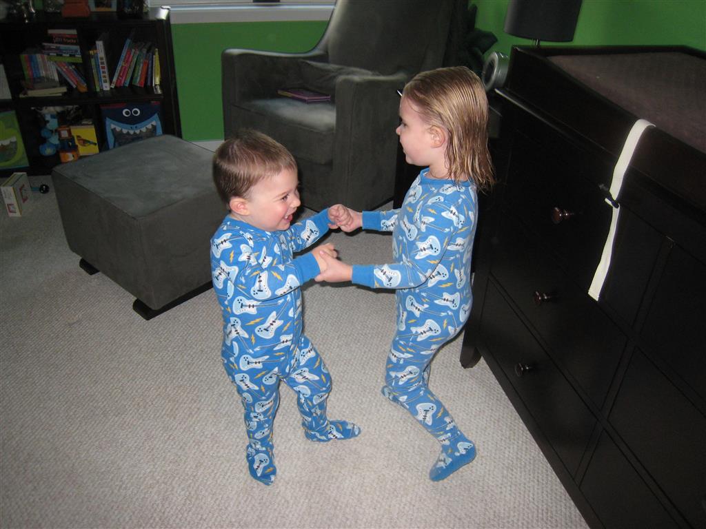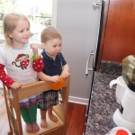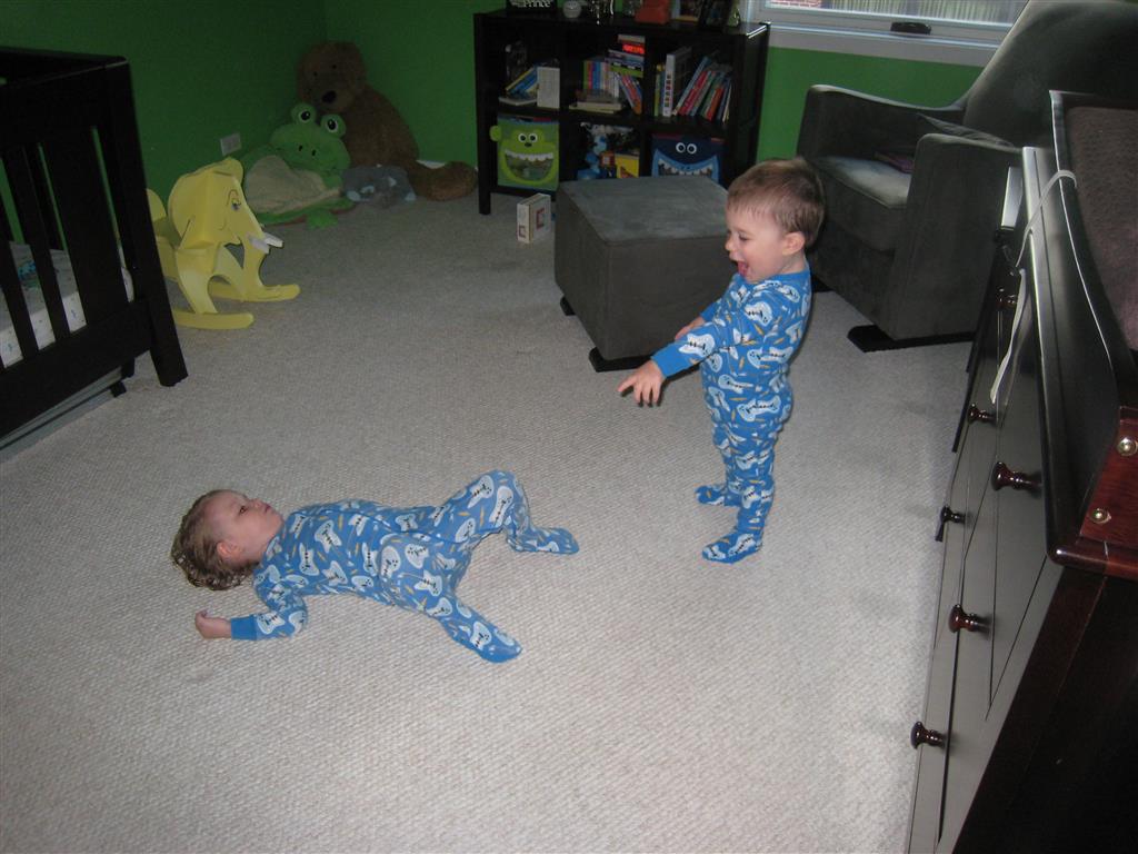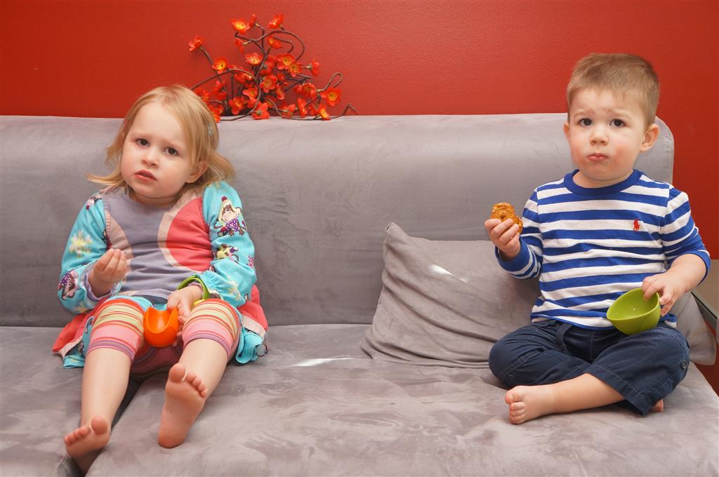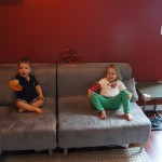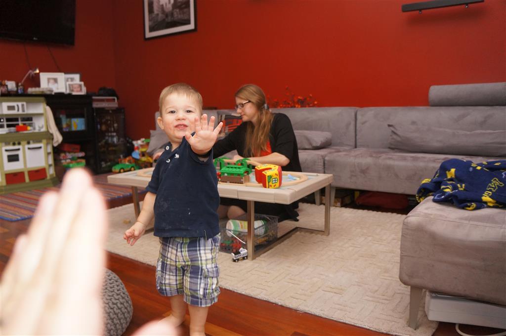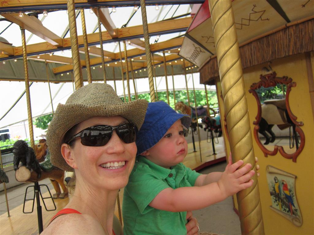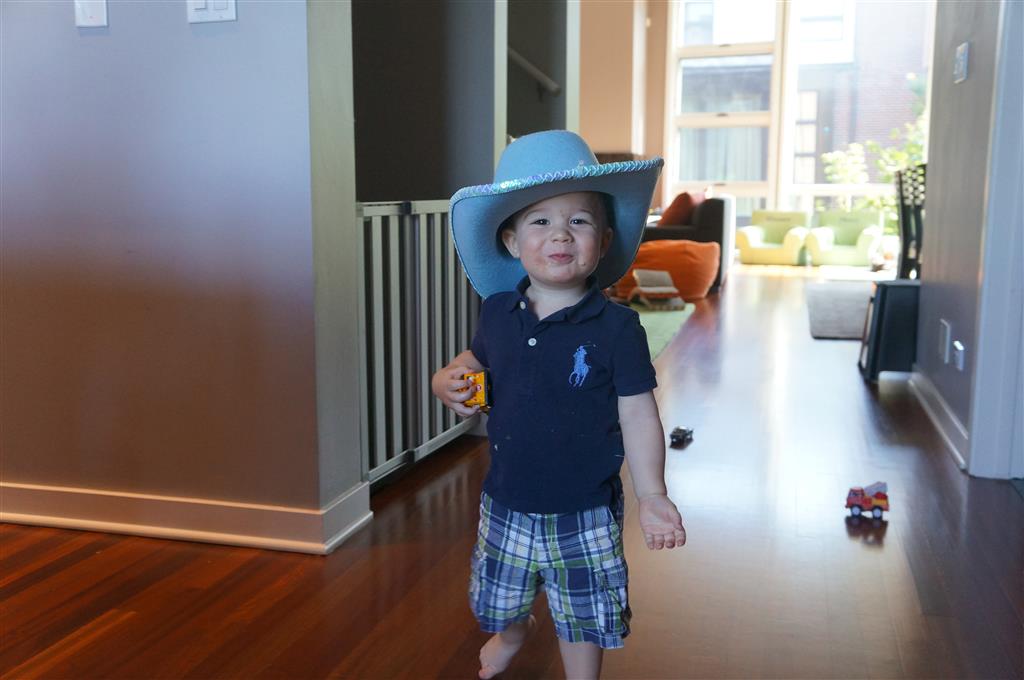 This week brought relief from the super hot weather and Henry and Eleanor took advantage with lots of good outdoor time. They both had a blast at the Zoo, especially the outdoor lunch at Café Brauer. Henry has recently added “Ashes” to his vocabulary, and to celebrate he likes to dance “Ring around the Rosie” while holding hands with Eleanor. He is also improving his balance – he can now go up and down the step at the front door – and is very impressed with himself when he “runs” off it while playing in the front driveway. Both Eleanor and Henry had a great day at swim class this week – they both blew bubbles in the pool! Mom had some friends in town this weekend, so Dad and Lala were each in charge for a day. Dad got to go to Bubbles class with Henry and do preschool drop off with Eleanor. Eleanor was very excited to show me how to sign her in and put her things in her cubby, and at pickup time Henry showed me the way to her classroom. On Saturday, Lala took the kids for a trip to Whole Foods, and came back with a pineapple for a yummy snack.