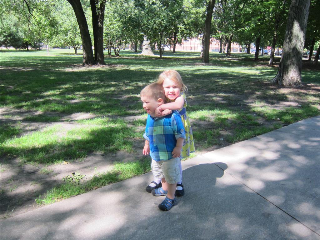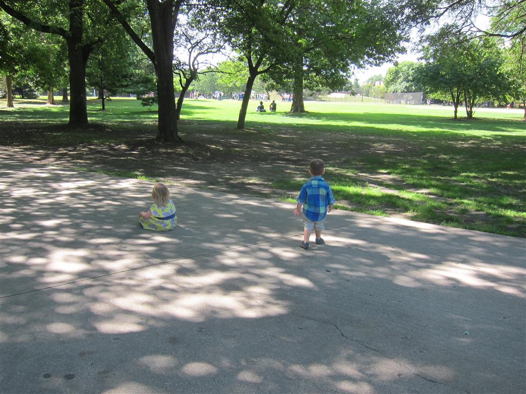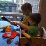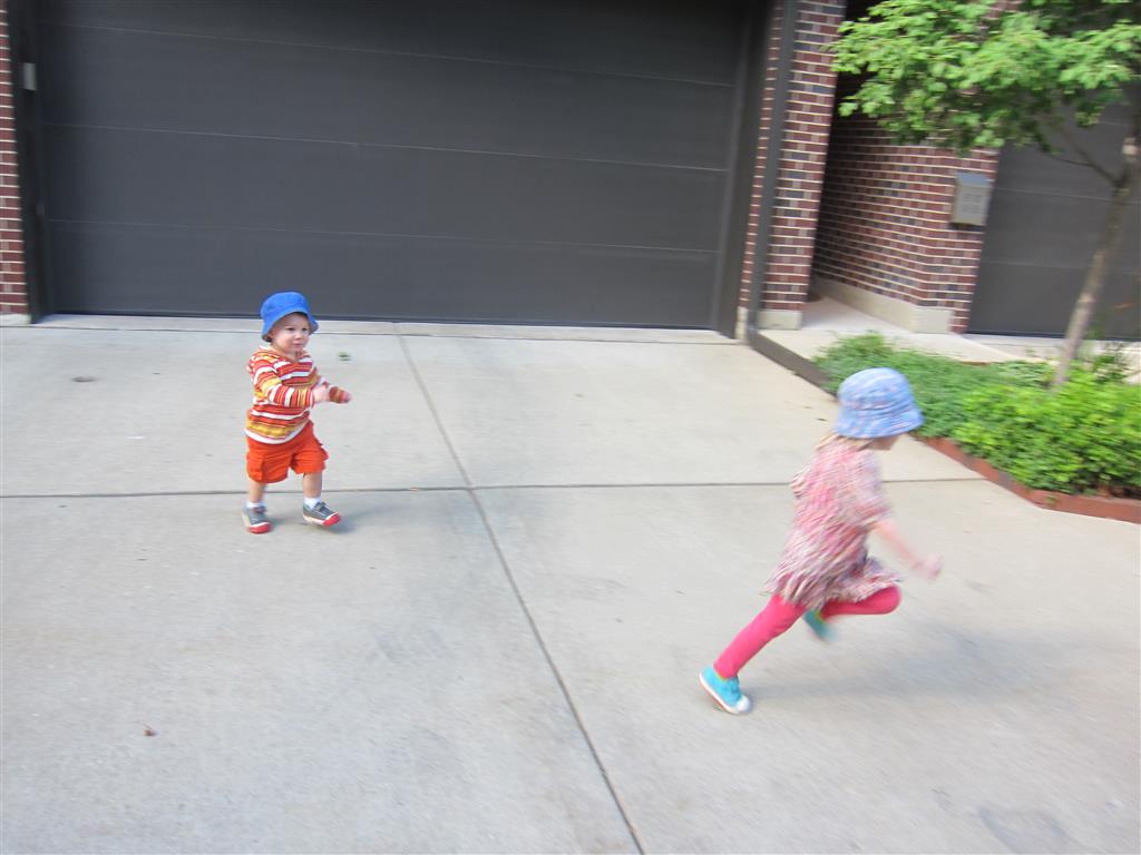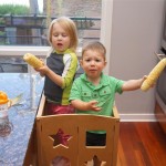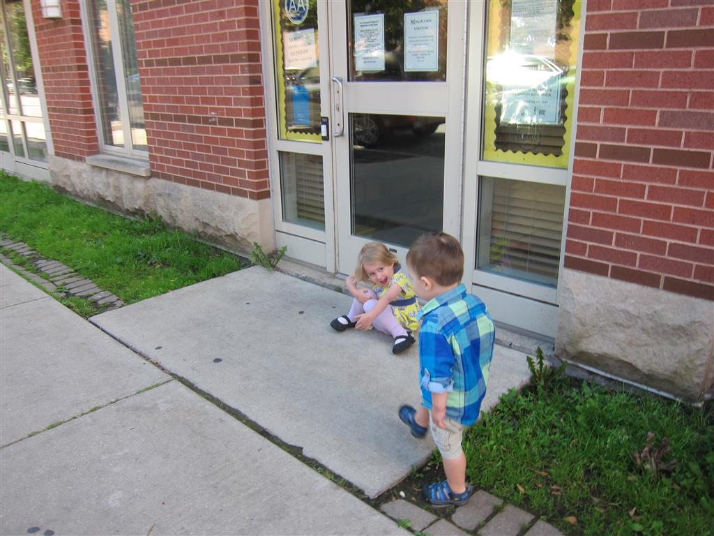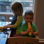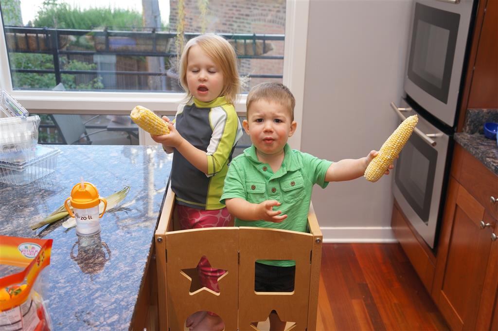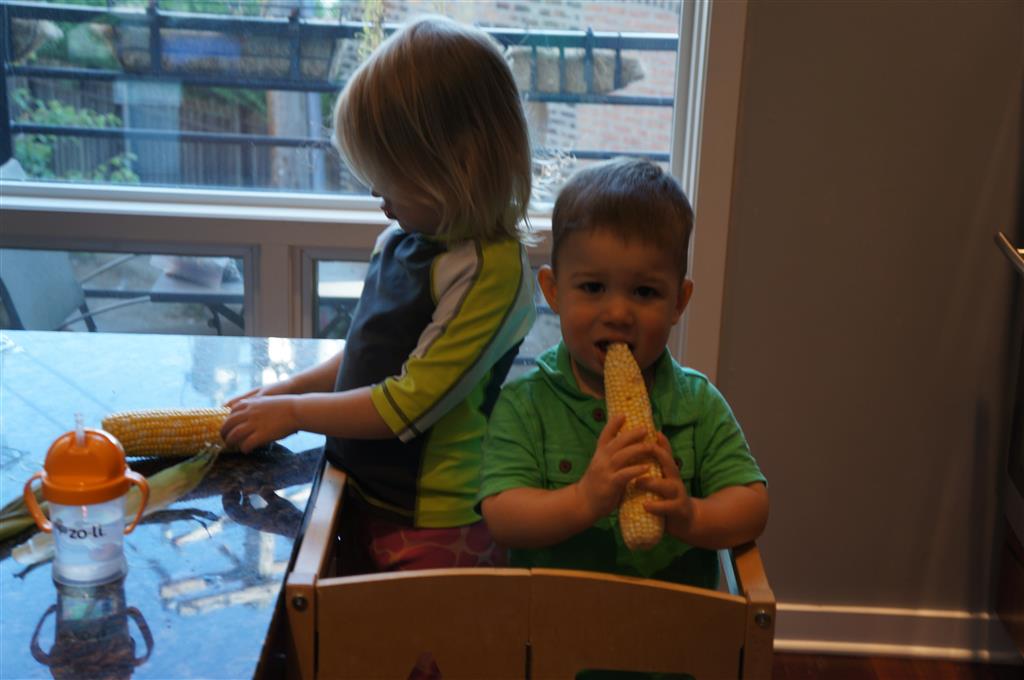 Eleanor and Henry had a fun week including a trip downtown to see the “Cat in the Hat” play. They were both a little restless while we were waiting in our seats for the play to start, but both were engrossed once it started. Eleanor gave the biggest grin during the “Would you like to shake hands with Thing 1 and Thing 2” part :) Other fun activities this week included making corn on the cob and visiting the nature museum. We also did a photo shoot for Eleanor’s third birthday – I’ll post those as soon as I have them. On the way home from that photo shoot, Eleanor and Henry took turns running ahead and sitting in doorway until Mom caught up. Once Eleanor did it the first time, Henry was hooked and he continued the “sit down in a doorway while we are walking on the sidewalk” all week. Henry has added a few words – “pool” and “excuse me” come to mind. We also started a new swimming class this week – so far the jury is still out. Henry’s class was pretty similar to the old one, but Eleanor’s was without Mom or Dad in the water. The good side is that they are working on more advanced lessons, the bad side is that she was a bit scared being alone and didn’t want to participate. Hopefully she is more comfortable next week. Henry is getting very daring with stairs and steps – he is determined to figure them out and will just step right off a regular sized stair with a look of great confidence – but if Mom or Dad weren’t right there to catch him, it wouldn’t end well. He is getting better – and I bet soon he will have it figured out.