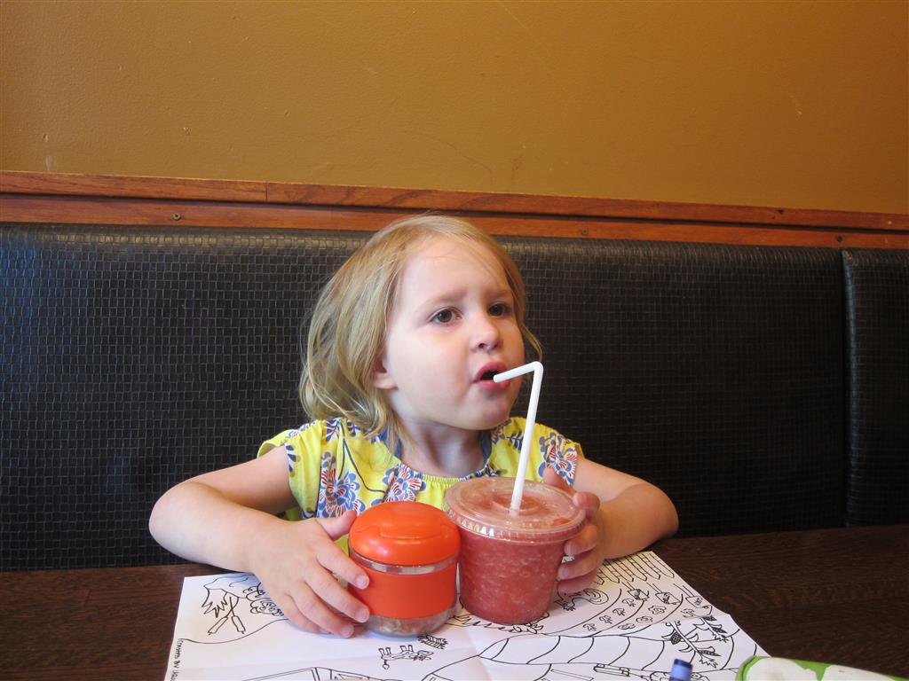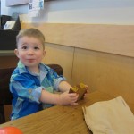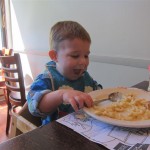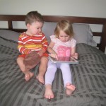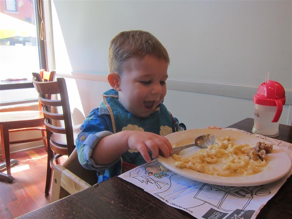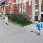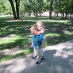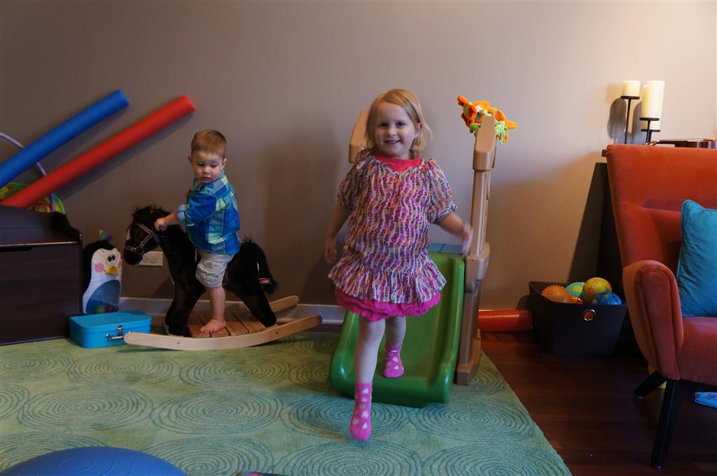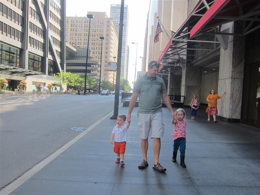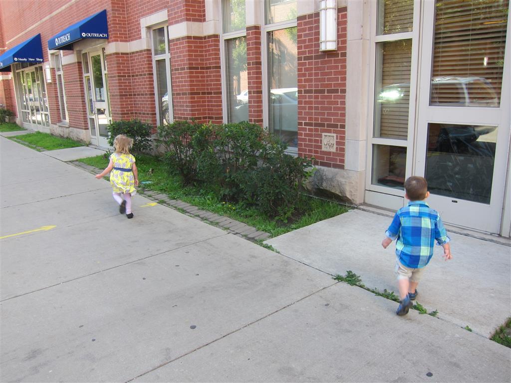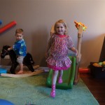 Eleanor and Henry had a fun week including a trip downtown to see the “Cat in the Hat” play. They were both a little restless while we were waiting in our seats for the play to start, but both were engrossed once it started. Eleanor gave the biggest grin during the “Would you like to shake hands with Thing 1 and Thing 2” part :) Other fun activities this week included making corn on the cob and visiting the nature museum. We also did a photo shoot for Eleanor’s third birthday – I’ll post those as soon as I have them. On the way home from that photo shoot, Eleanor and Henry took turns running ahead and sitting in doorway until Mom caught up. Once Eleanor did it the first time, Henry was hooked and he continued the “sit down in a doorway while we are walking on the sidewalk” all week. Henry has added a few words – “pool” and “excuse me” come to mind. We also started a new swimming class this week – so far the jury is still out. Henry’s class was pretty similar to the old one, but Eleanor’s was without Mom or Dad in the water. The good side is that they are working on more advanced lessons, the bad side is that she was a bit scared being alone and didn’t want to participate. Hopefully she is more comfortable next week. Henry is getting very daring with stairs and steps – he is determined to figure them out and will just step right off a regular sized stair with a look of great confidence – but if Mom or Dad weren’t right there to catch him, it wouldn’t end well. He is getting better – and I bet soon he will have it figured out.