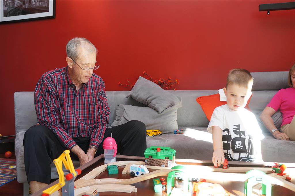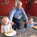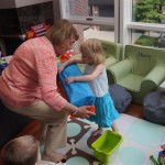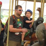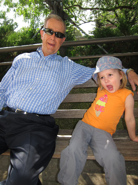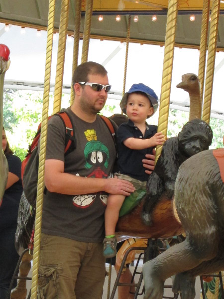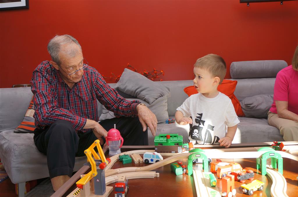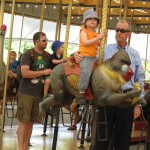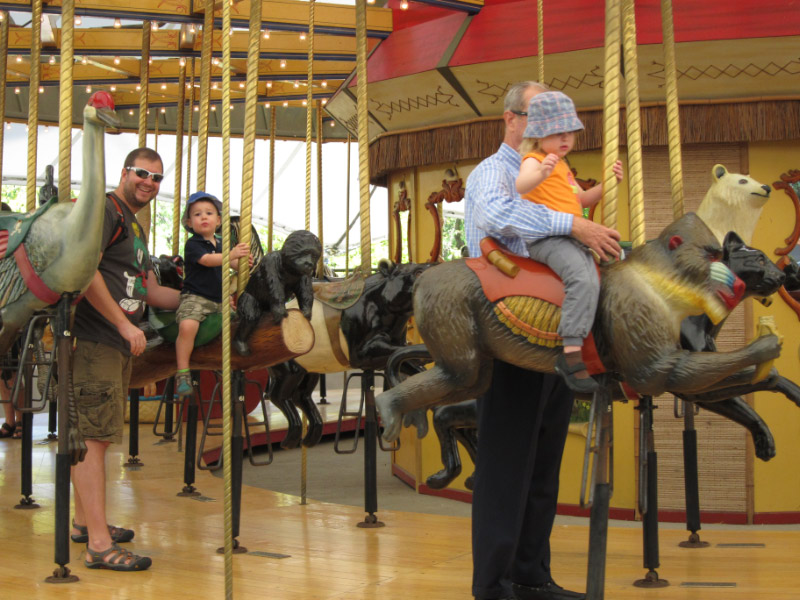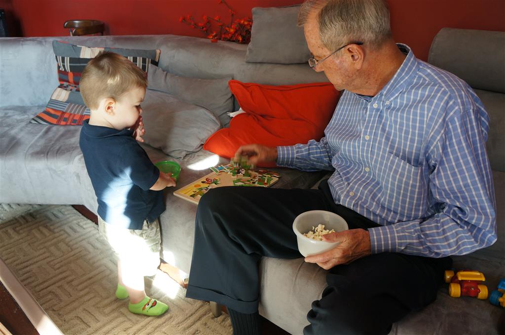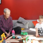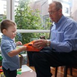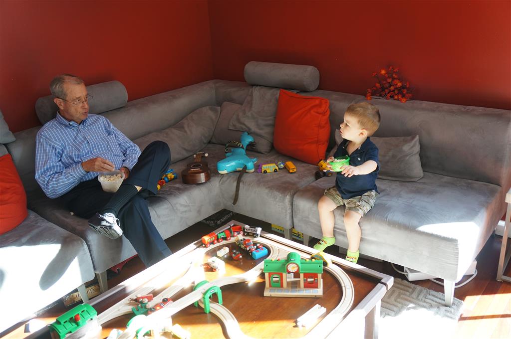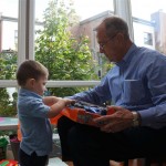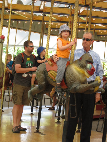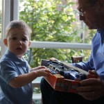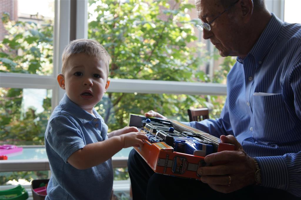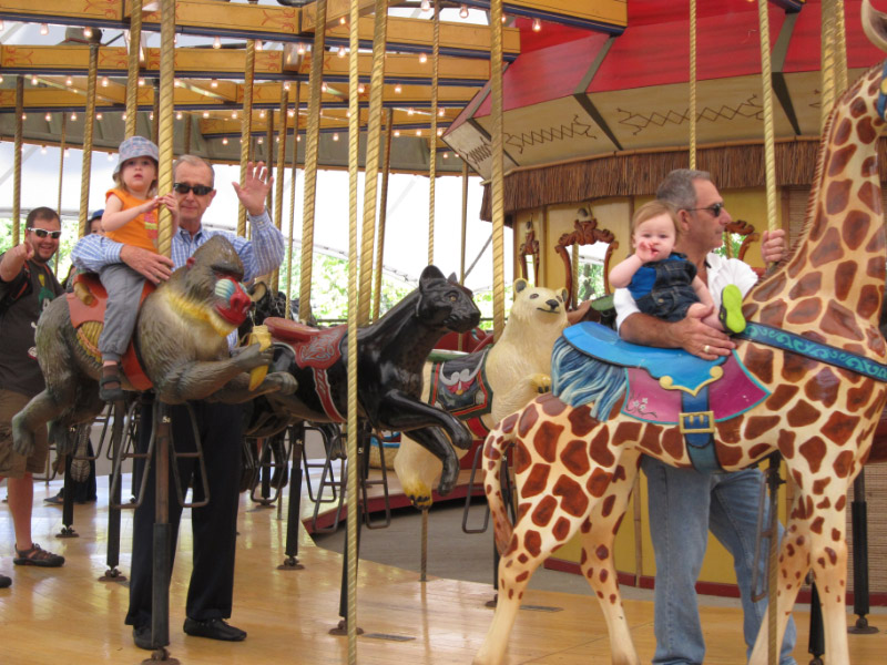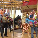 Eleanor and Henry enjoyed a visit from Grandma and Grandpa this week. We had a fun excursion to the zoo, where both Henry and Eleanor enjoyed the train ride and the carousel. Henry made a special trip at the end up to see the giraffes, and was very excited about seeing the giraffes tongue as he munched some leaves. We also had lots of fun at home with Eleanor playing “Drop Grandma off at school” and “Follow the Leader” and Henry showing Grandpa his trains and Legos.
