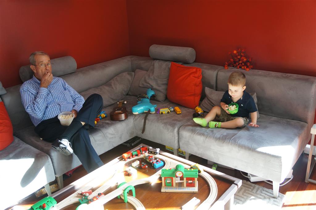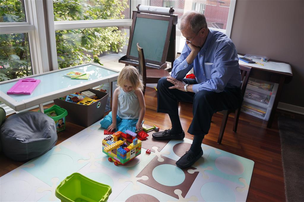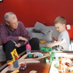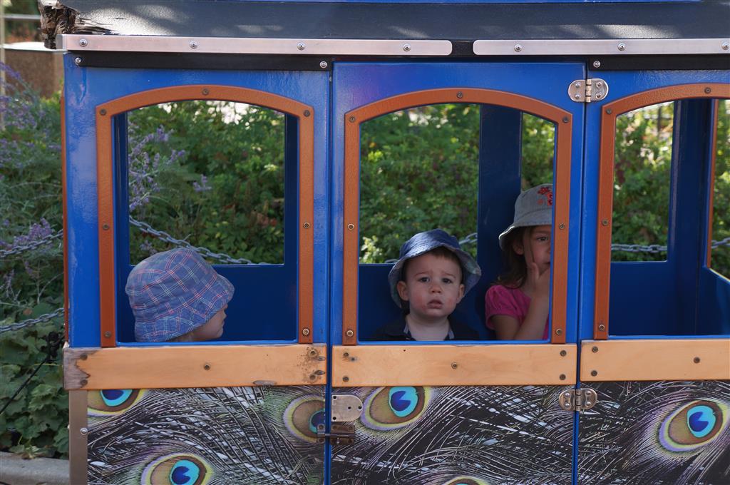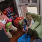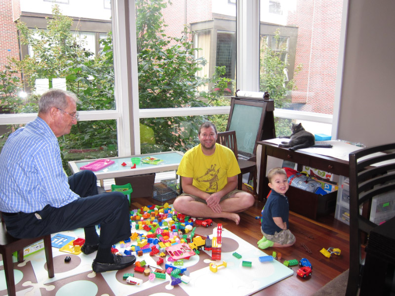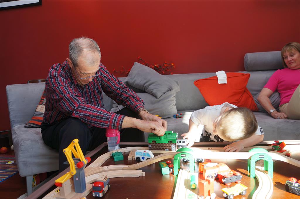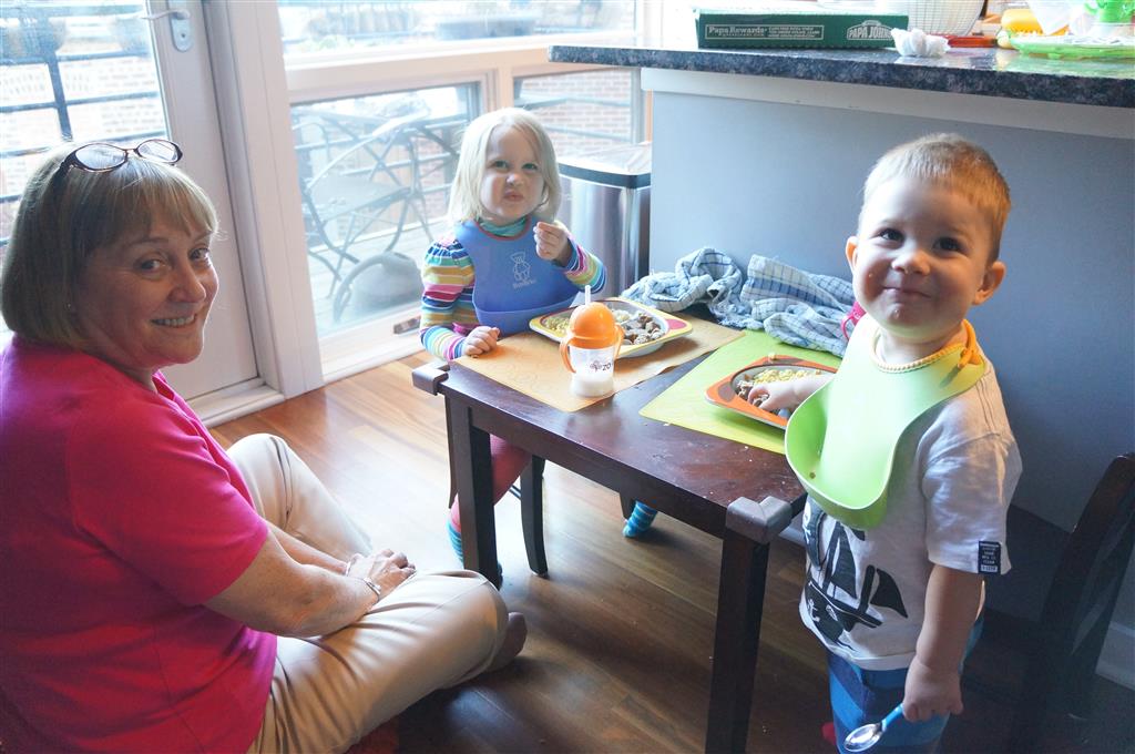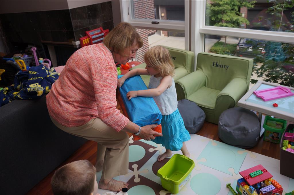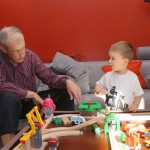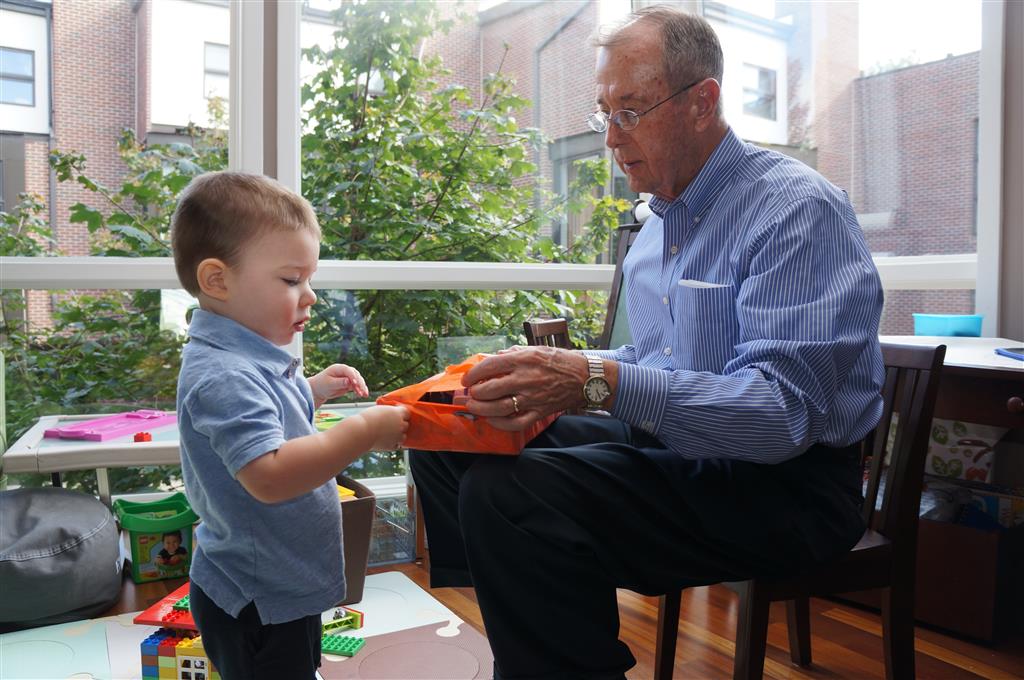 Eleanor and Henry enjoyed a visit from Grandma and Grandpa this week. We had a fun excursion to the zoo, where both Henry and Eleanor enjoyed the train ride and the carousel. Henry made a special trip at the end up to see the giraffes, and was very excited about seeing the giraffes tongue as he munched some leaves. We also had lots of fun at home with Eleanor playing “Drop Grandma off at school” and “Follow the Leader” and Henry showing Grandpa his trains and Legos.