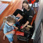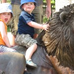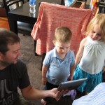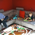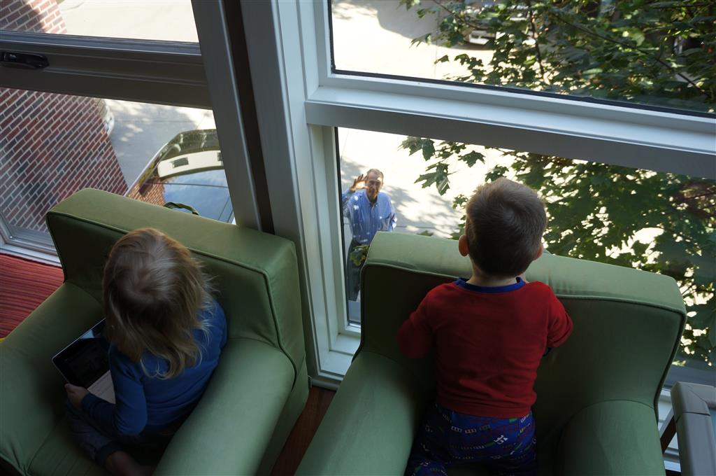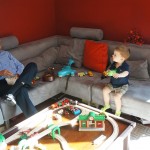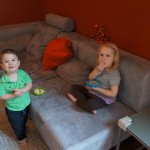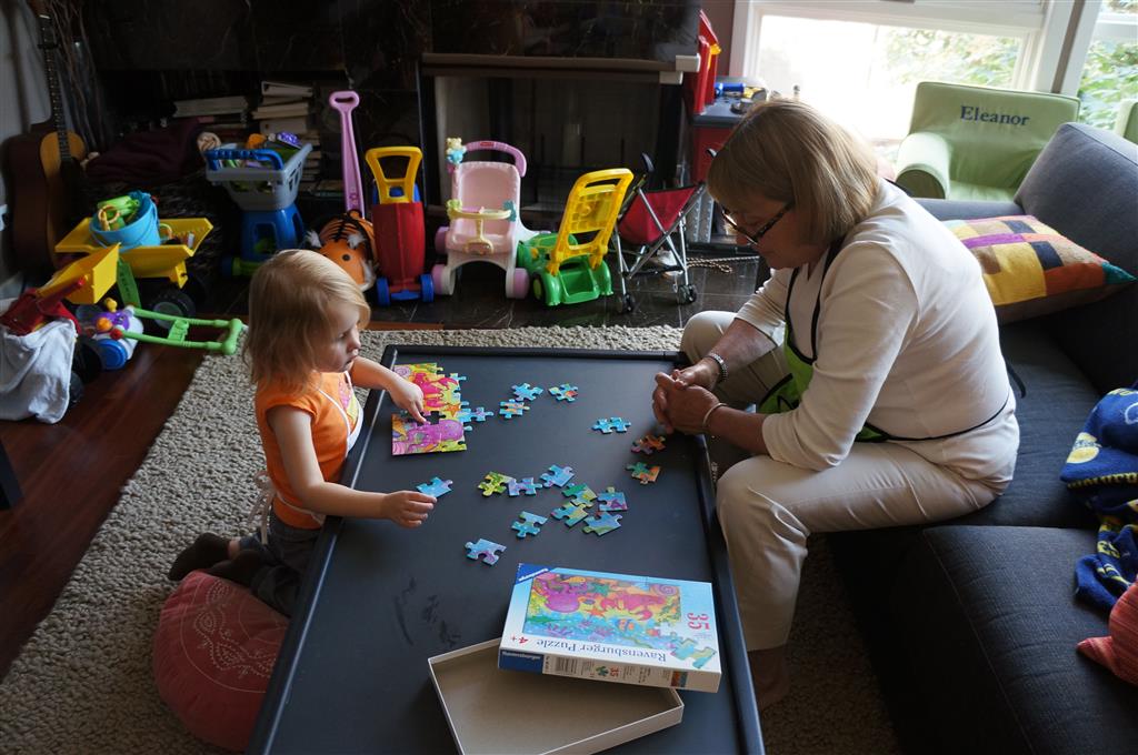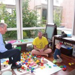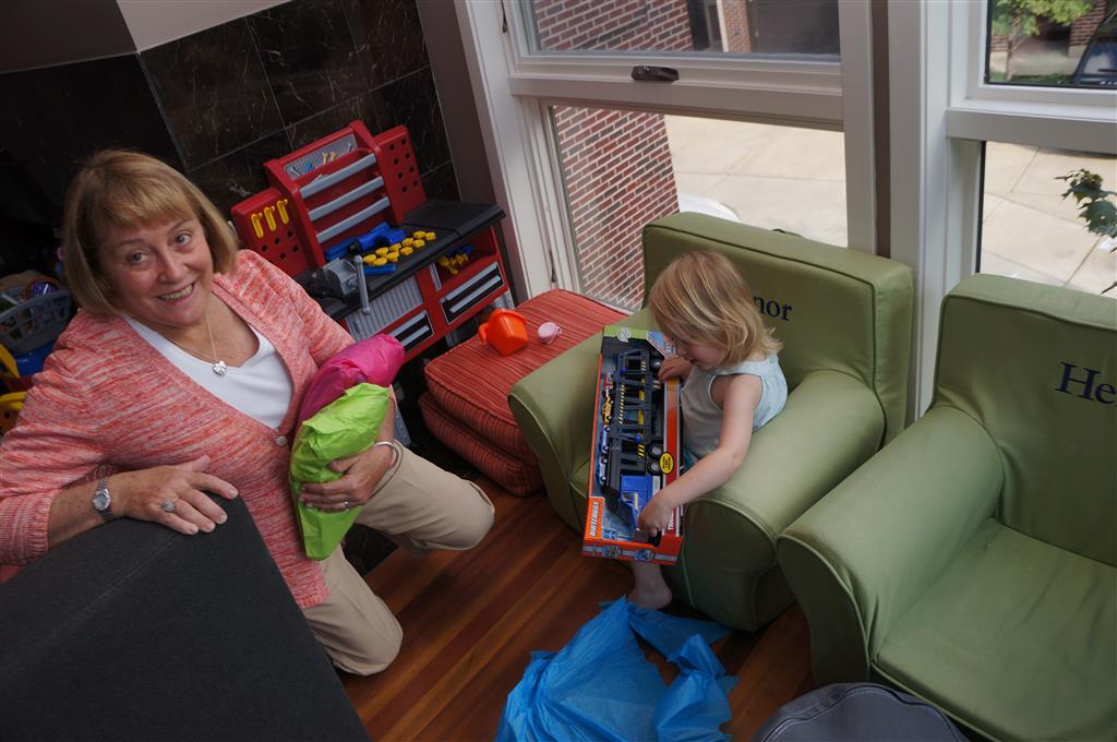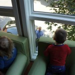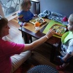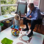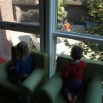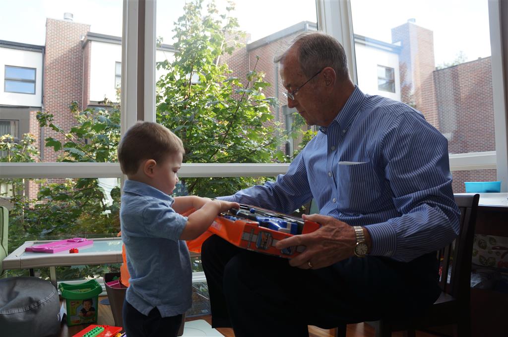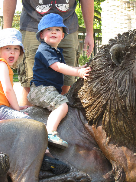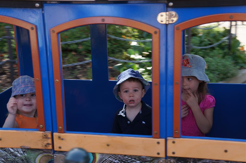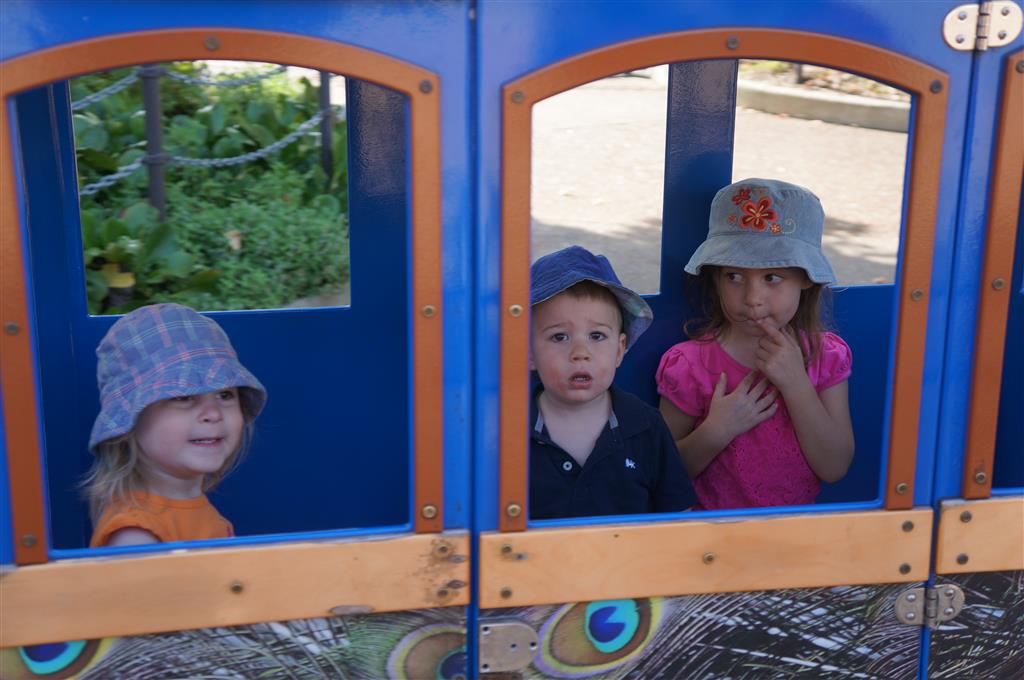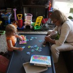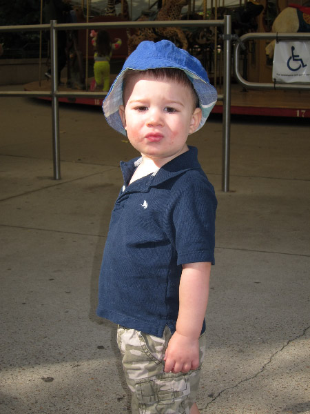 Eleanor and Henry enjoyed a visit from Grandma and Grandpa this week. We had a fun excursion to the zoo, where both Henry and Eleanor enjoyed the train ride and the carousel. Henry made a special trip at the end up to see the giraffes, and was very excited about seeing the giraffes tongue as he munched some leaves. We also had lots of fun at home with Eleanor playing “Drop Grandma off at school” and “Follow the Leader” and Henry showing Grandpa his trains and Legos.