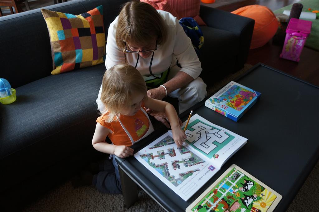 Eleanor completed a maze this week with a pencil – she perfectly stayed on course when the maze resembled a city street, but on the next page when it was just black lines she took a few “shortcuts” to get to the finish line.