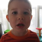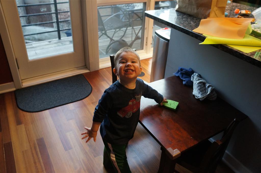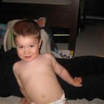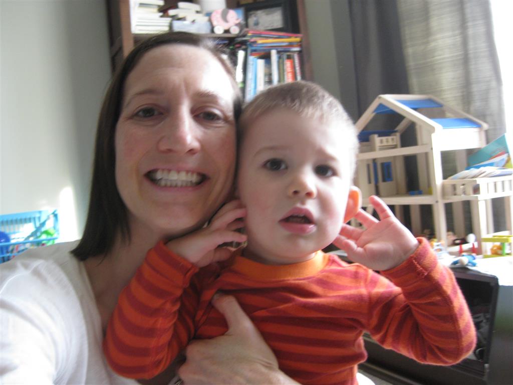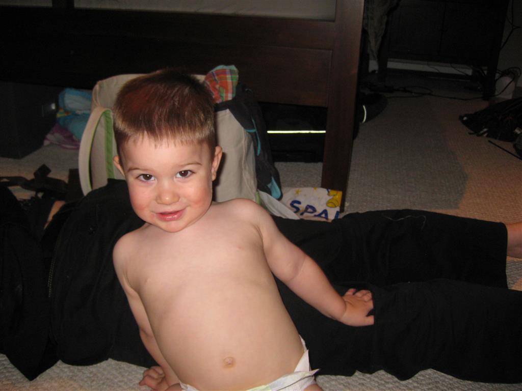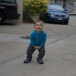 On Sunday, Henry told Mom that he needed to go pee-pee while he was getting a bath, and so she took him out and set him on the potty and he successfully went! His first planned potty event! Hopefully there will be lots more to come. He also successfully did the sit-n-spin all by himself for the first time. In the word department, he continues to make lots of progress, it seems every day he comes out with a new word, and he loves to sing parts of songs.